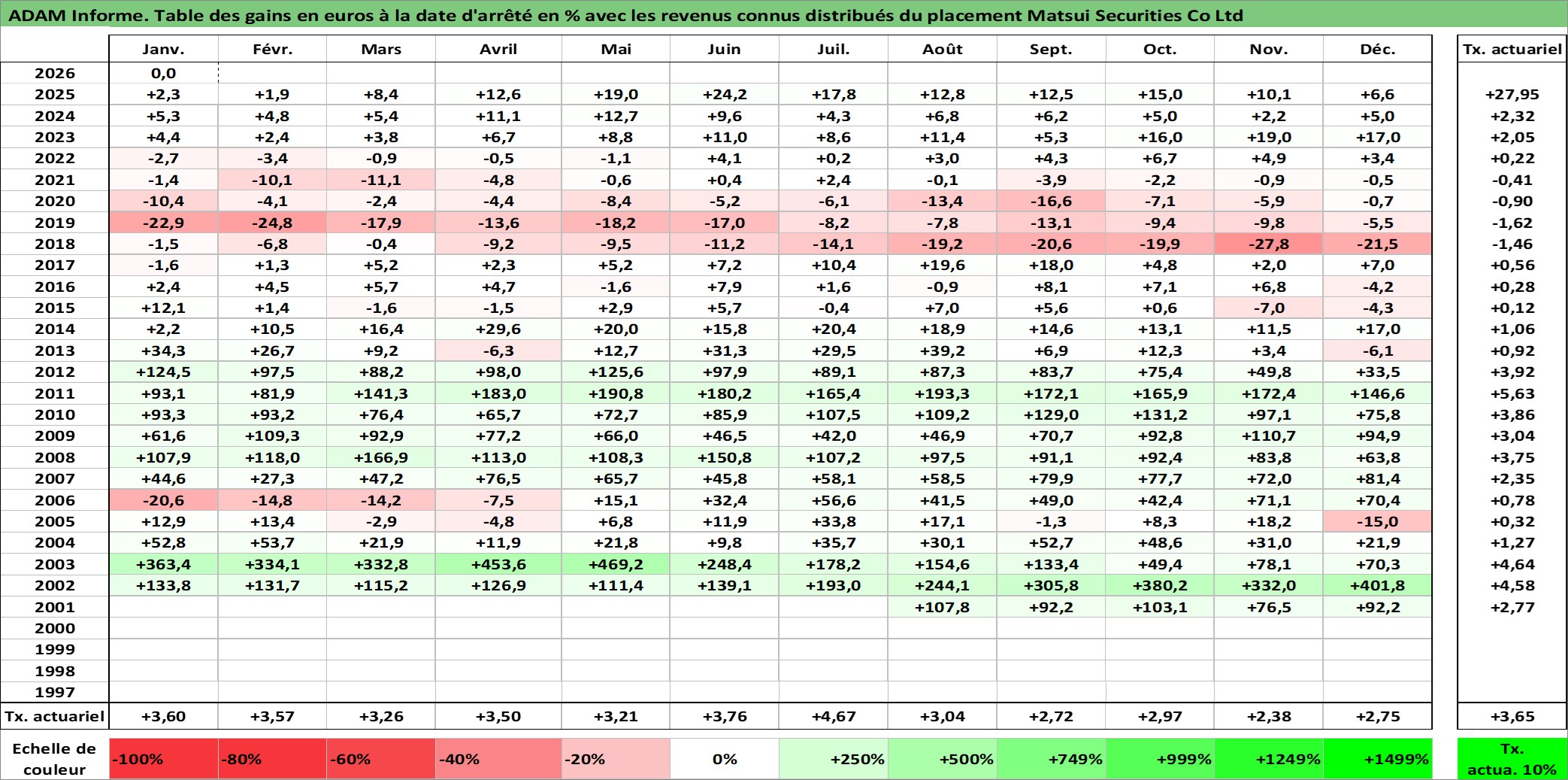 Dernière perfo 10 ans en %