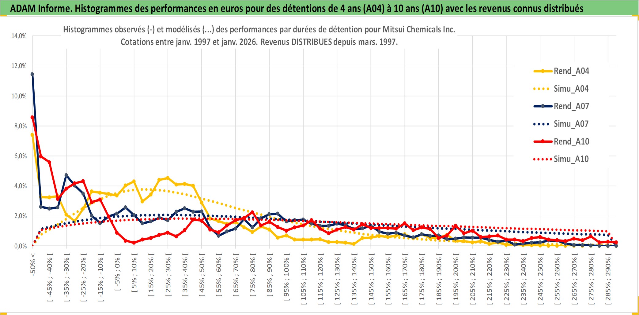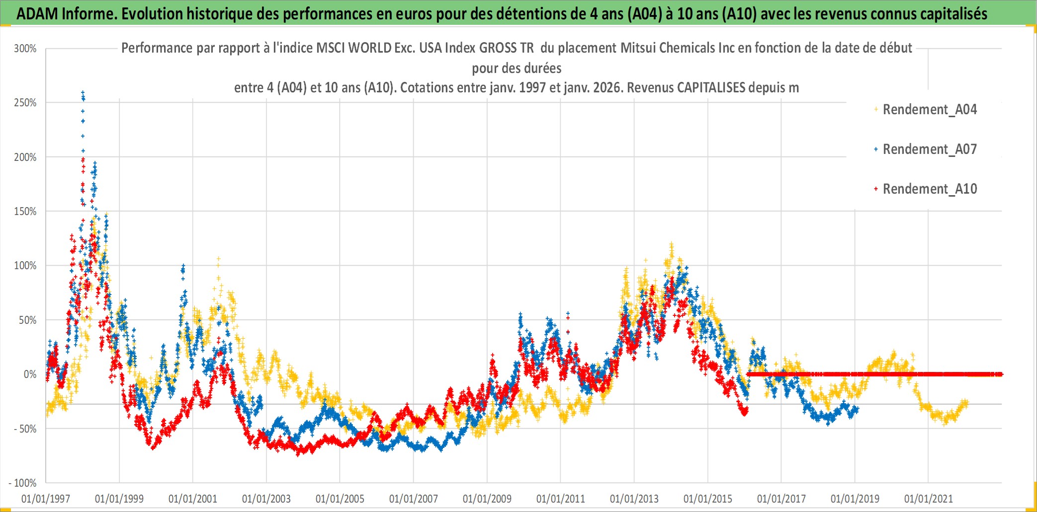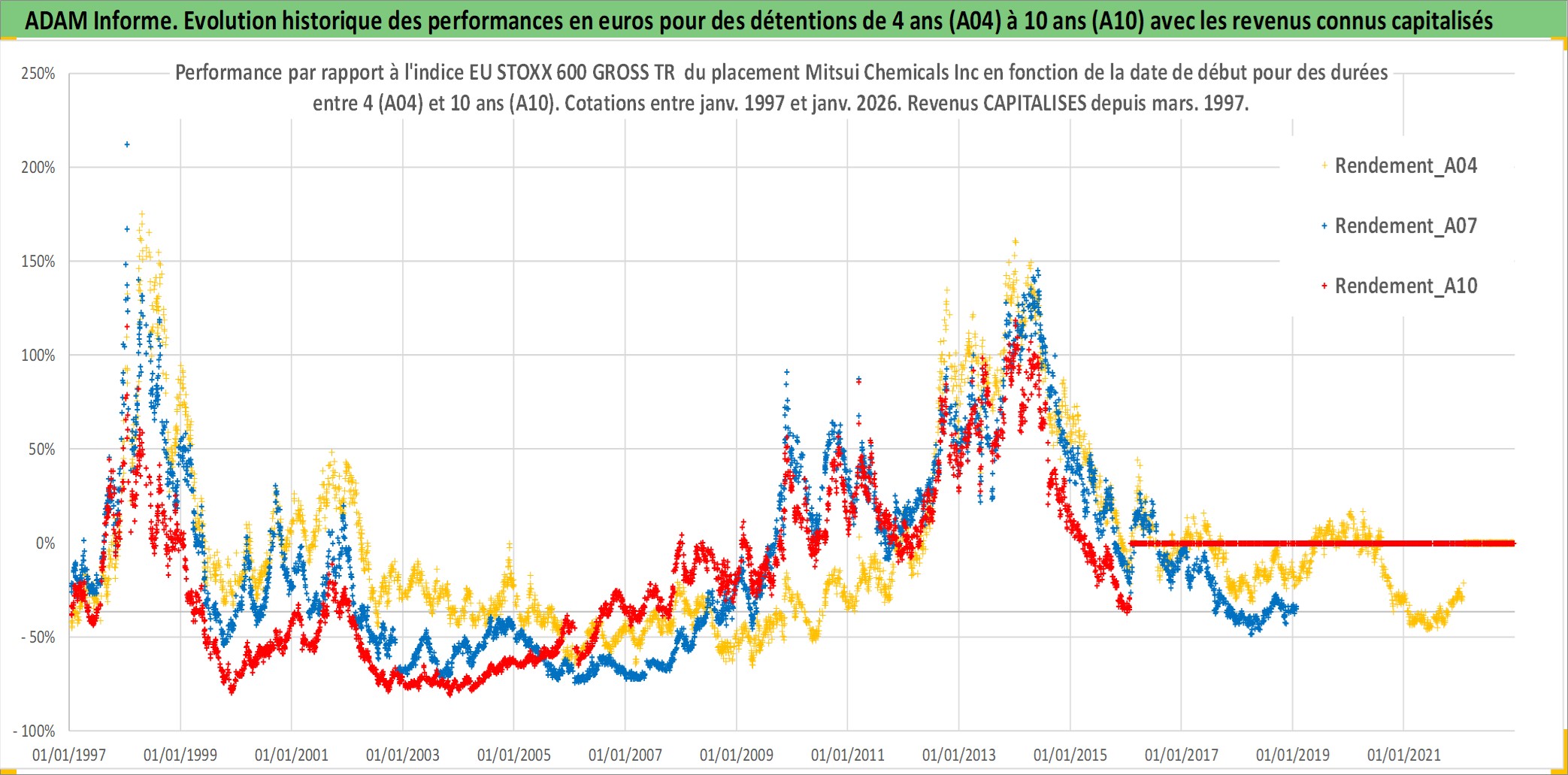 Site dédié aux investisseursPage dédiée sur site financeAnalyse des valorisations hebdomadaires de l'action Mitsui Chemicals Inc. Cet actif est cote en JPY. Les valorisations sont en contrevaleur EURO et couvrent les semaines 1997W01 a 2026W05. Les revenus de cet actif financier sont pris en compte depuis la semaine 1997W13. La note ESG de cet actif n'est pas connue.