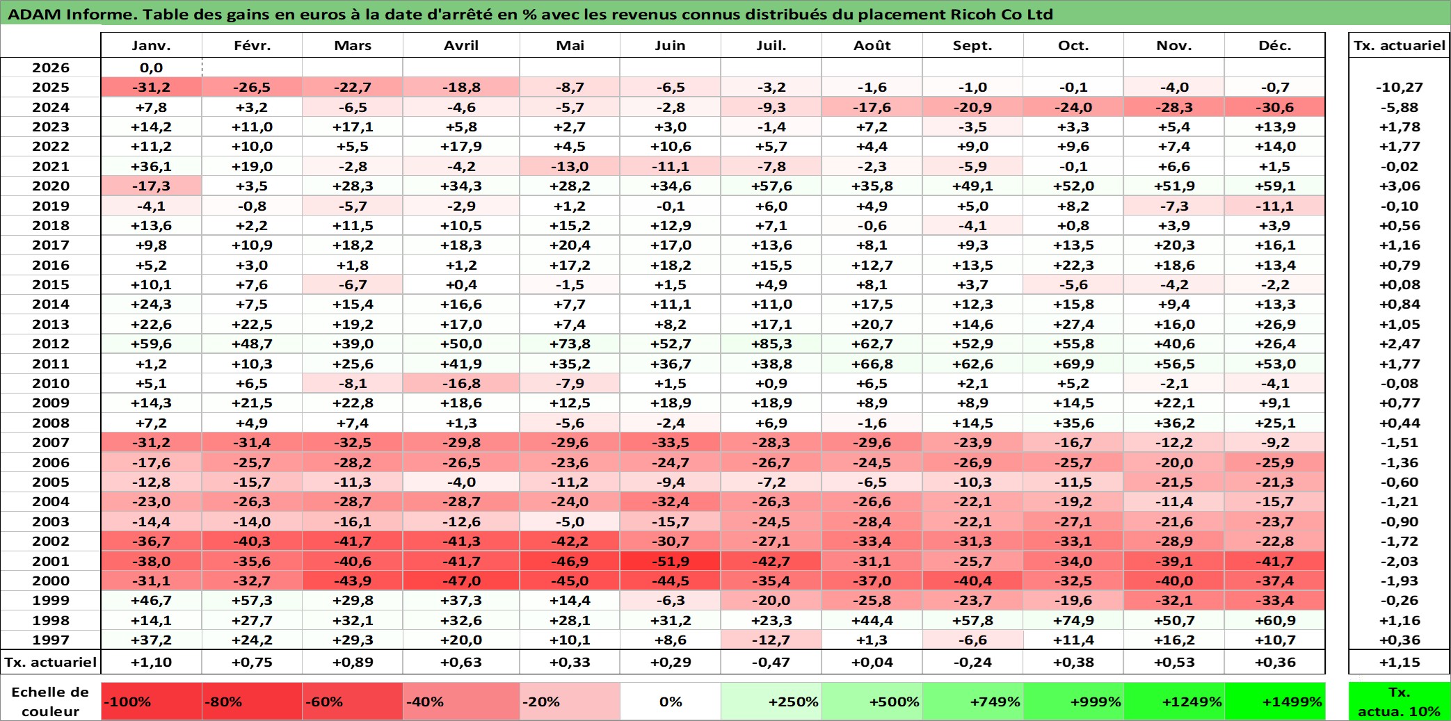 Dernière perfo 10 ans en %