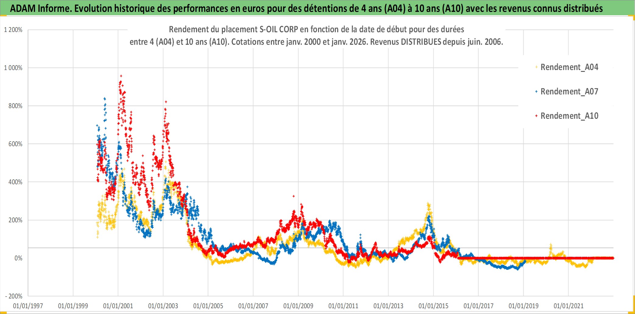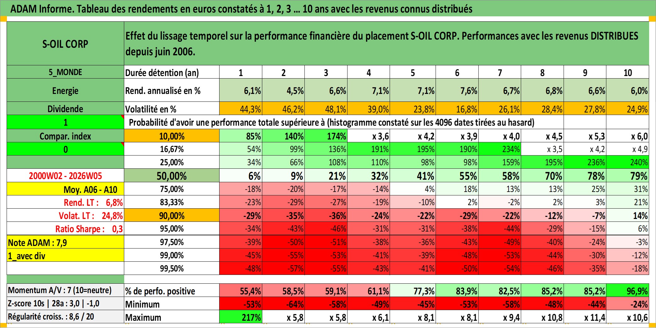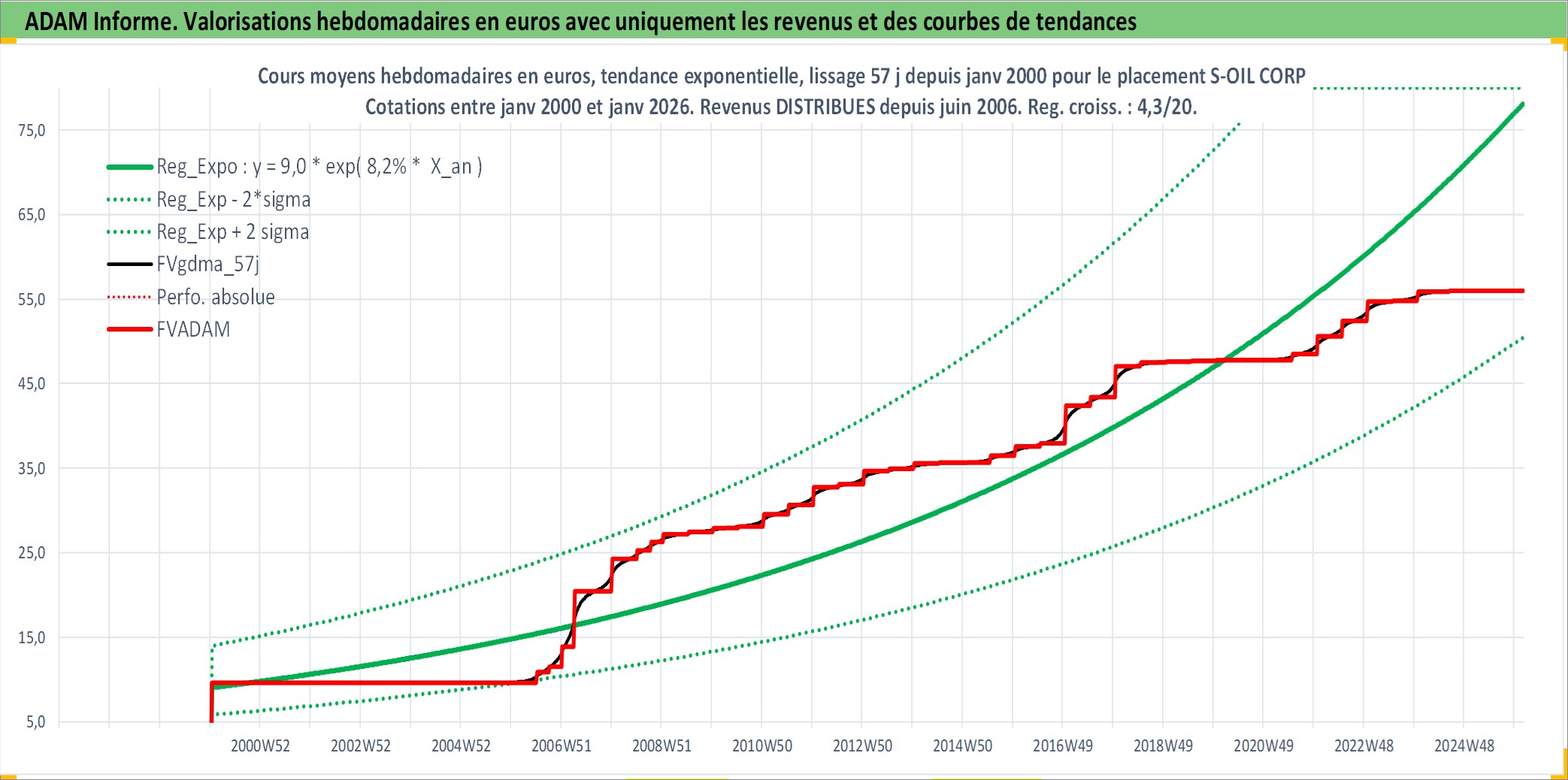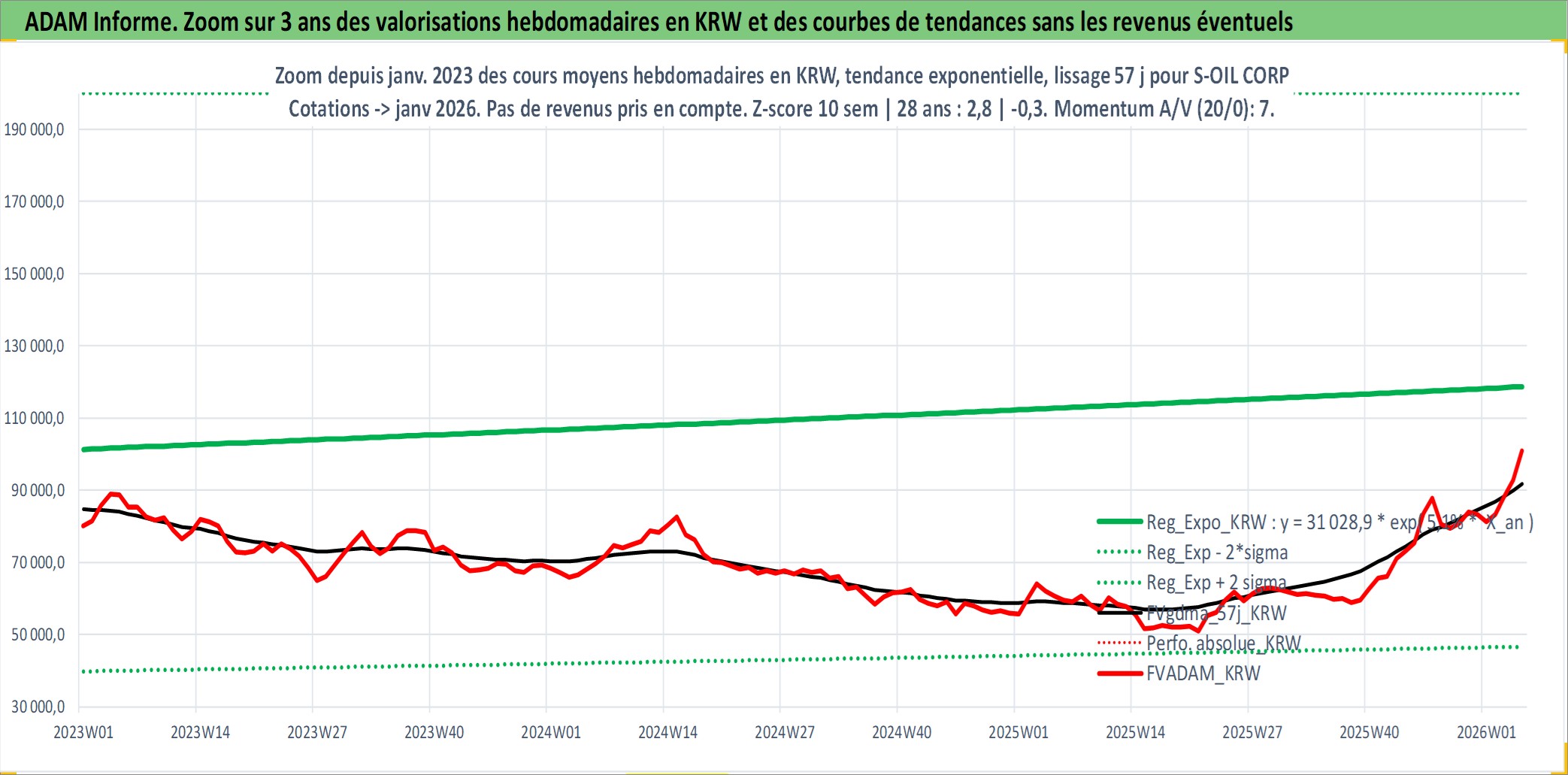 Site dédié aux investisseursPage dédiée sur site financeAnalyse des valorisations hebdomadaires de l'action S-OIL CORP. Cet actif est cote en KRW. Les valorisations sont en contrevaleur EURO et couvrent les semaines 2000W02 a 2026W05. Les revenus de cet actif financier sont pris en compte depuis la semaine 2006W26. La note globale ESG de cet actif est estimee a 4.0 (apres rebasage entre 0 et 20).