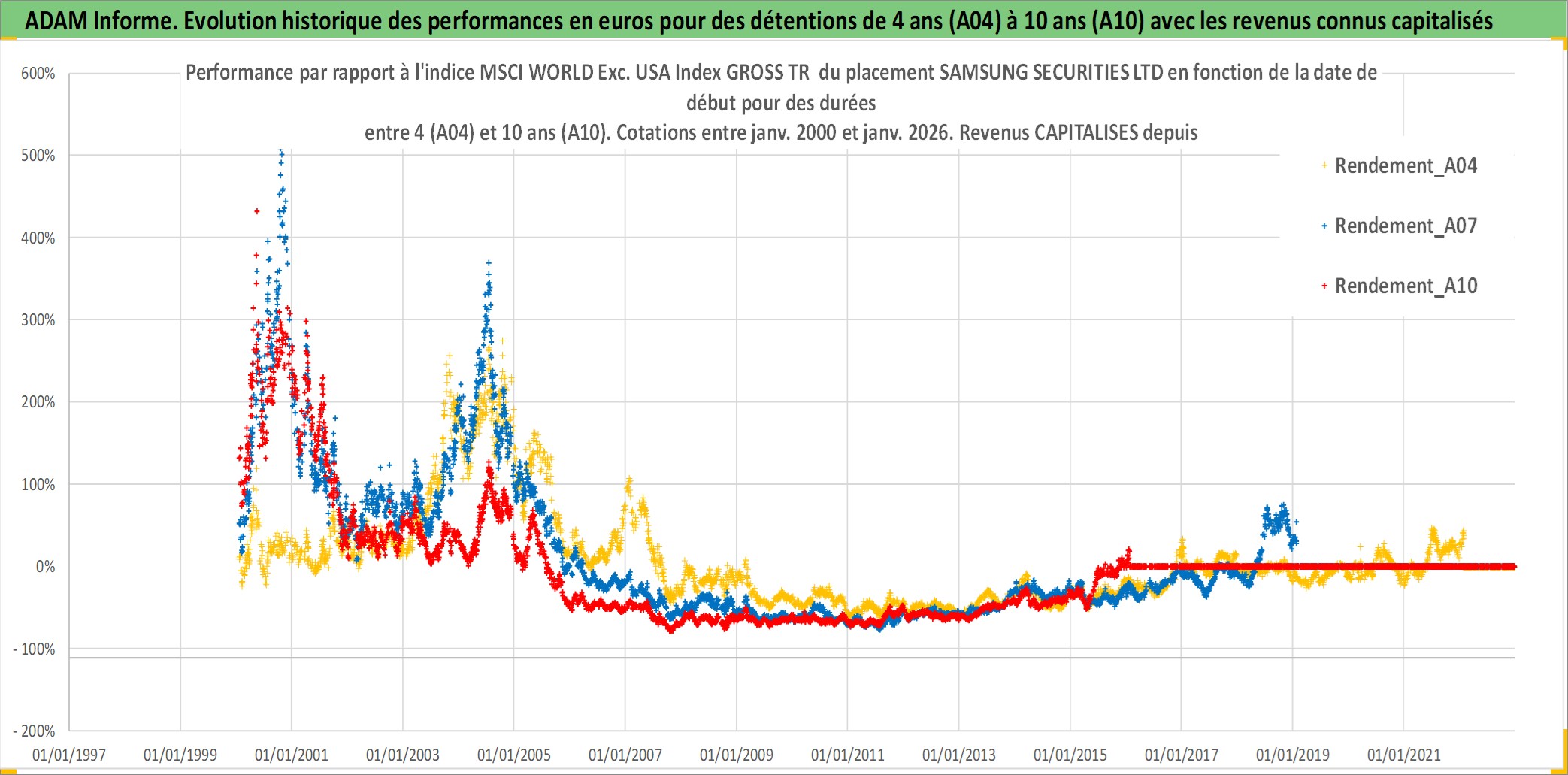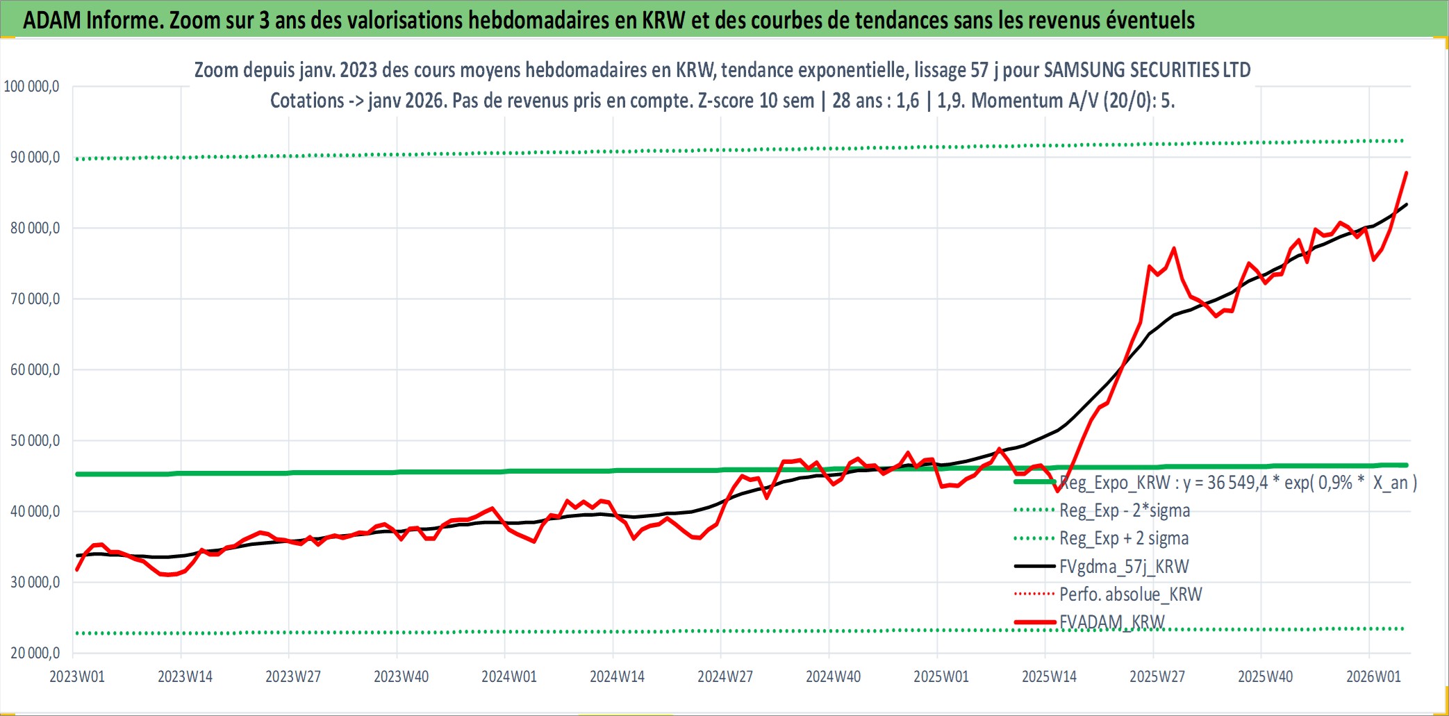 Site dédié aux investisseursPage dédiée sur site financeAnalyse des valorisations hebdomadaires de l'action SAMSUNG SECURITIES LTD. Cet actif est cote en KRW. Les valorisations sont en contrevaleur EURO et couvrent les semaines 2000W02 a 2026W05. Les revenus de cet actif financier sont pris en compte depuis la semaine 2000W13. La note ESG de cet actif n'est pas connue.