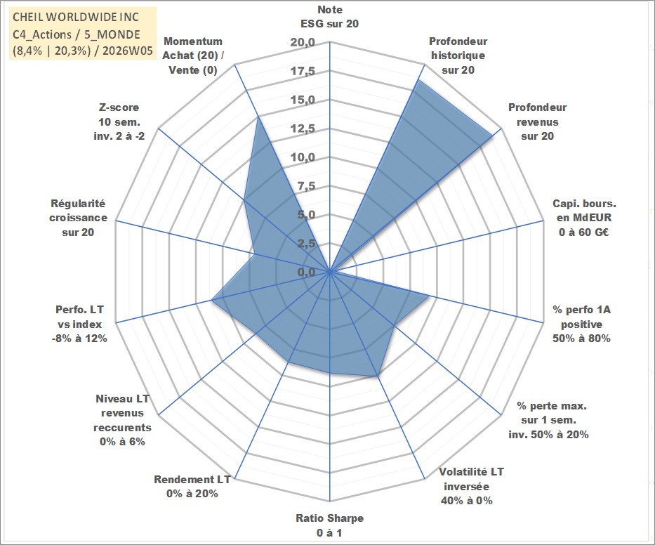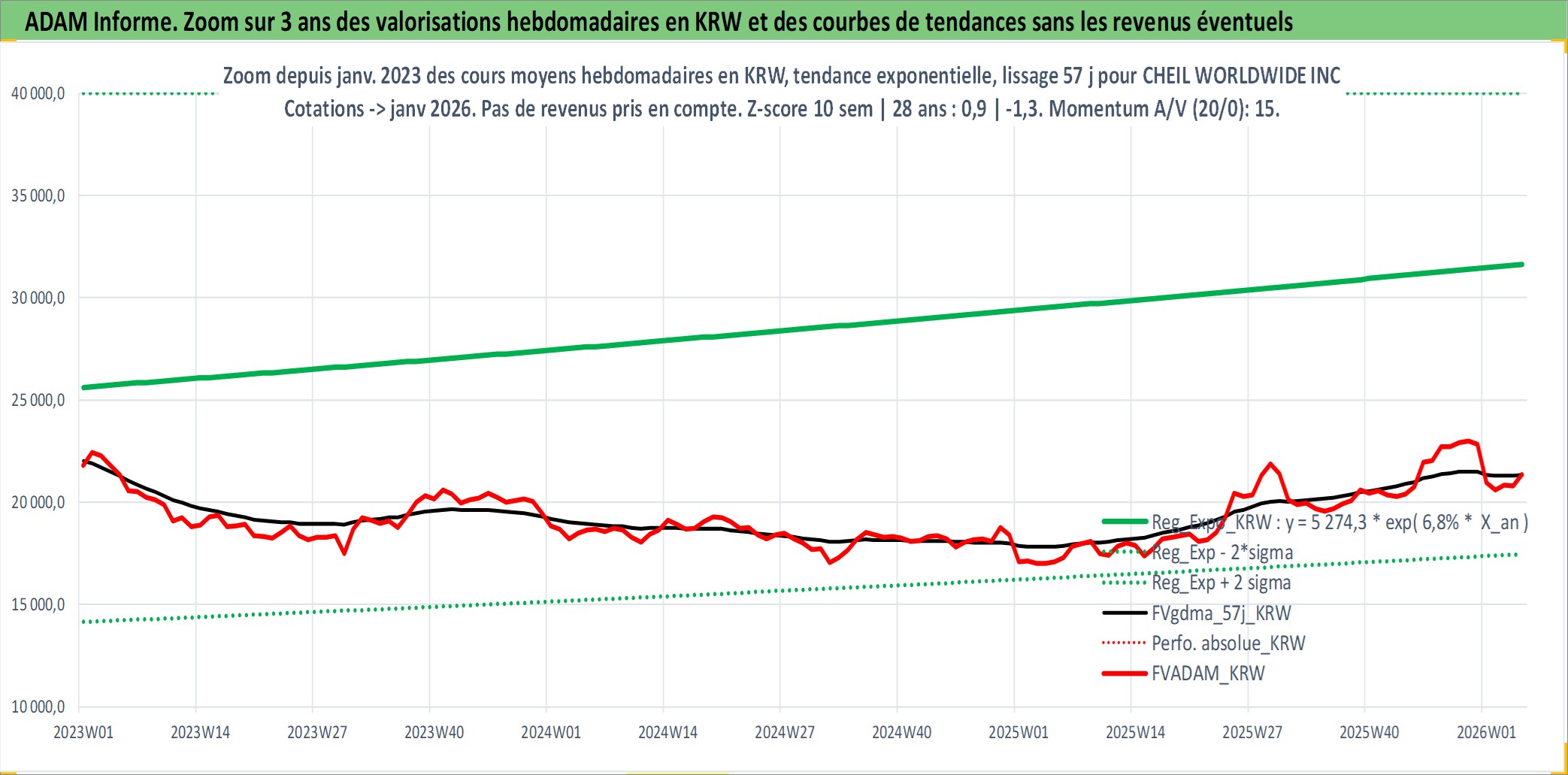 Site dédié aux investisseursPage dédiée sur site financeAnalyse des valorisations hebdomadaires de l'action CHEIL WORLDWIDE INC. Cet actif est cote en KRW. Les valorisations sont en contrevaleur EURO et couvrent les semaines 2000W02 a 2026W05. Les revenus de cet actif financier sont pris en compte depuis la semaine 2000W01. La note ESG de cet actif n'est pas connue.