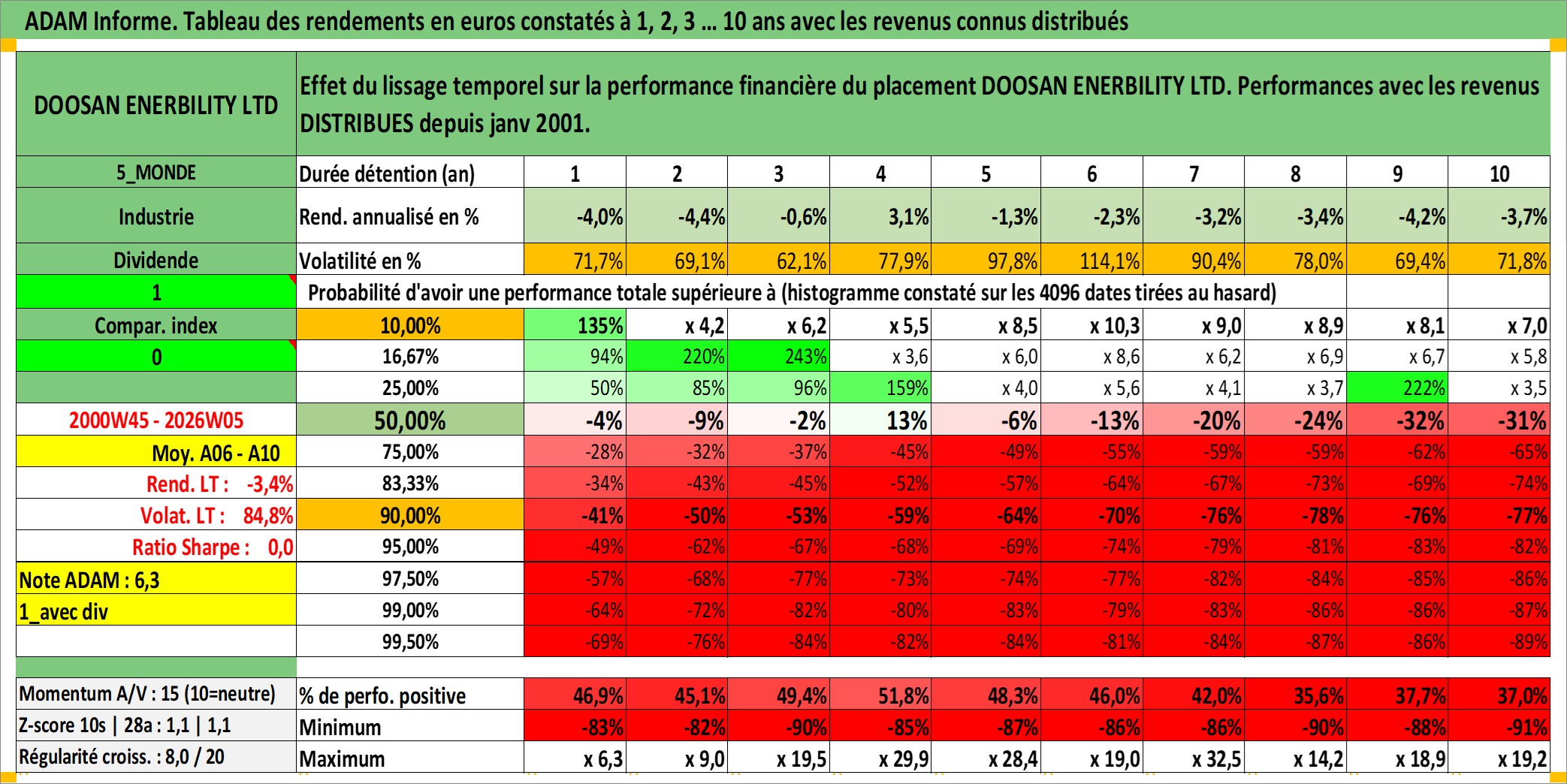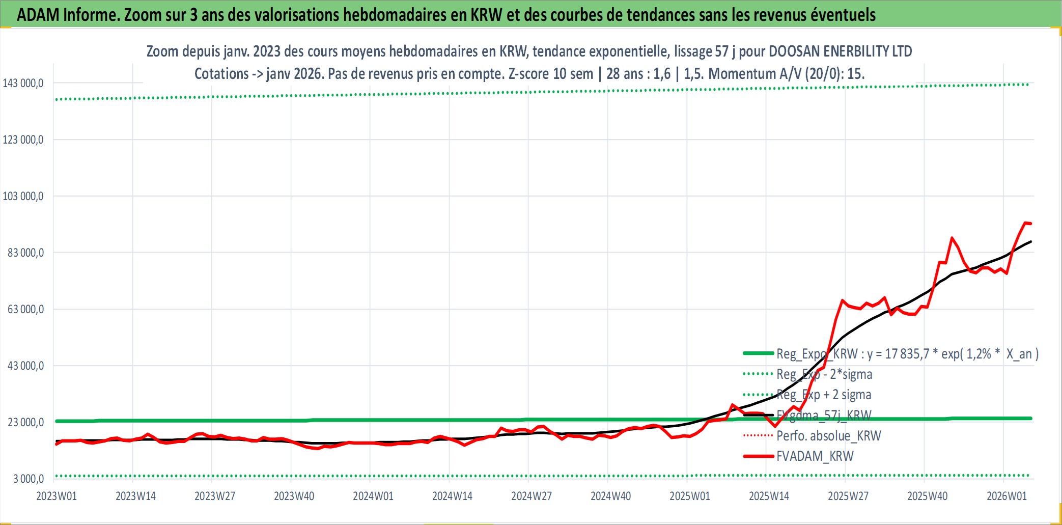 Site dédié aux investisseursPage dédiée sur site financeAnalyse des valorisations hebdomadaires de l'action DOOSAN ENERBILITY LTD. Cet actif est cote en KRW. Les valorisations sont en contrevaleur EURO et couvrent les semaines 2000W45 a 2026W05. Les revenus de cet actif financier sont pris en compte depuis la semaine 2001W01. La note ESG de cet actif n'est pas connue.