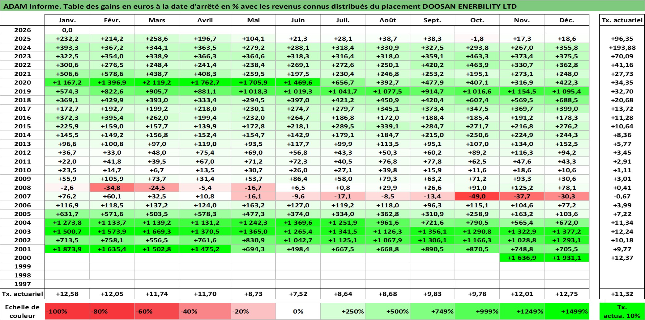 Dernière perfo 1 an en %