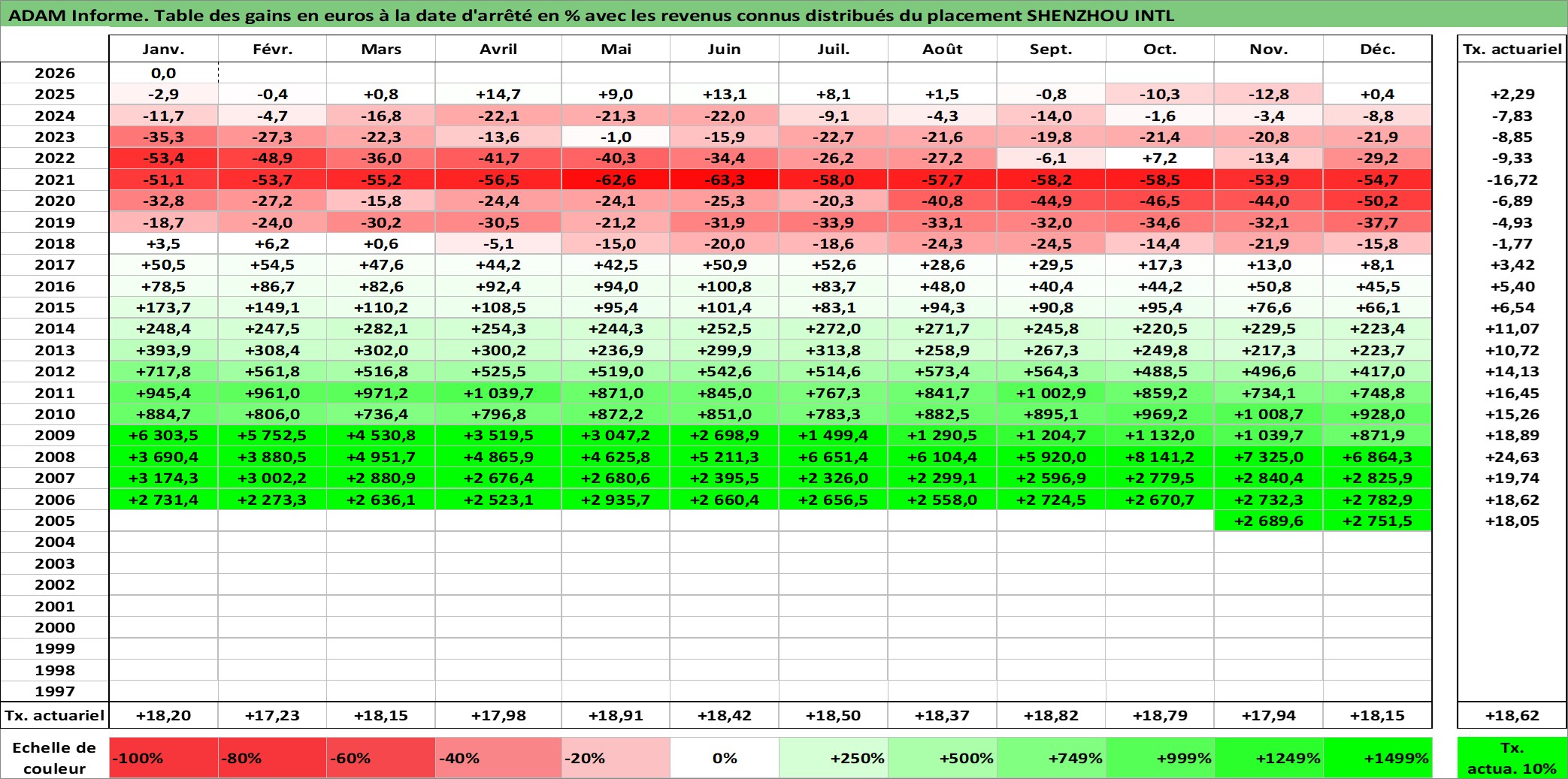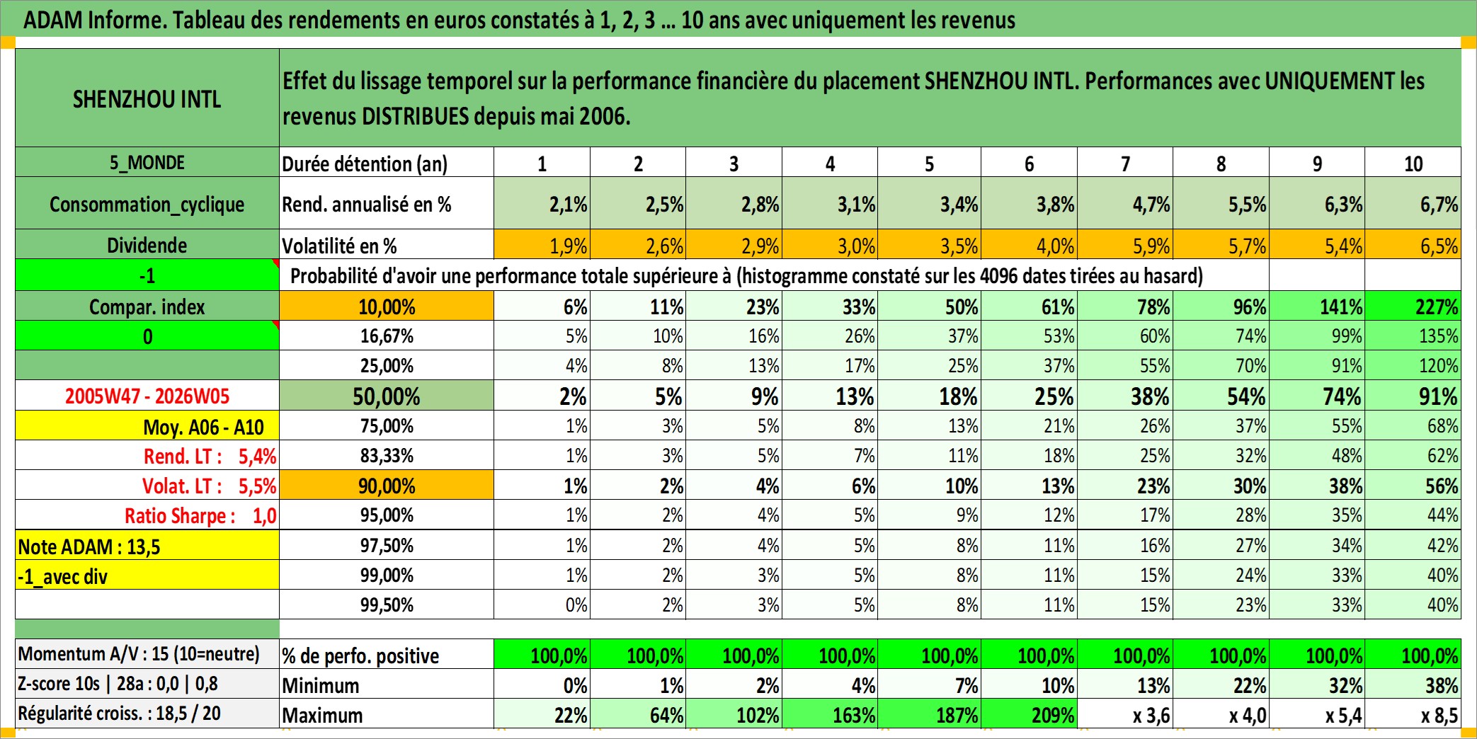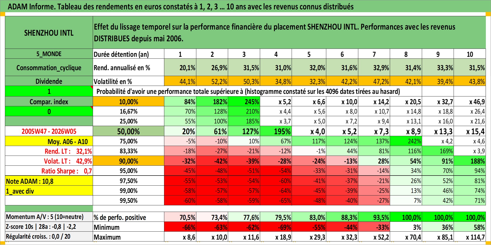 Site dédié aux investisseursPage dédiée sur site financeAnalyse des valorisations hebdomadaires de l'action SHENZHOU INTL. Cet actif est cote en HKD. Les valorisations sont en contrevaleur EURO et couvrent les semaines 2005W47 a 2026W05. Les revenus de cet actif financier sont pris en compte depuis la semaine 2006W22. La note globale ESG de cet actif est estimee a 12.0 (apres rebasage entre 0 et 20).
