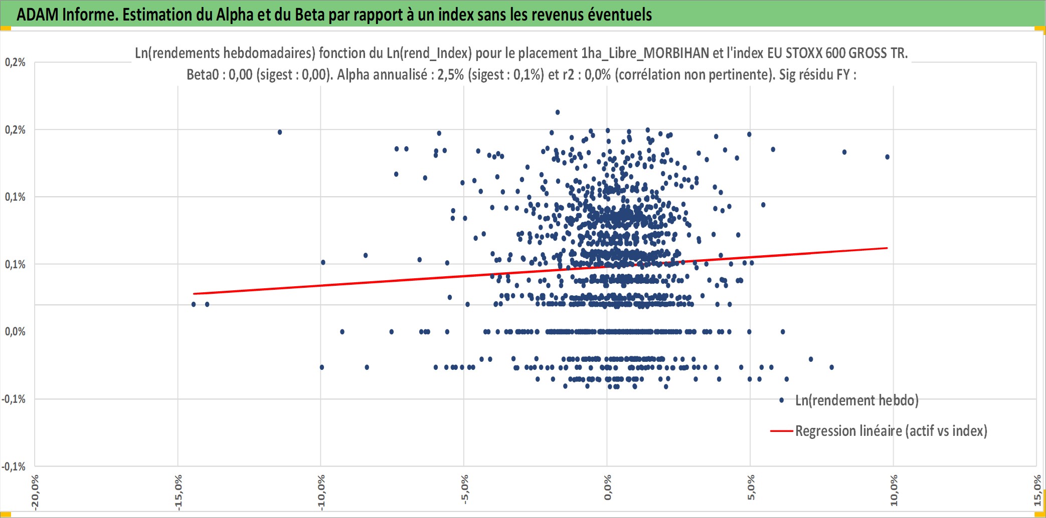 Site dédié aux investisseursPage dédiée sur site financeAnalyse des valorisations hebdomadaires de l'actif 1ha_Libre_MORBIHAN. Cet actif est cote en EUR. Les valorisations couvrent les semaines 1997W01 a 2026W05. Les fermages de ce bien foncier sont pris egaux a 2,5% annuels de la valeur venale du bien.