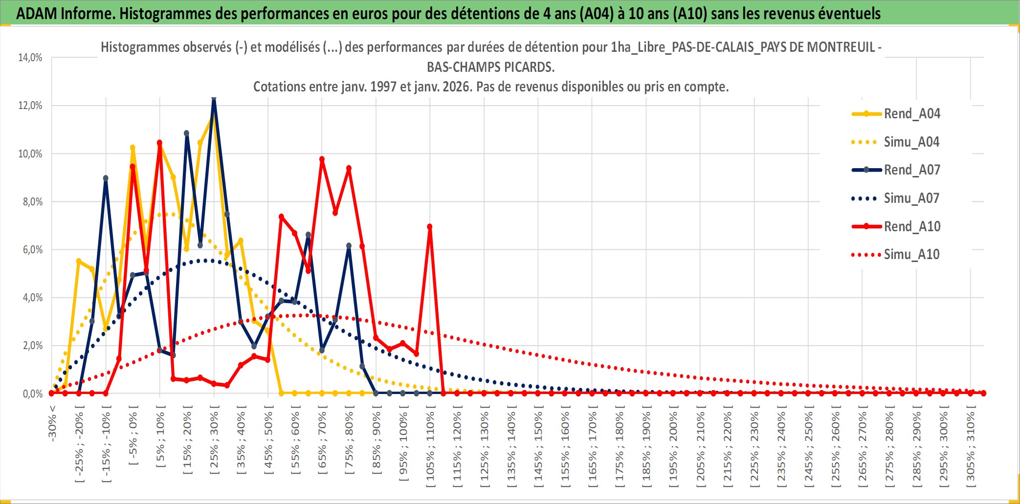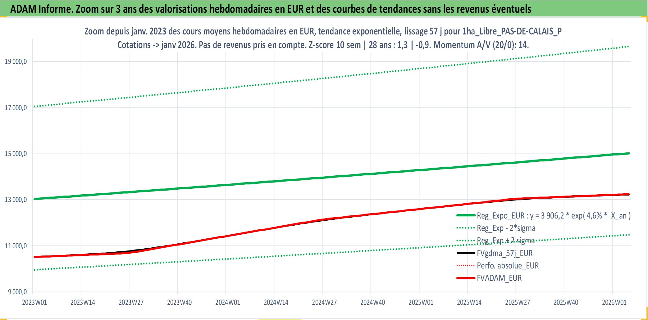 Site dédié aux investisseursPage dédiée sur site financeAnalyse des valorisations hebdomadaires de l'actif 1ha_Libre_PAS-DE-CALAIS_PAYS DE MONTREUIL - BAS-CHAMPS PICARDS. Cet actif est cote en EUR. Les valorisations couvrent les semaines 1997W01 a 2026W05. Les fermages de ce bien foncier sont pris egaux a 2,5% annuels de la valeur venale du bien.