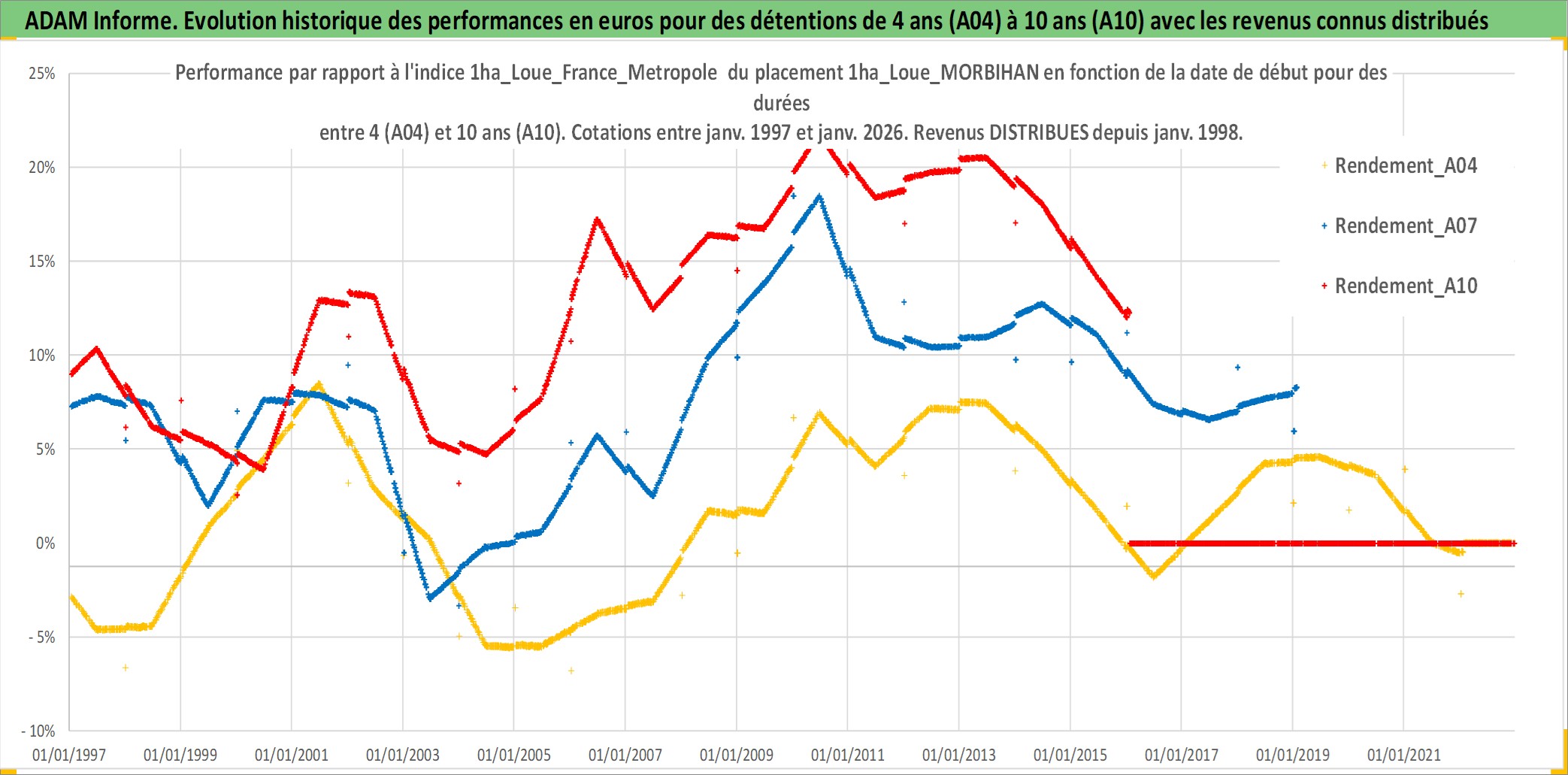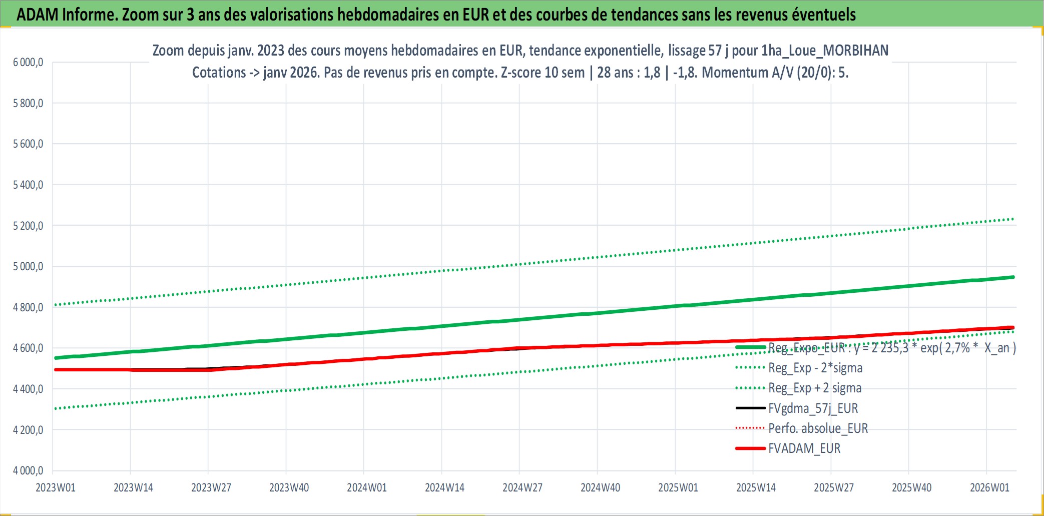 Site dédié aux investisseursPage dédiée sur site financeAnalyse des valorisations hebdomadaires de l'actif 1ha_Loue_MORBIHAN. Cet actif est cote en EUR. Les valorisations couvrent les semaines 1997W01 a 2026W05. Les fermages de ce bien foncier sont pris egaux a 2,5% annuels de la valeur venale du bien.