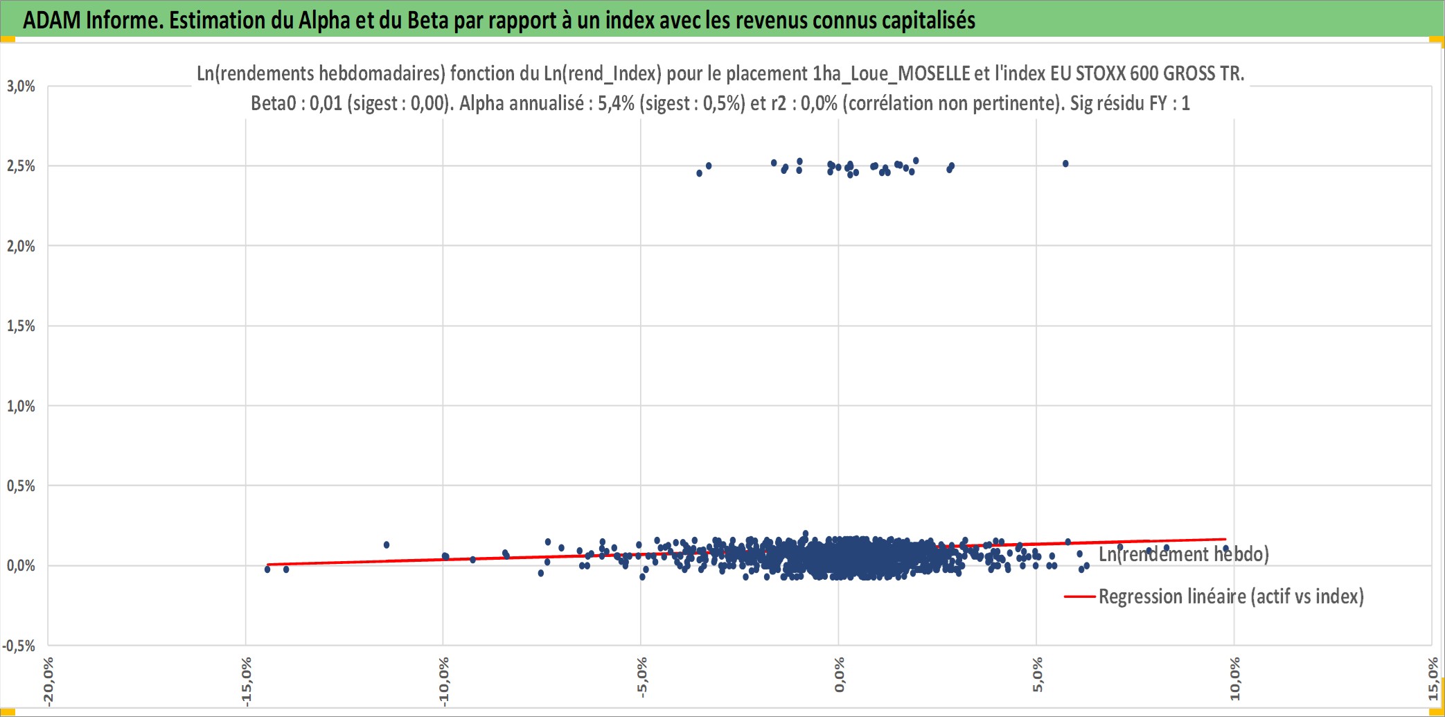 Site dédié aux investisseursPage dédiée sur site financeAnalyse des valorisations hebdomadaires de l'actif 1ha_Loue_MOSELLE. Cet actif est cote en EUR. Les valorisations couvrent les semaines 1997W01 a 2026W05. Les fermages de ce bien foncier sont pris egaux a 2,5% annuels de la valeur venale du bien.