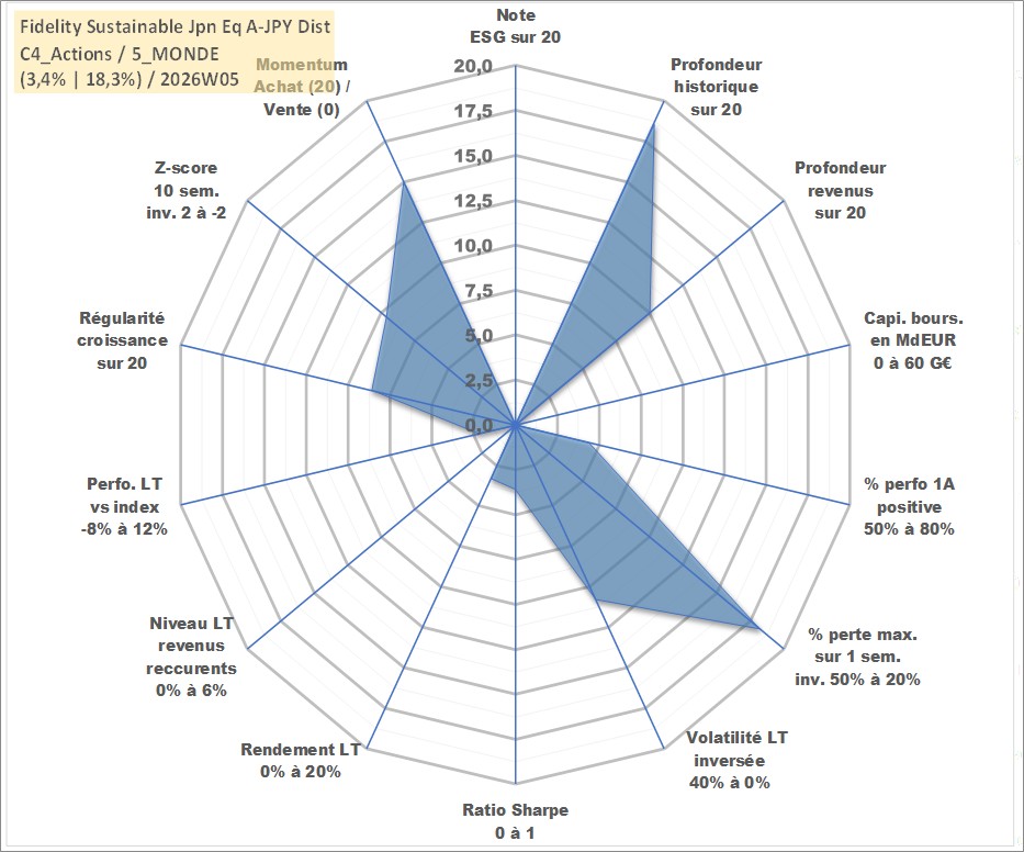 Site dédié aux investisseursPage dédiée sur site financeAnalyse des valorisations hebdomadaires du fonds Fidelity Sustainable Jpn Eq A-JPY Dist. Cet actif est cote en JPY. Les valorisations sont en contrevaleur EURO et couvrent les semaines 1999W44 a 2026W05. Les revenus de cet actif financier sont pris en compte depuis la semaine 2011W31. La note ESG de cet actif n'est pas connue.