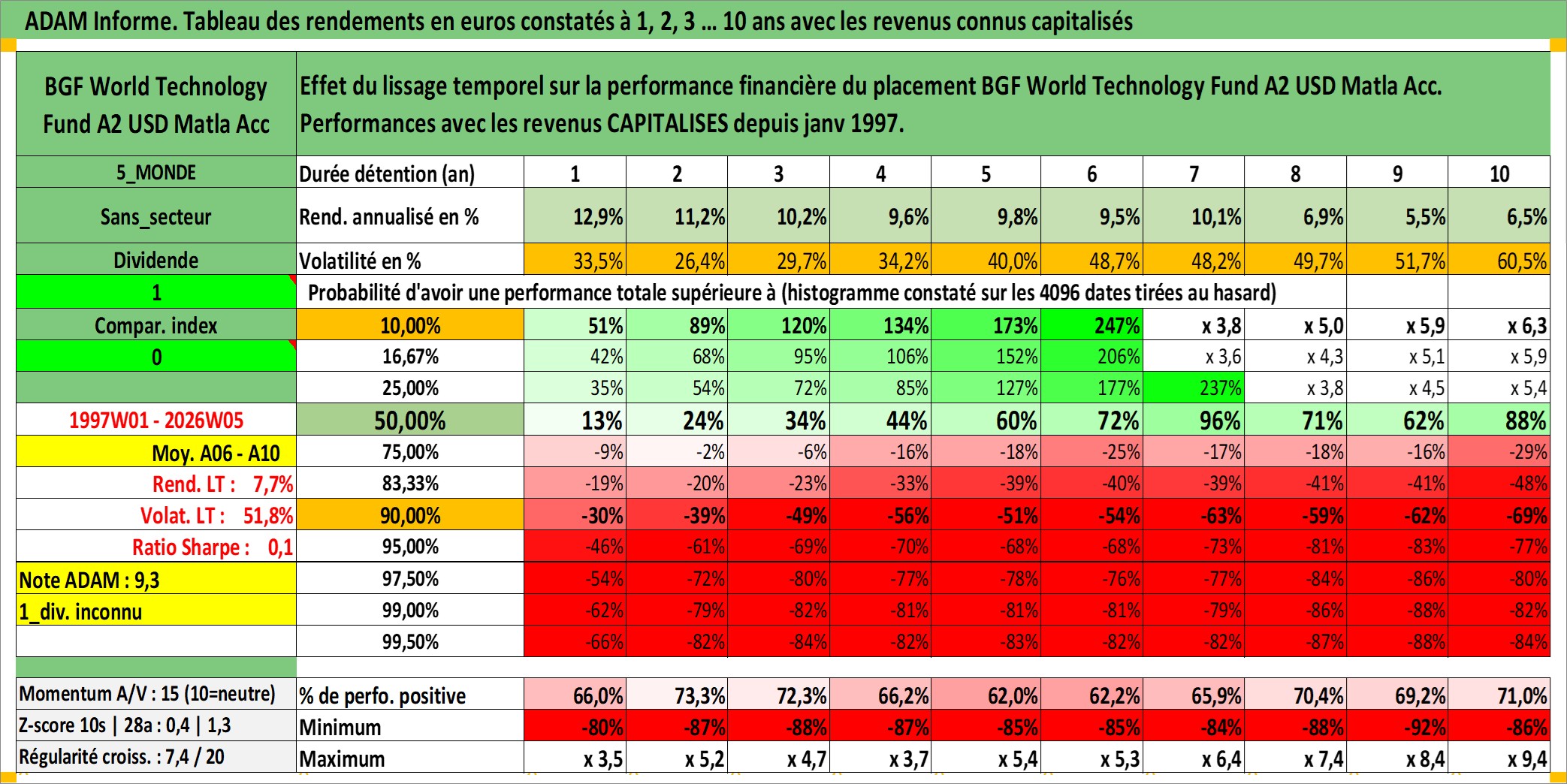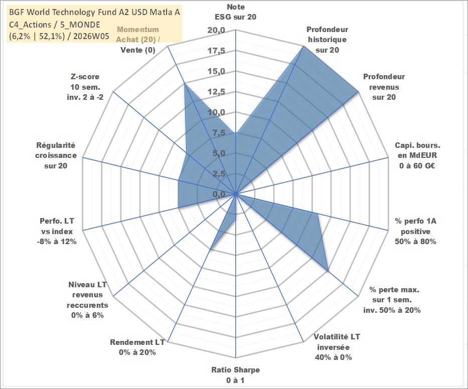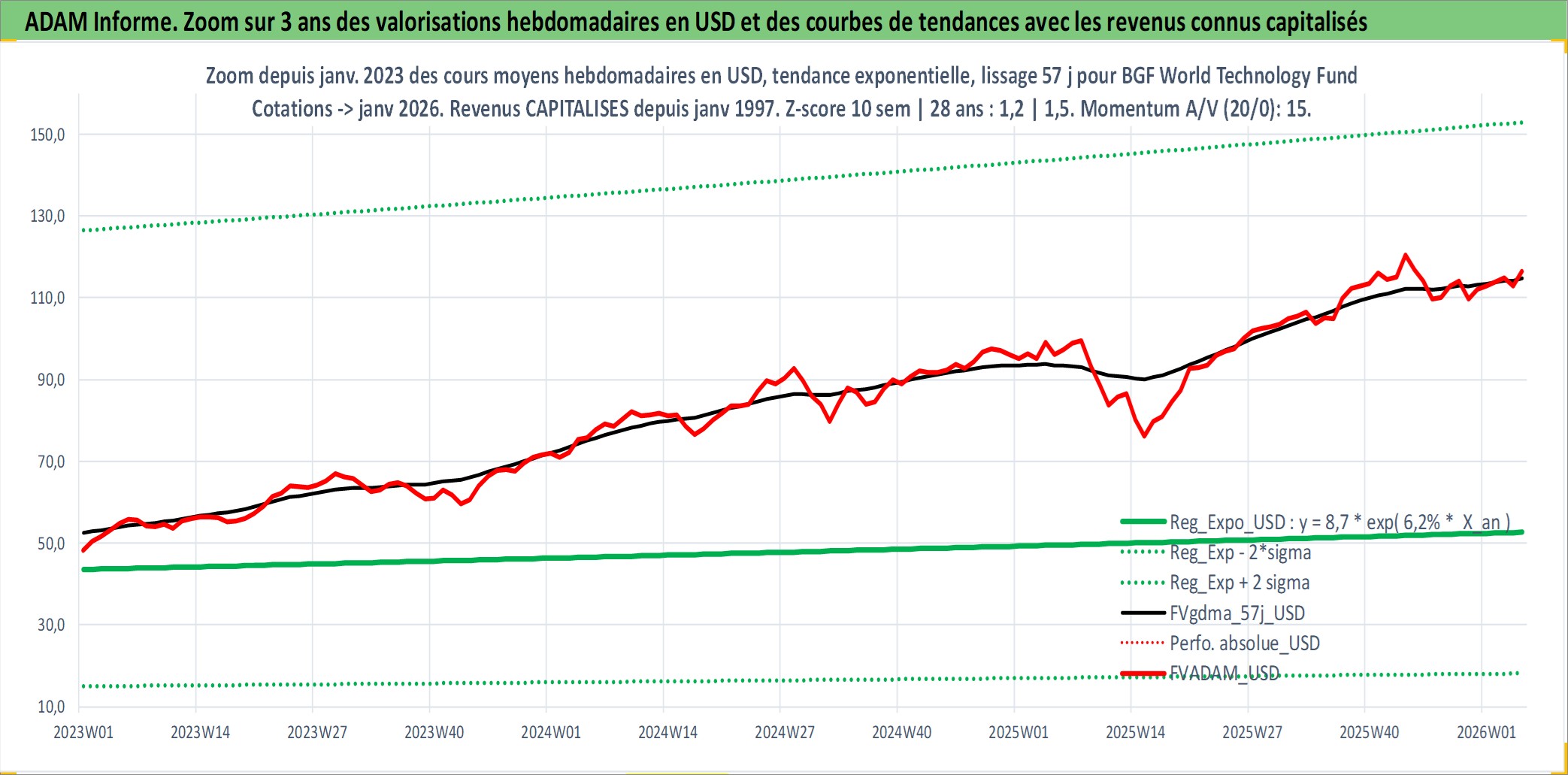 Site dédié aux investisseursPage dédiée sur site financeAnalyse des valorisations hebdomadaires du fonds BGF World Technology Fund A2 USD Matla Acc. Cet actif est cote en USD. Les valorisations sont en contrevaleur EURO et couvrent les semaines 1997W01 a 2026W05. Les revenus de cet actif financier sont pris en compte depuis la semaine 1997W01. La note globale ESG de cet actif est estimee a 7.2 (apres rebasage entre 0 et 20).
