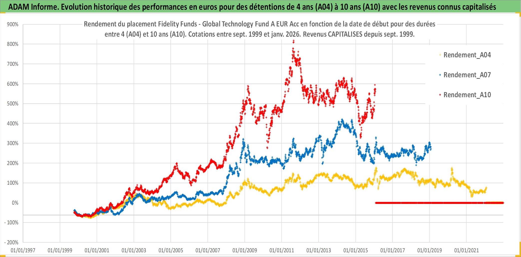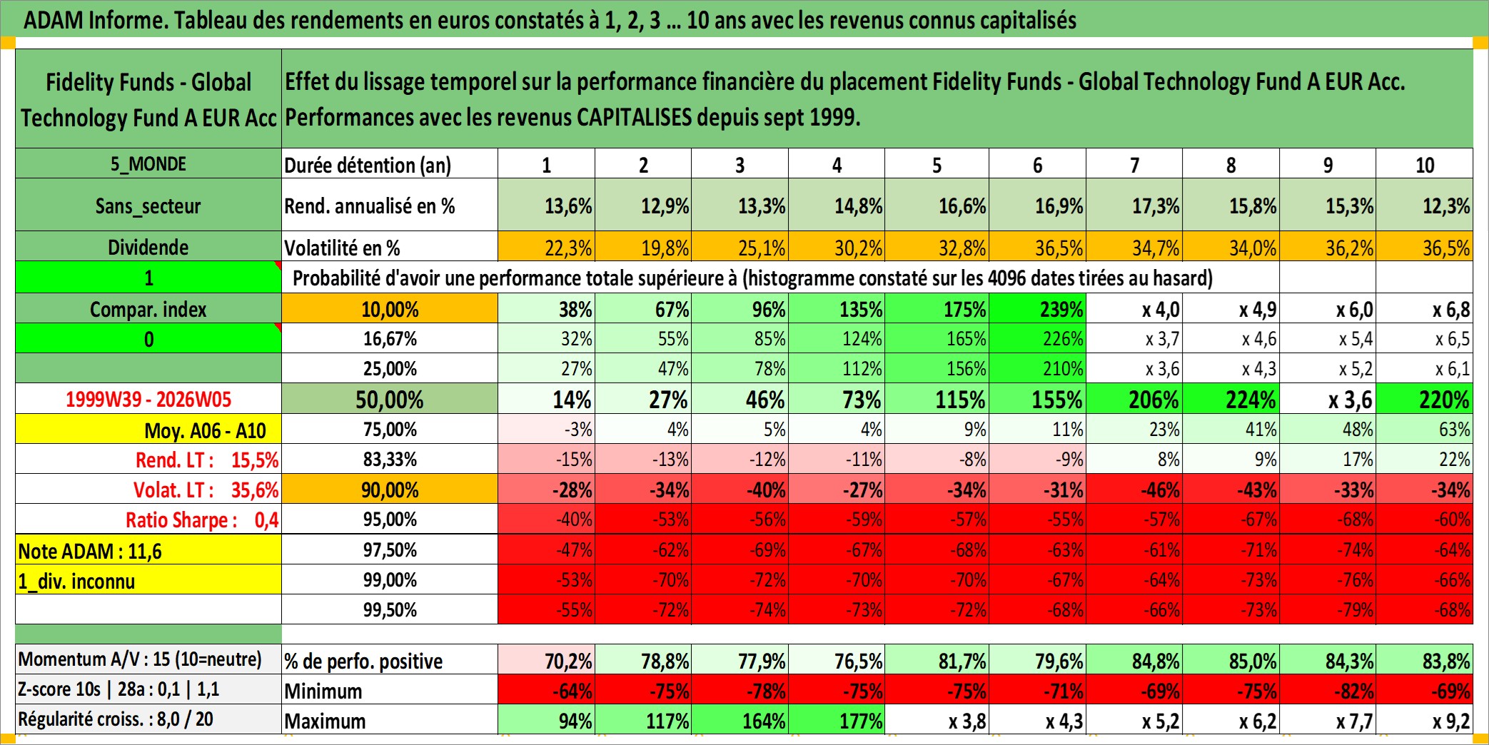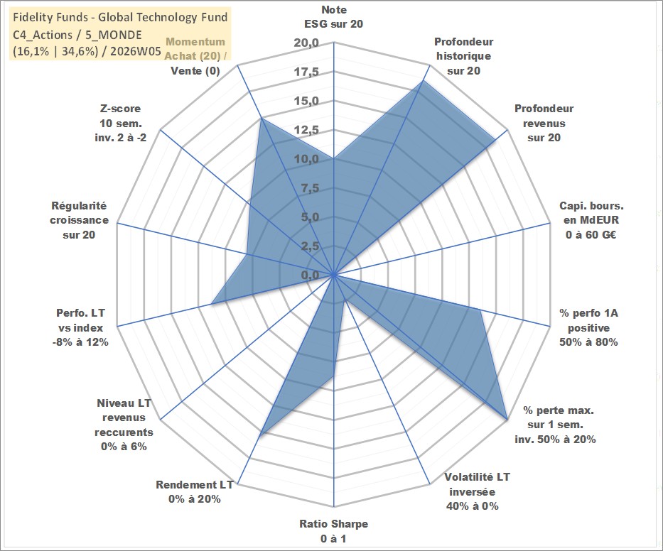 Site dédié aux investisseursPage dédiée sur site financeAnalyse des valorisations hebdomadaires du fonds Fidelity Funds - Global Technology Fund A EUR Acc. Cet actif est cote en EUR. Les valorisations couvrent les semaines 1999W39 a 2026W05. Les revenus de cet actif financier sont pris en compte depuis la semaine 1999W39. La note globale ESG de cet actif est estimee a 10.0 (apres rebasage entre 0 et 20).