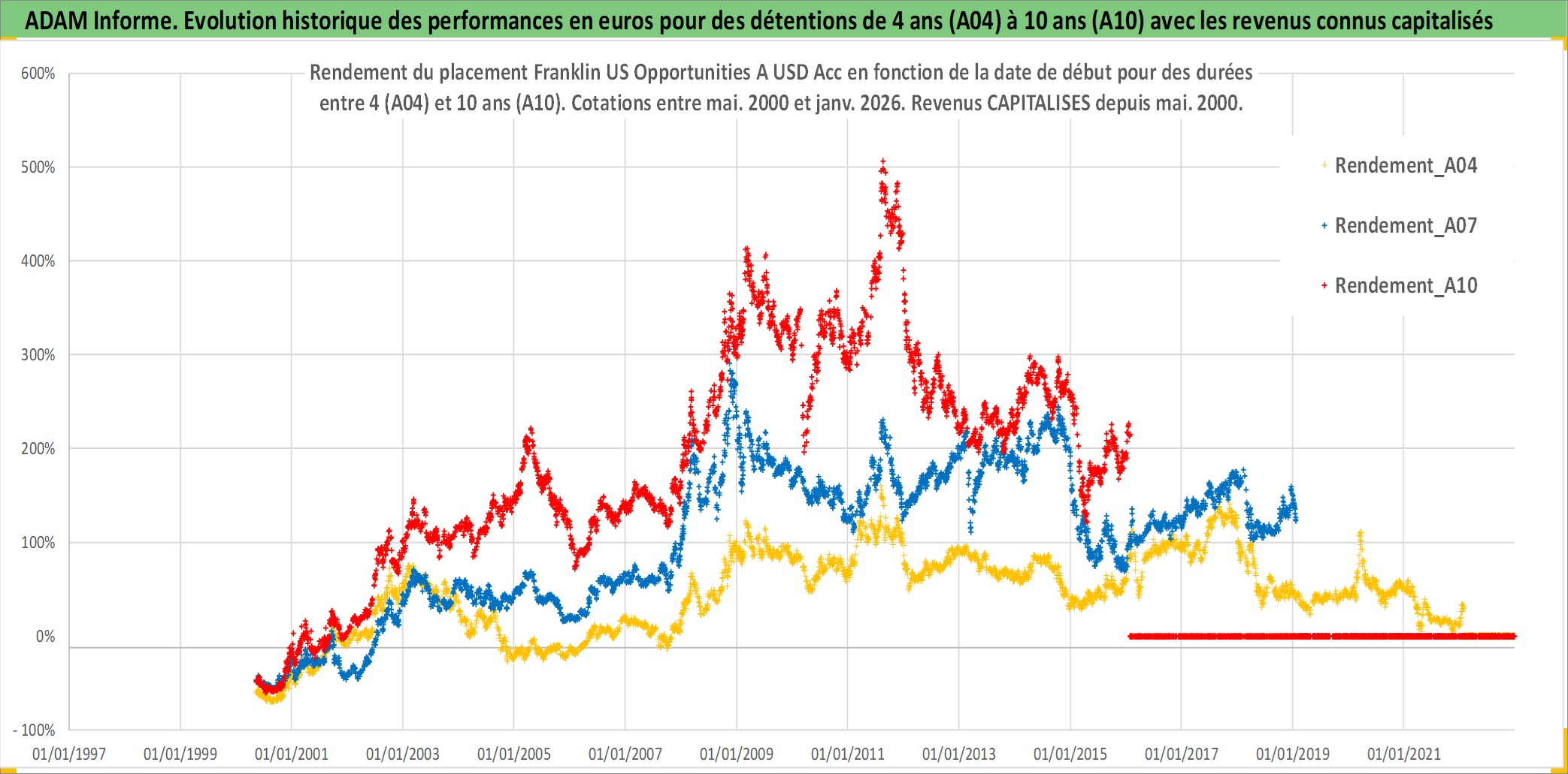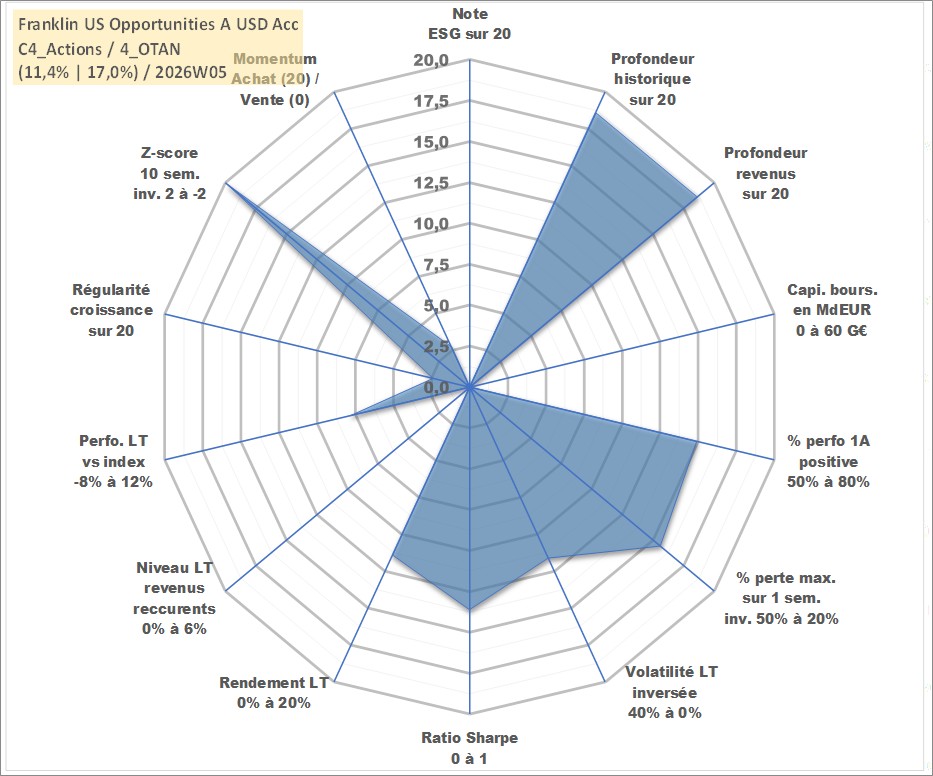 Site dédié aux investisseursPage dédiée sur site financeAnalyse des valorisations hebdomadaires du fonds Franklin US Opportunities A USD Acc. Cet actif est cote en USD. Les valorisations sont en contrevaleur EURO et couvrent les semaines 2000W18 a 2026W05. Les revenus de cet actif financier sont pris en compte depuis la semaine 2000W18. La note ESG de cet actif n'est pas connue.
