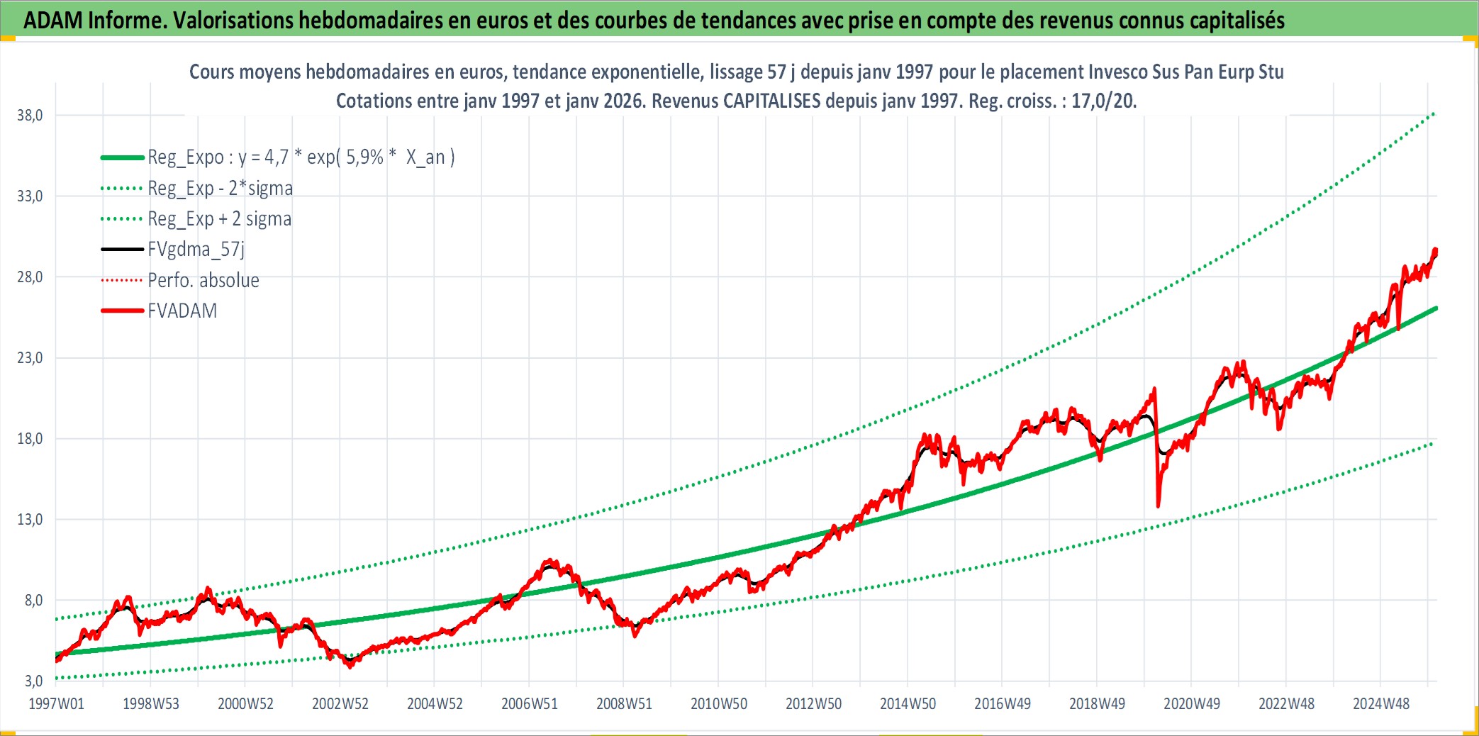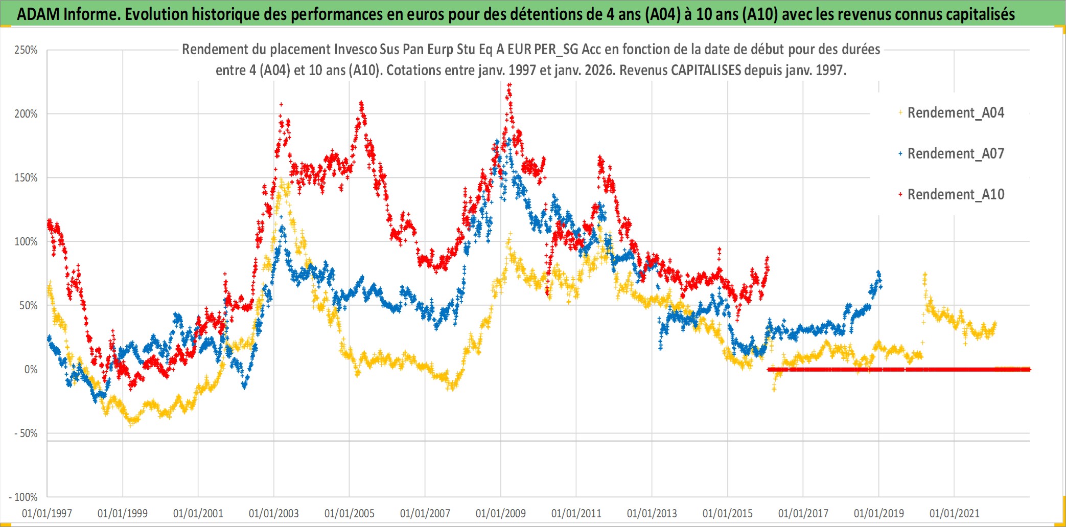 Site dédié aux investisseursPage dédiée sur site financeAnalyse des valorisations hebdomadaires du fonds Invesco Sus Pan Eurp Stu Eq A EUR PER_SG Acc. Cet actif est cote en EUR. Les valorisations couvrent les semaines 1997W01 a 2026W05. Les revenus de cet actif financier sont pris en compte depuis la semaine 1997W01. La note globale ESG de cet actif est estimee a 10.0 (apres rebasage entre 0 et 20).