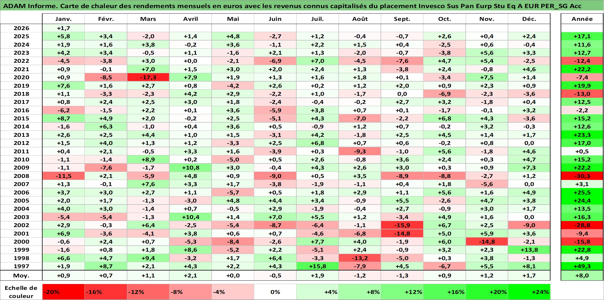 Dernière perfo 1 an en %