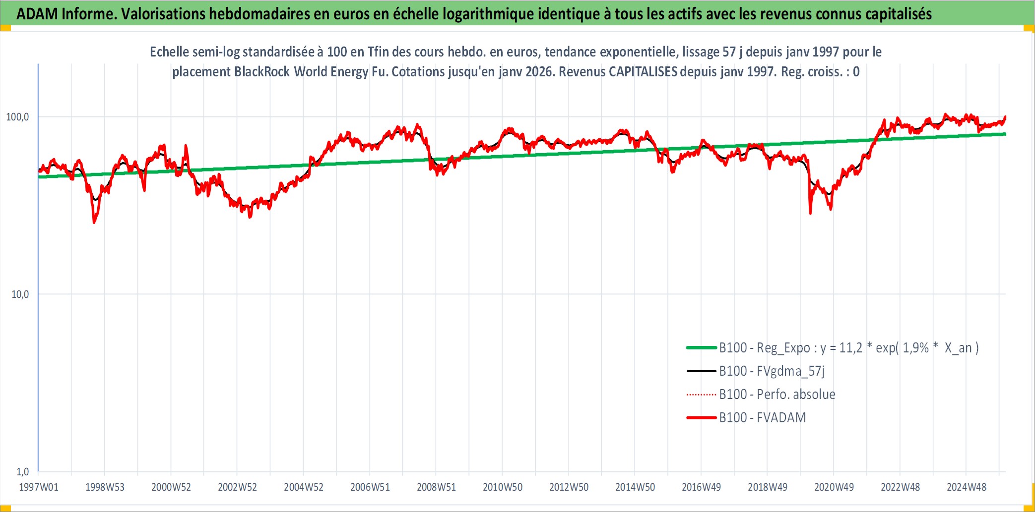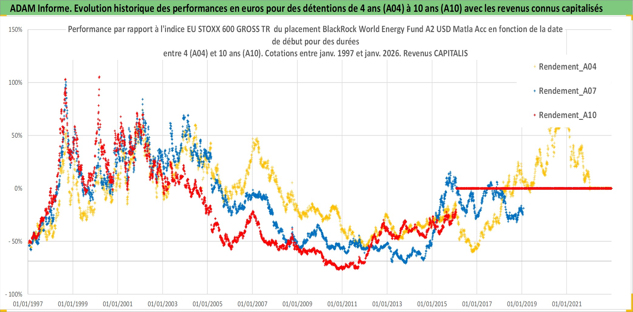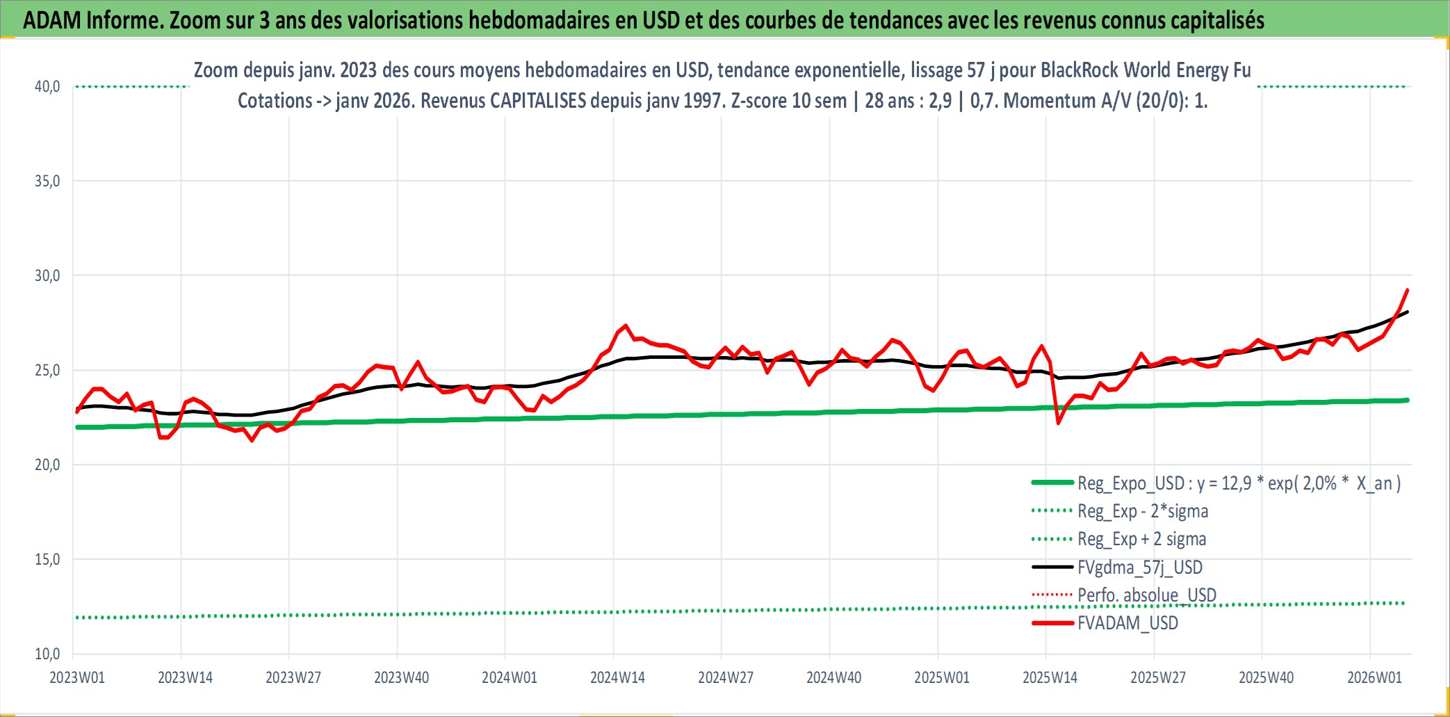 Site dédié aux investisseursPage dédiée sur site financeAnalyse des valorisations hebdomadaires du fonds BlackRock World Energy Fund A2 USD Matla Acc. Cet actif est cote en USD. Les valorisations sont en contrevaleur EURO et couvrent les semaines 1997W01 a 2026W05. Les revenus de cet actif financier sont pris en compte depuis la semaine 1997W01. La note globale ESG de cet actif est estimee a 7.1 (apres rebasage entre 0 et 20).