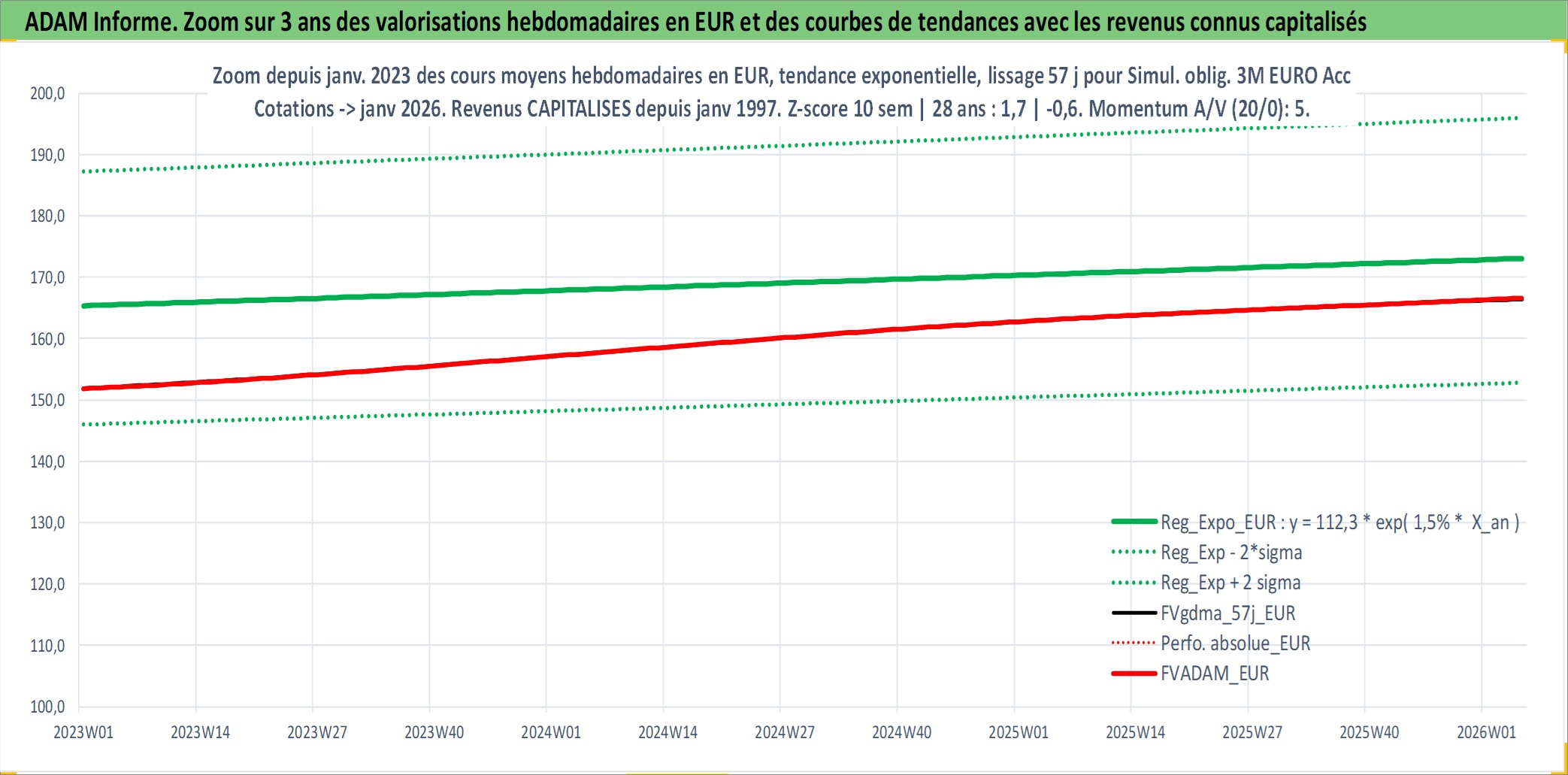 Site dédié aux investisseursPage dédiée sur site financeAnalyse des valorisations hebdomadaires de l'action Simul. oblig. 3M EURO Acc. Cet actif est cote en EUR. Les valorisations couvrent les semaines 1997W01 a 2026W05. Les revenus de cet actif financier sont pris en compte depuis la semaine 1997W01. La note ESG de cet actif n'est pas connue.