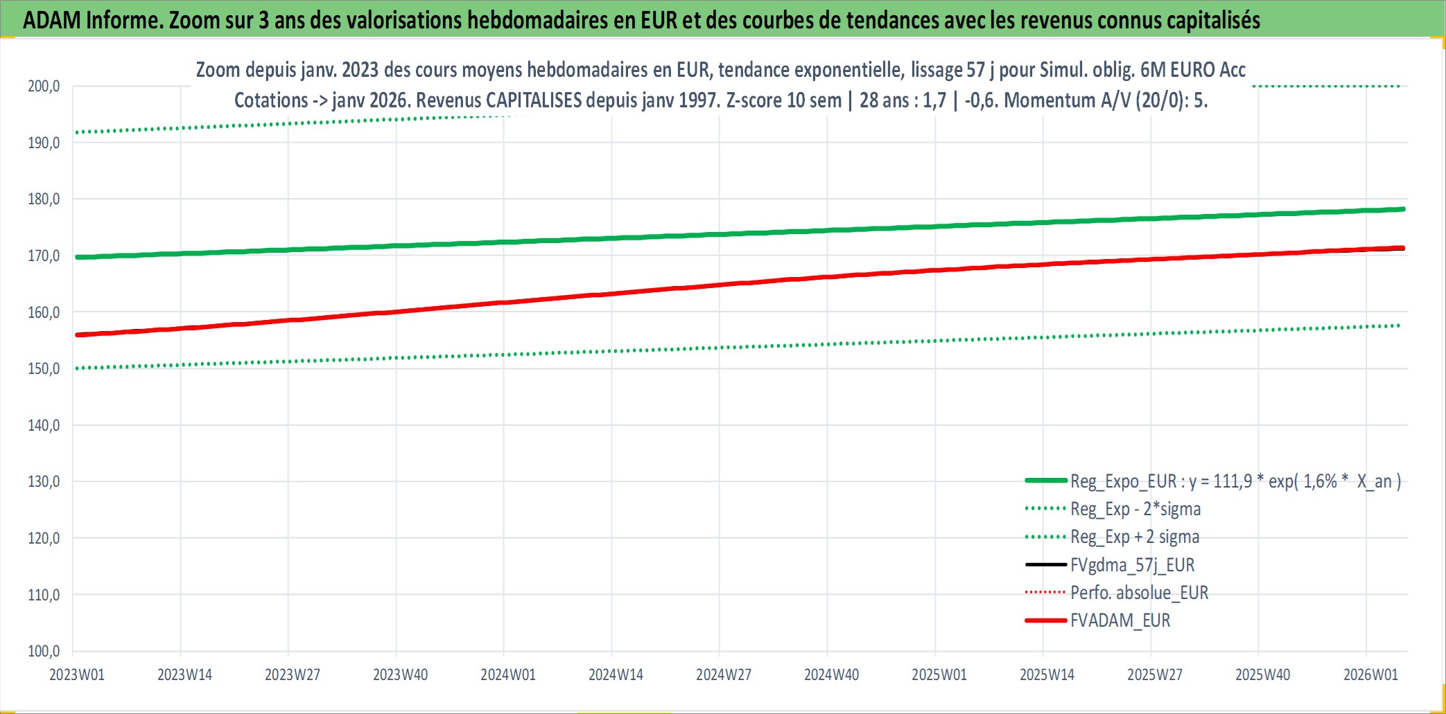 Site dédié aux investisseursPage dédiée sur site financeAnalyse des valorisations hebdomadaires de l'action Simul. oblig. 6M EURO Acc. Cet actif est cote en EUR. Les valorisations couvrent les semaines 1997W01 a 2026W05. Les revenus de cet actif financier sont pris en compte depuis la semaine 1997W01. La note ESG de cet actif n'est pas connue.