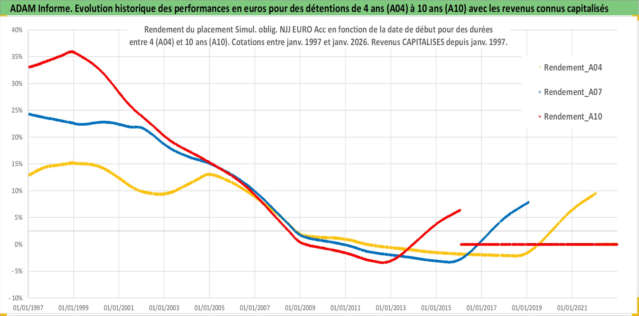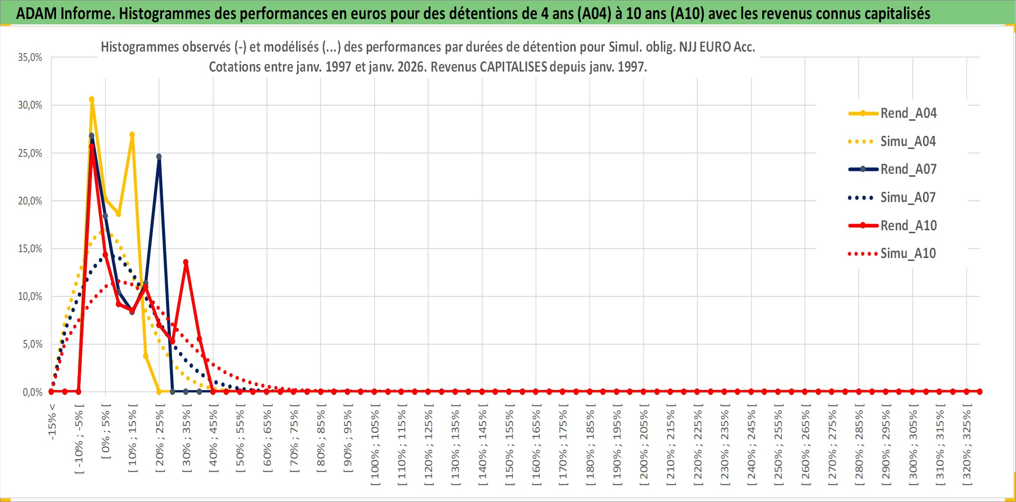 Site dédié aux investisseursPage dédiée sur site financeAnalyse des valorisations hebdomadaires de l'action Simul. oblig. NJJ EURO Acc. Cet actif est cote en EUR. Les valorisations couvrent les semaines 1997W01 a 2026W05. Les revenus de cet actif financier sont pris en compte depuis la semaine 1997W01. La note ESG de cet actif n'est pas connue.