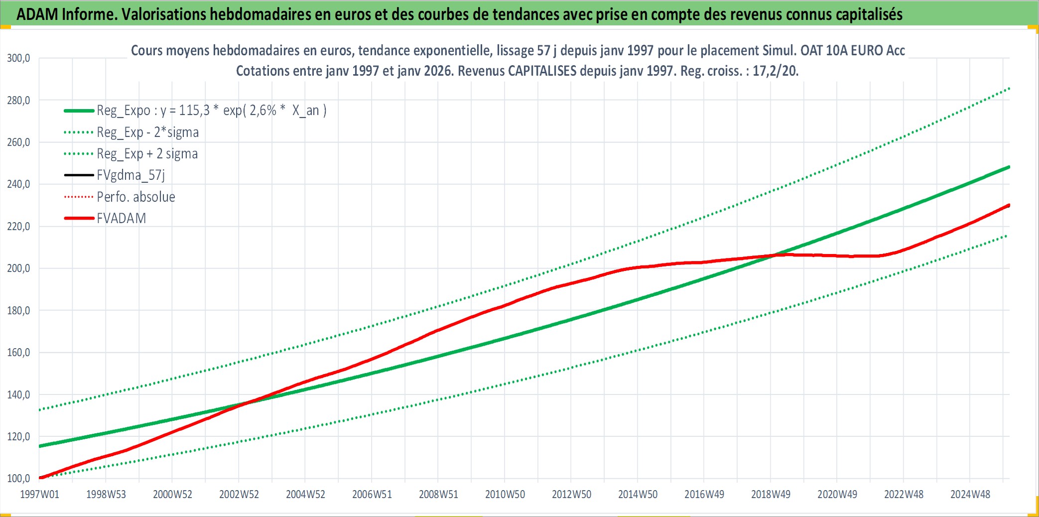 Site dédié aux investisseursPage dédiée sur site financeAnalyse des valorisations hebdomadaires de l'action Simul. OAT 10A EURO Acc. Cet actif est cote en EUR. Les valorisations couvrent les semaines 1997W01 a 2026W05. Les revenus de cet actif financier sont pris en compte depuis la semaine 1997W01. La note ESG de cet actif n'est pas connue.