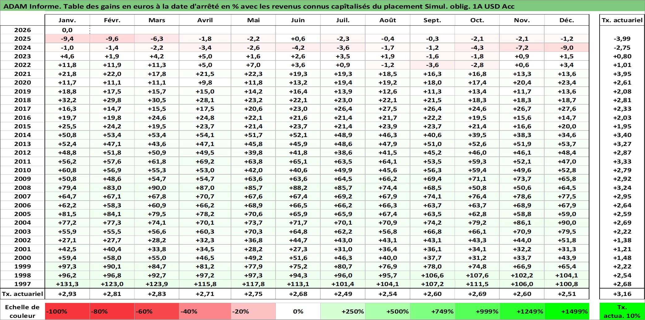 Site dédié aux investisseursPage dédiée sur site financeAnalyse des valorisations hebdomadaires de l'action Simul. oblig. 1A USD Acc. Cet actif est cote en USD. Les valorisations sont en contrevaleur EURO et couvrent les semaines 1997W01 a 2026W05. Les revenus de cet actif financier sont pris en compte depuis la semaine 1997W01. La note ESG de cet actif n'est pas connue.