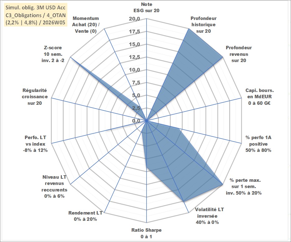 Site dédié aux investisseursPage dédiée sur site financeAnalyse des valorisations hebdomadaires de l'action Simul. oblig. 3M USD Acc. Cet actif est cote en USD. Les valorisations sont en contrevaleur EURO et couvrent les semaines 1997W01 a 2026W05. Les revenus de cet actif financier sont pris en compte depuis la semaine 1997W01. La note ESG de cet actif n'est pas connue.