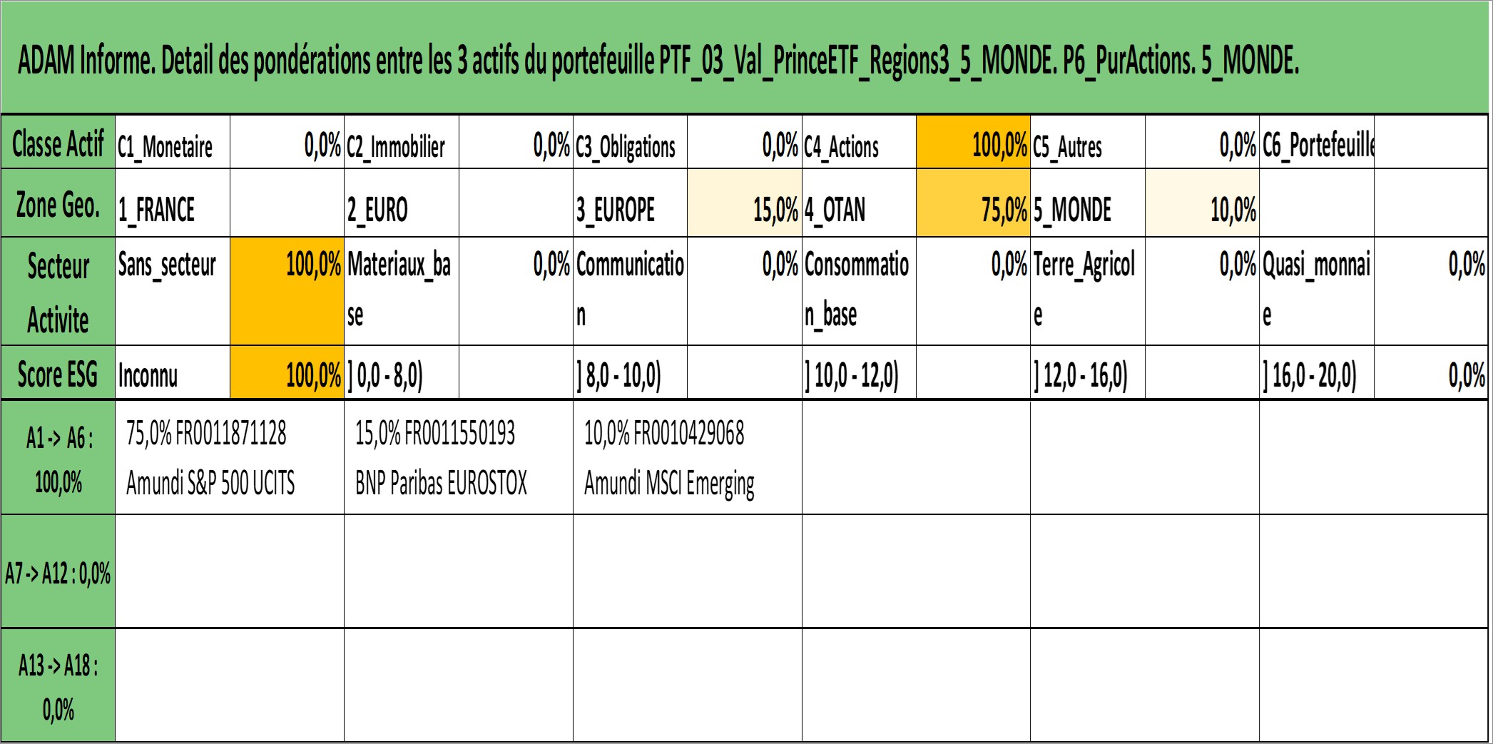 Site dédié aux investisseursPage dédiée sur site financeAnalyse des valorisations hebdomadaires du portefeuille PrinceETF_Regions3_5_MONDE_3actifs avec un profil P6_PurActions. Ce portefeuille est cote en EUR. Les valorisations couvrent les semaines 1997W01 a 2026W13. Les revenus de cet actif financier sont pris en compte depuis la semaine 1997W01. La note ESG de cet actif n'est pas connue.