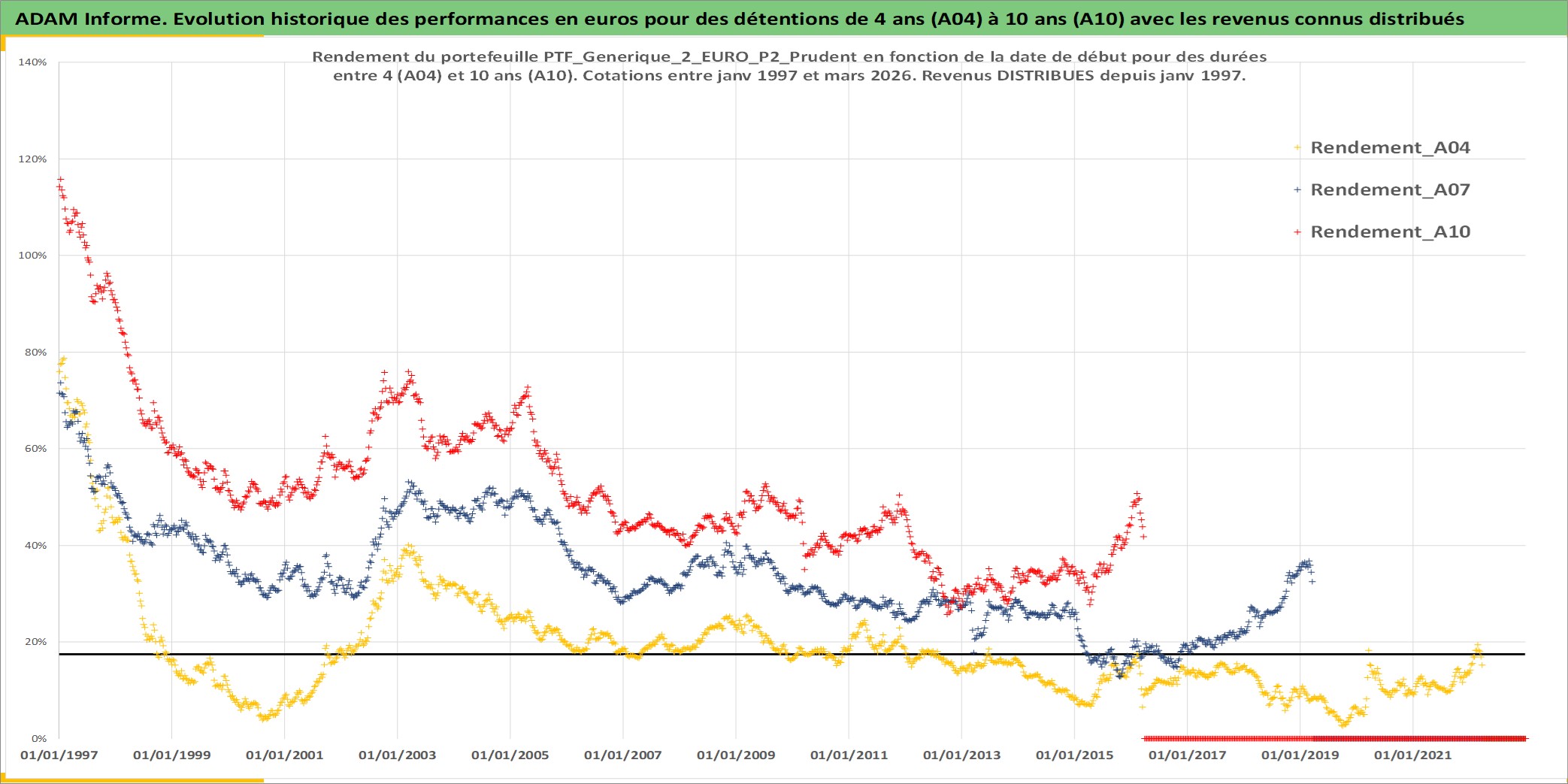 Site dédié aux investisseursPage dédiée sur site financeAnalyse des valorisations hebdomadaires du portefeuille PTF_Generique_2_EURO_P2_Prudent_8actifs avec un profil P2_Prudent. Ce portefeuille est cote en EUR. Les valorisations couvrent les semaines 1997W01 a 2026W13. Les revenus de cet actif financier sont pris en compte depuis la semaine 1997W01. La note ESG de cet actif n'est pas connue.