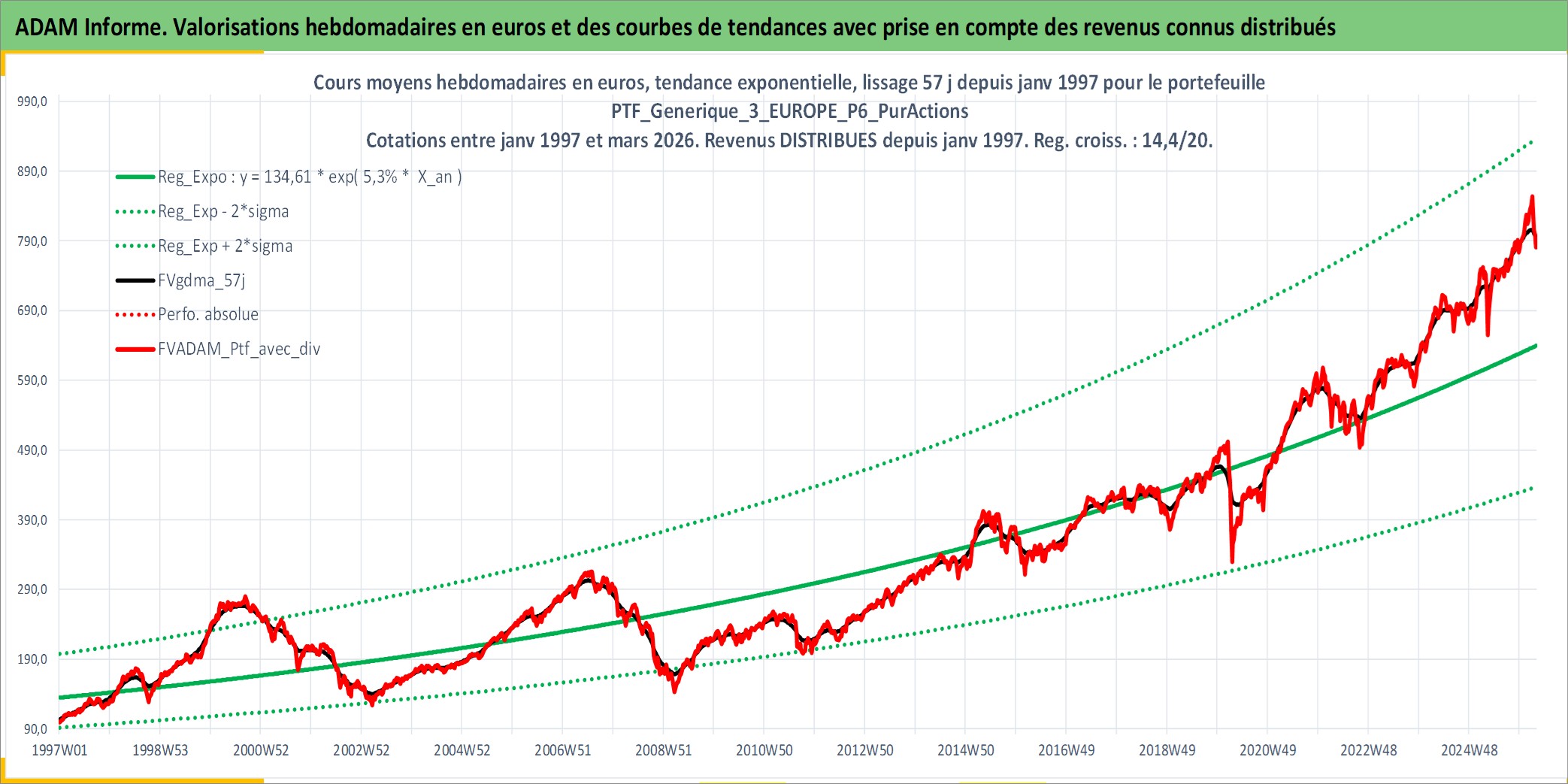 Site dédié aux investisseursPage dédiée sur site financeAnalyse des valorisations hebdomadaires du portefeuille PTF_Generique_3_EUROPE_P6_PurActions_3actifs avec un profil P6_PurActions. Ce portefeuille est cote en EUR. Les valorisations couvrent les semaines 1997W01 a 2026W13. Les revenus de cet actif financier sont pris en compte depuis la semaine 1997W01. La note ESG de cet actif n'est pas connue.