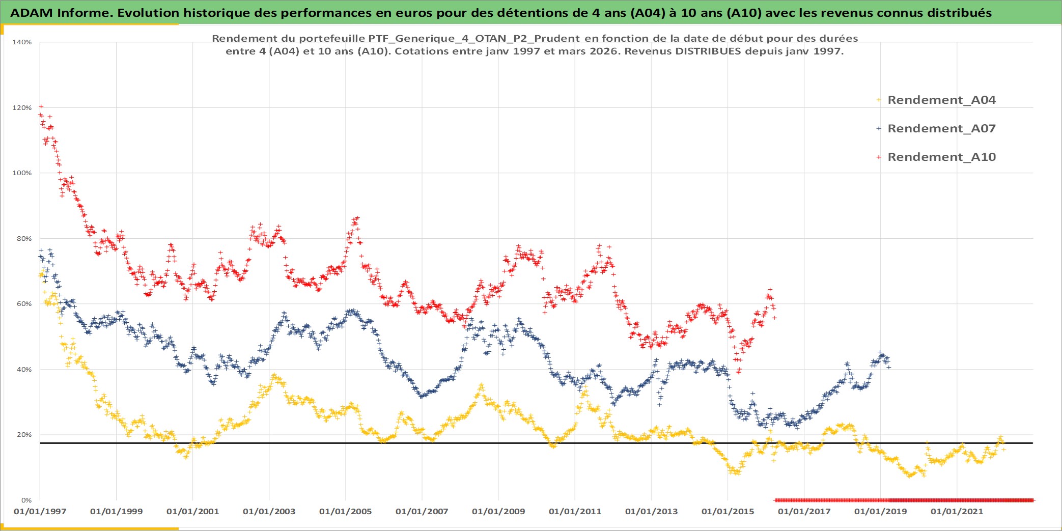 Site dédié aux investisseursPage dédiée sur site financeAnalyse des valorisations hebdomadaires du portefeuille PTF_Generique_4_OTAN_P2_Prudent_12actifs avec un profil P2_Prudent. Ce portefeuille est cote en EUR. Les valorisations couvrent les semaines 1997W01 a 2026W13. Les revenus de cet actif financier sont pris en compte depuis la semaine 1997W01. La note ESG de cet actif n'est pas connue.
