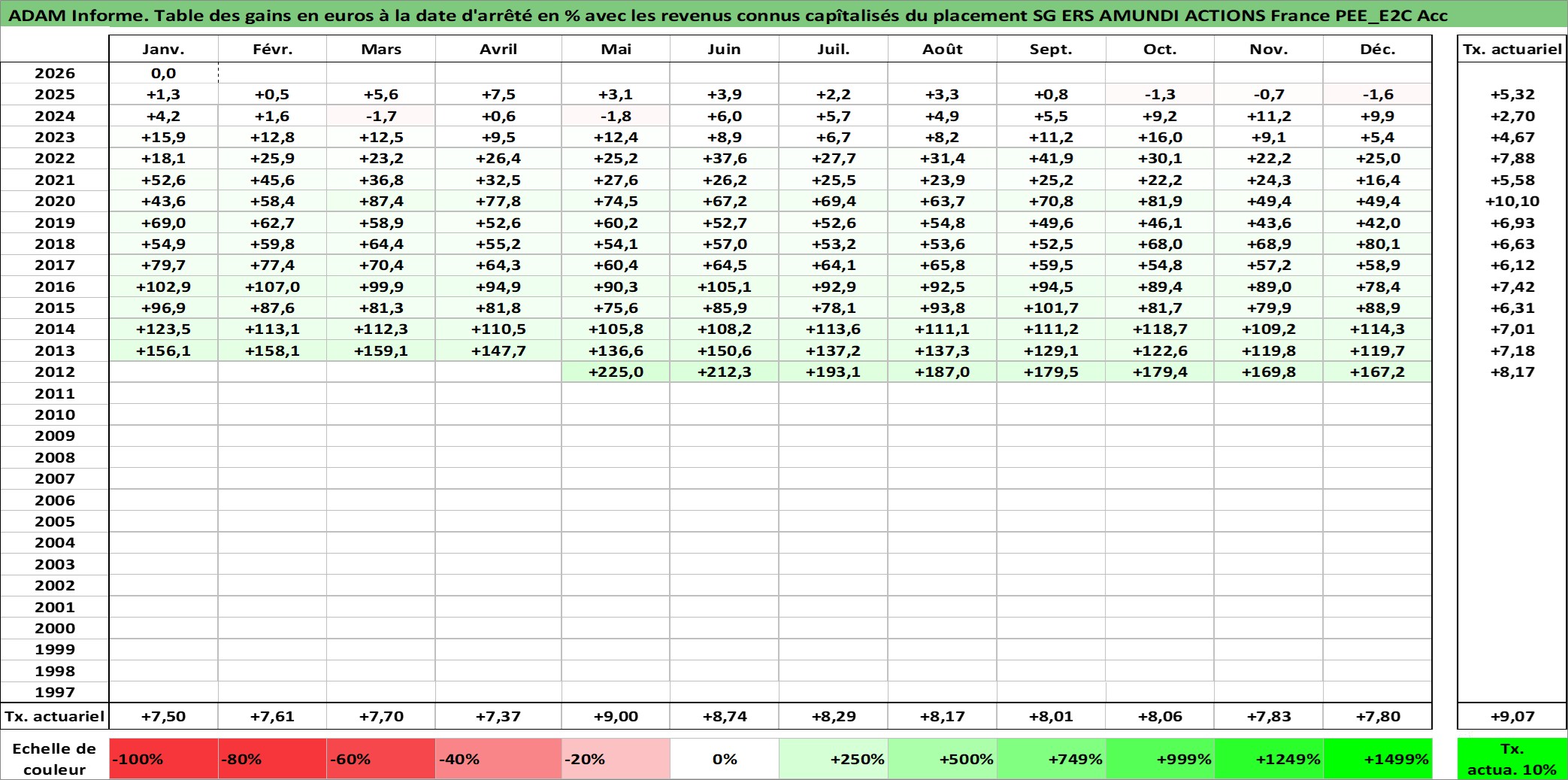 Dernière perfo 1 an en %