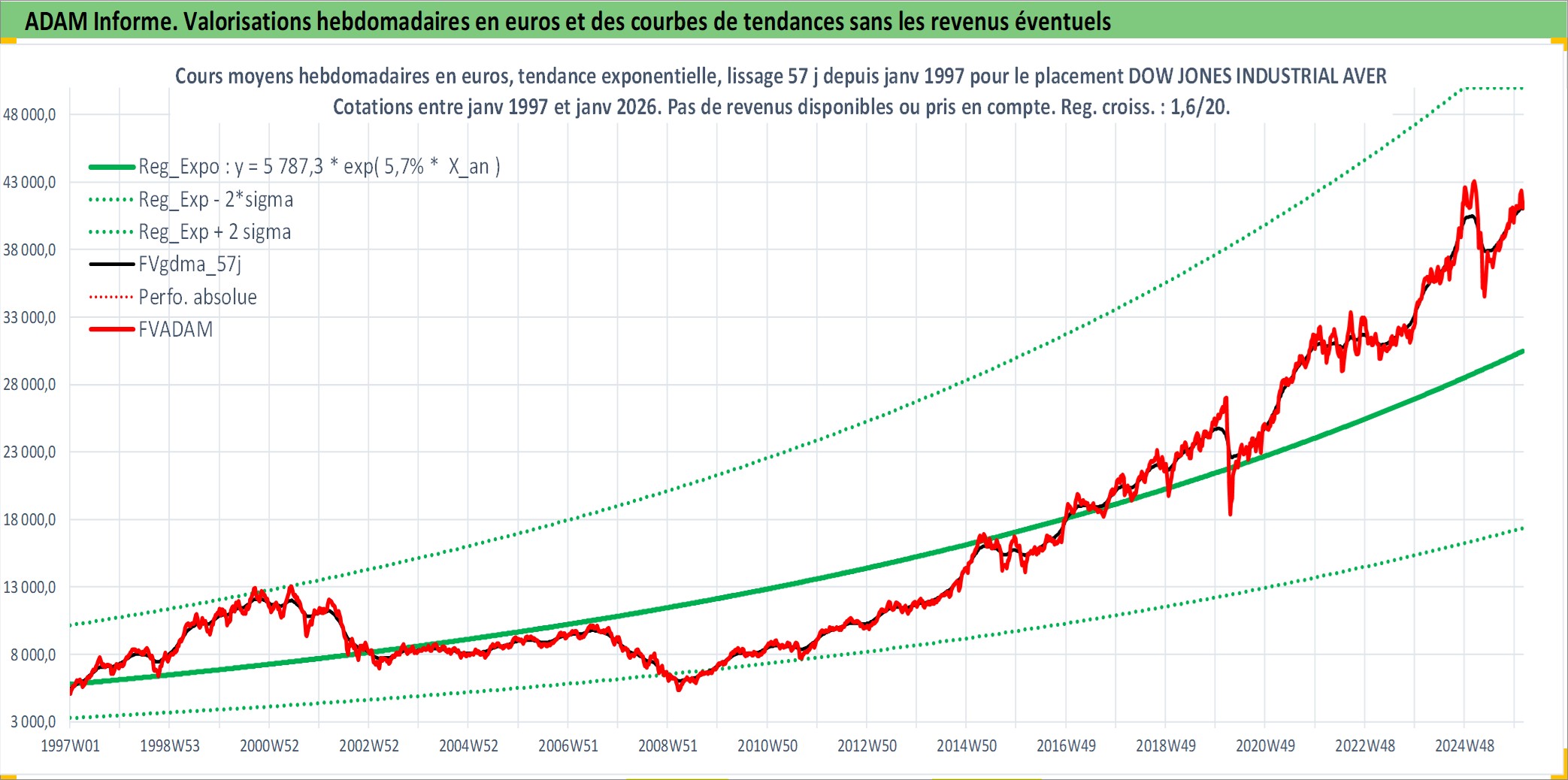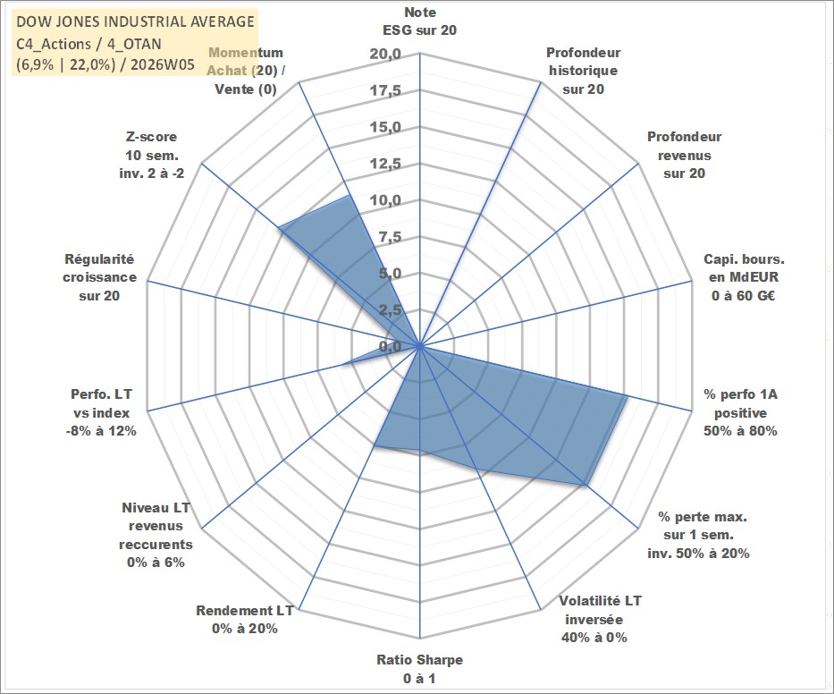 Site dédié aux investisseursPage dédiée sur site financeAnalyse des valorisations hebdomadaires de l'actif DOW JONES INDUSTRIAL AVERAGE. Cet actif est cote en USD. Les valorisations sont en contrevaleur EURO et couvrent les semaines 1997W01 a 2026W05. Les revenus de cet actif financier ne sont pas connus car non existants ou non disponibles sur le site Yahoo Finance. La note ESG de cet actif n'est pas connue.