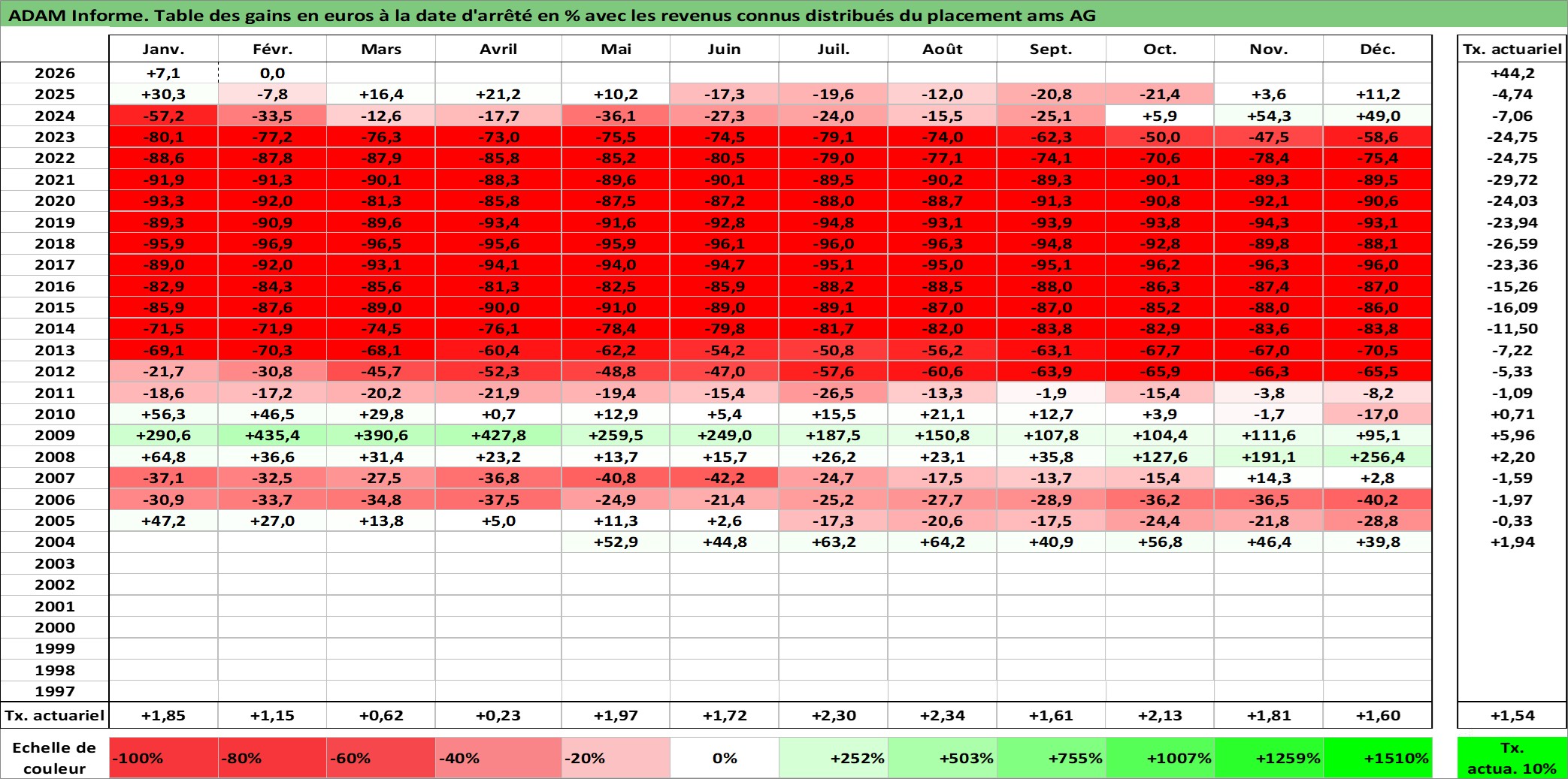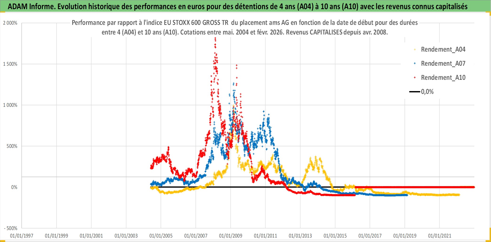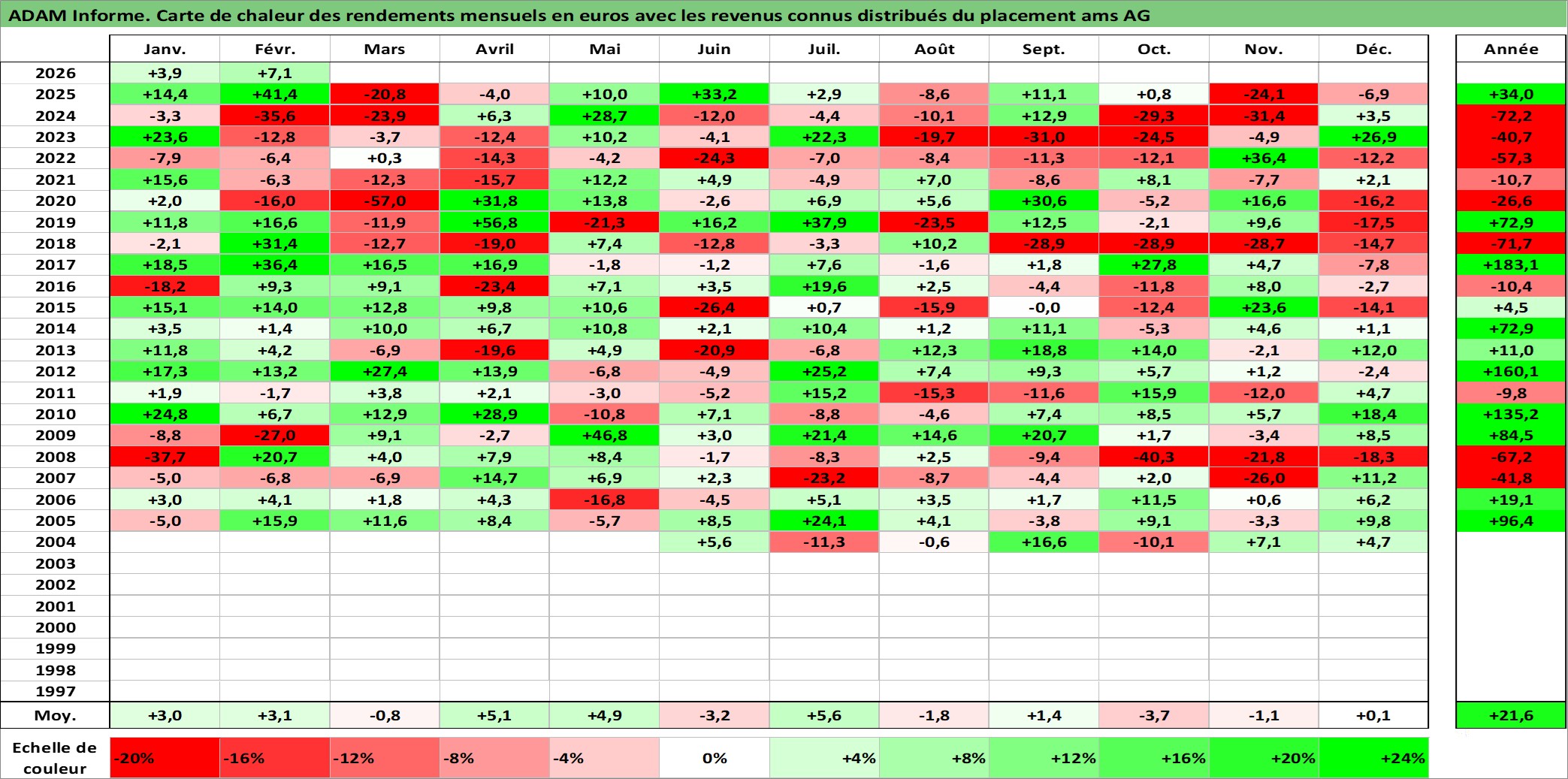 Site dédié aux investisseursPage dédiée sur site financeAnalyse des valorisations hebdomadaires de l'action ams AG. Cet actif est cote en CHF. Les valorisations sont en contrevaleur EURO et couvrent les semaines 2004W21 a 2026W09. Les revenus de cet actif financier sont pris en compte depuis la semaine 2008W14. La note ESG de cet actif n'est pas connue.