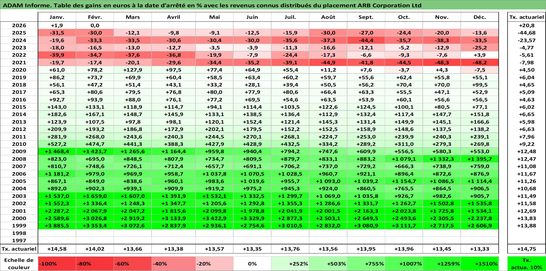 Dernière perfo 10 ans en %