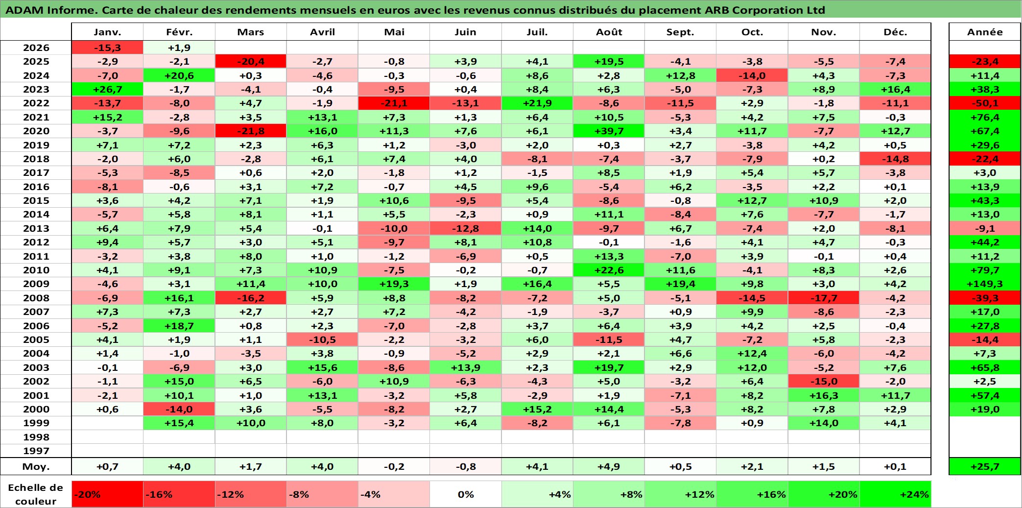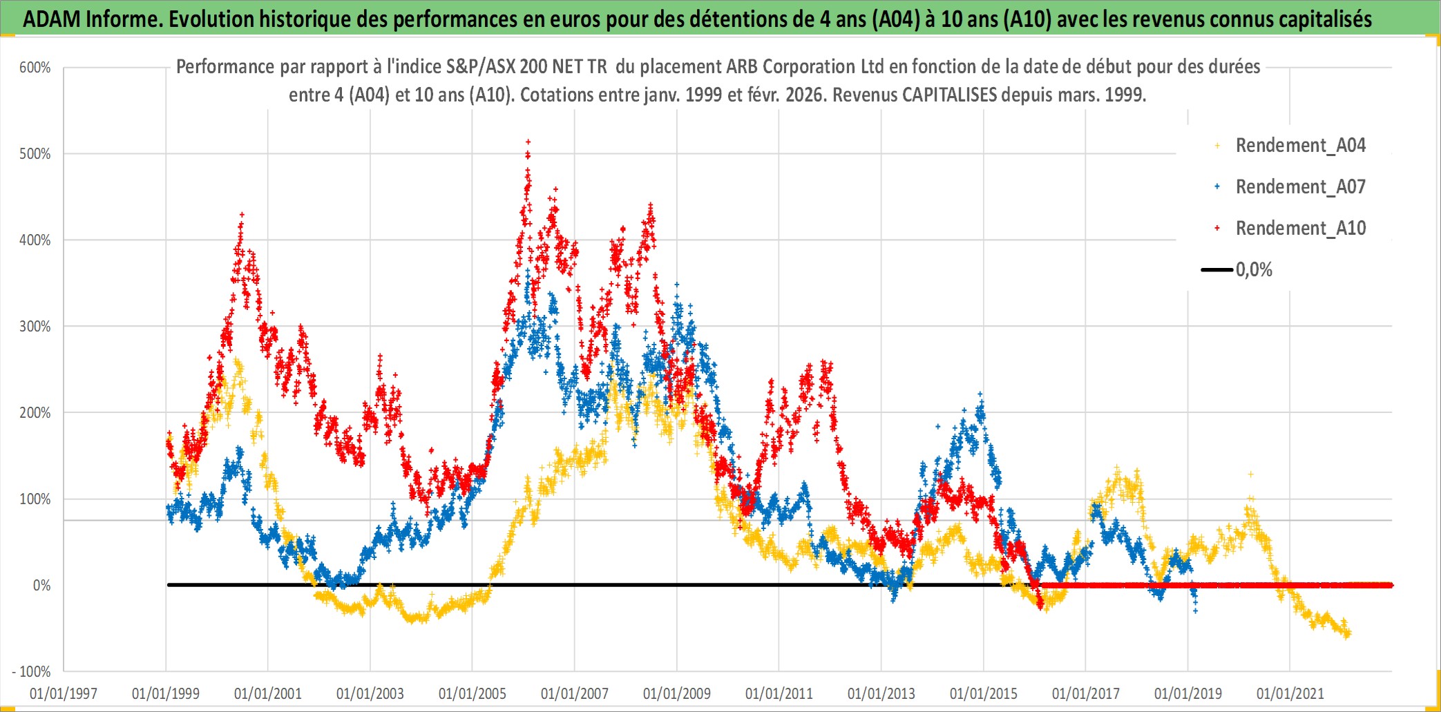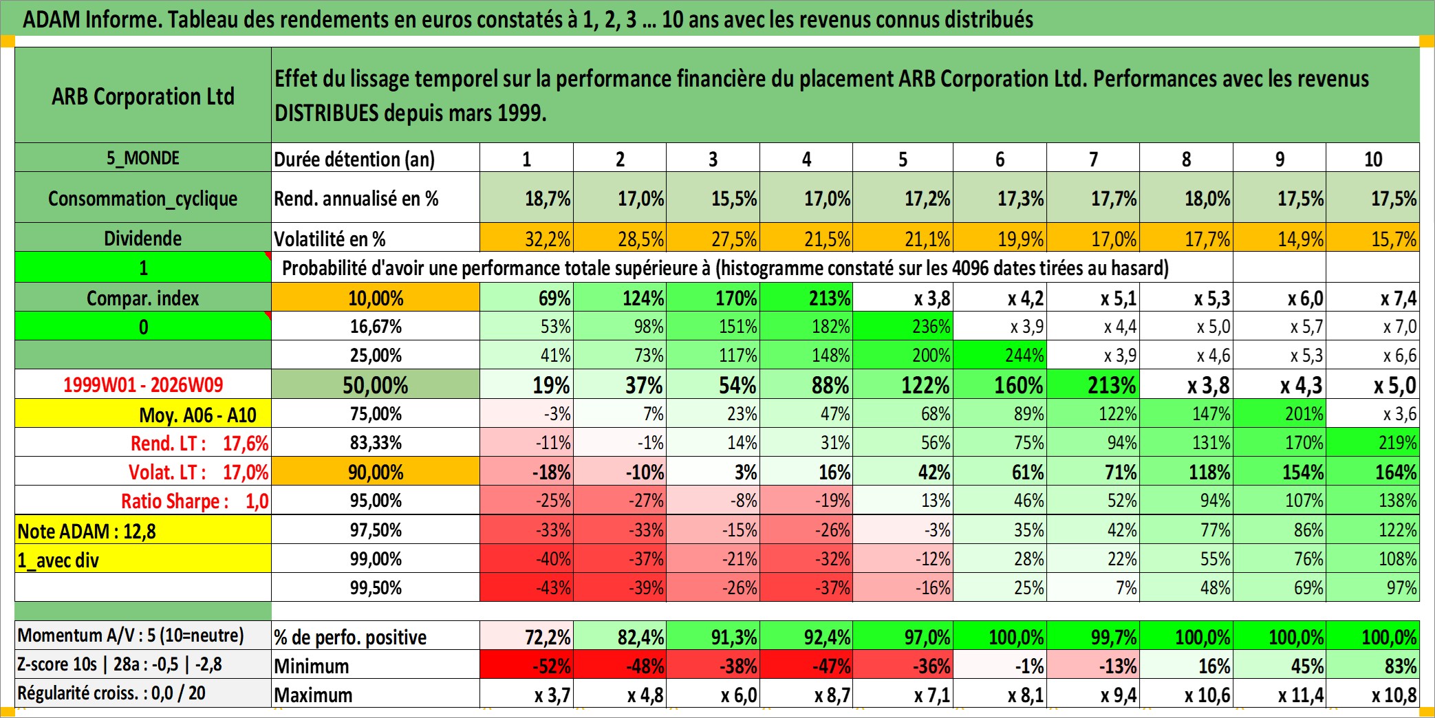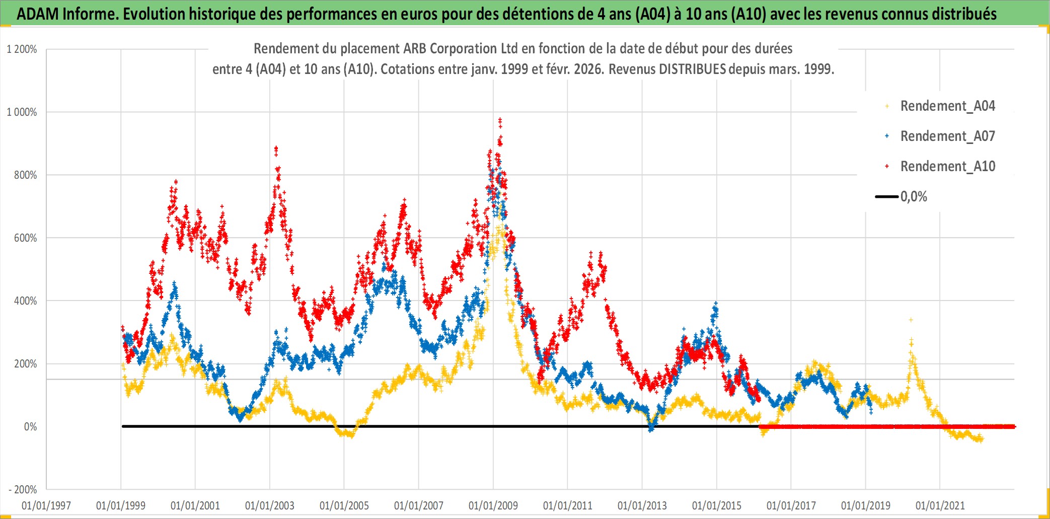 Site dédié aux investisseursPage dédiée sur site financeAnalyse des valorisations hebdomadaires de l'action ARB Corporation Ltd. Cet actif est cote en AUD. Les valorisations sont en contrevaleur EURO et couvrent les semaines 1999W01 a 2026W09. Les revenus de cet actif financier sont pris en compte depuis la semaine 1999W13. La note ESG de cet actif n'est pas connue.