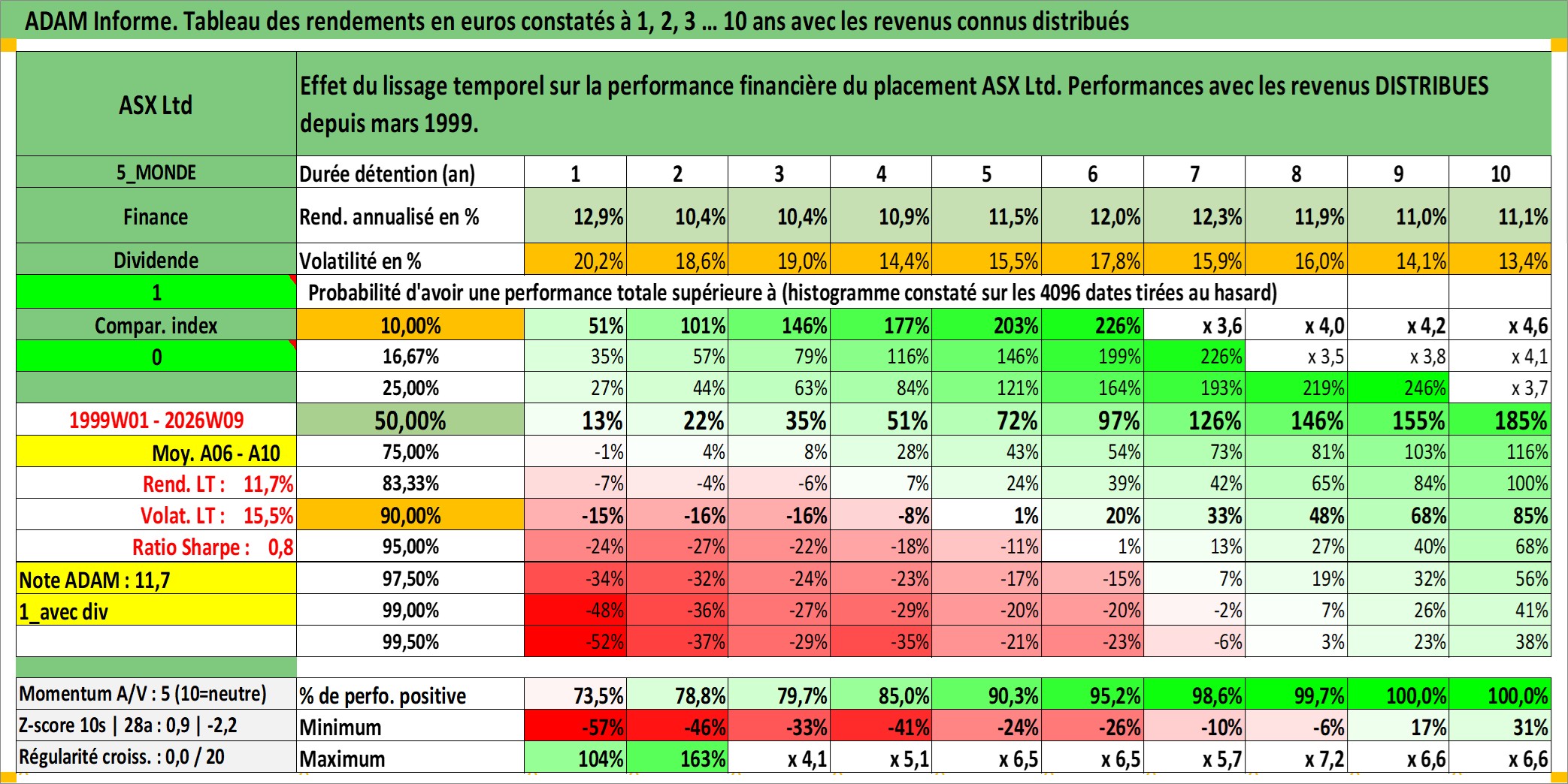 Dernière perfo 10 ans en %