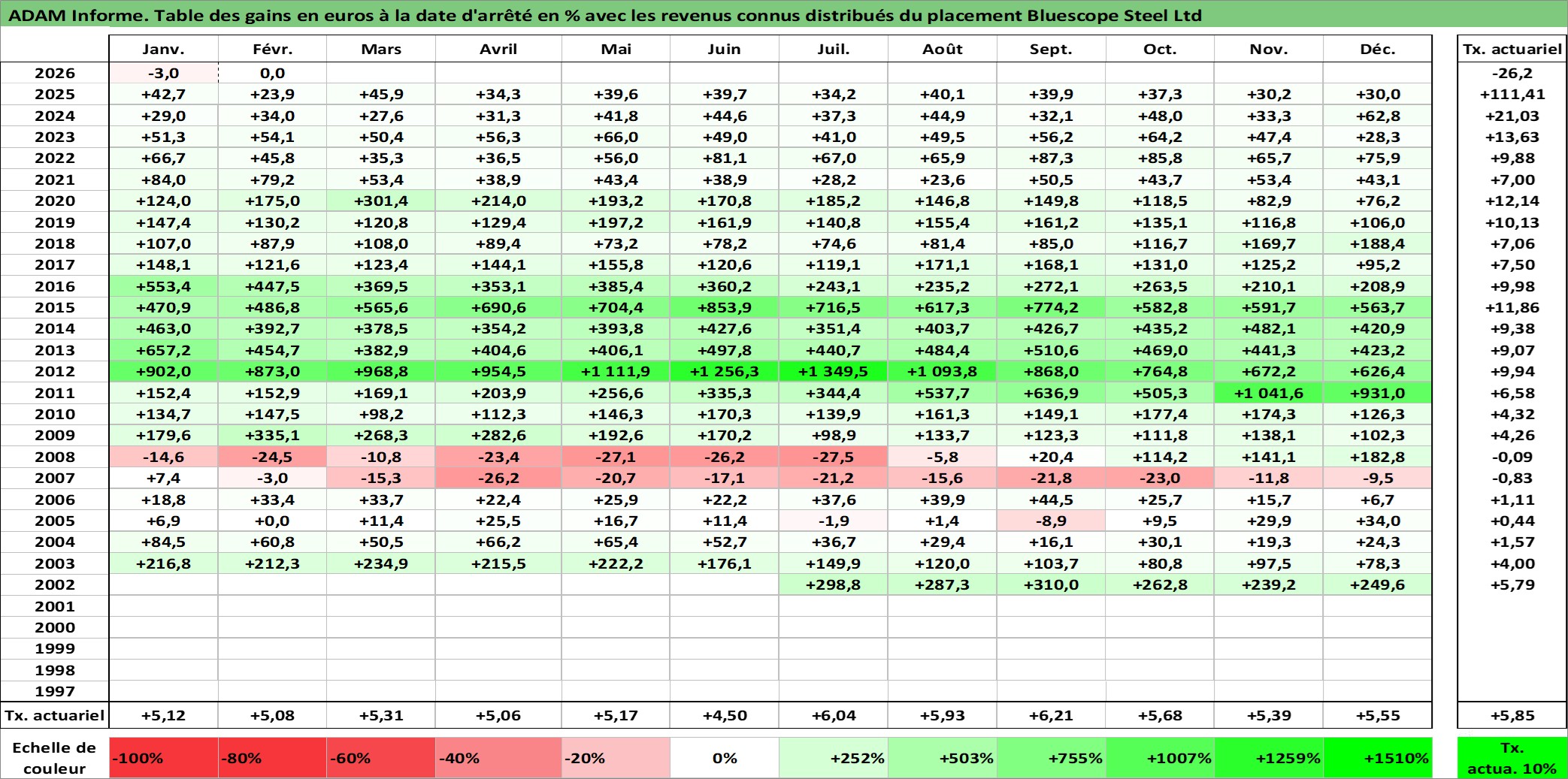 Dernière perfo 10 ans en %