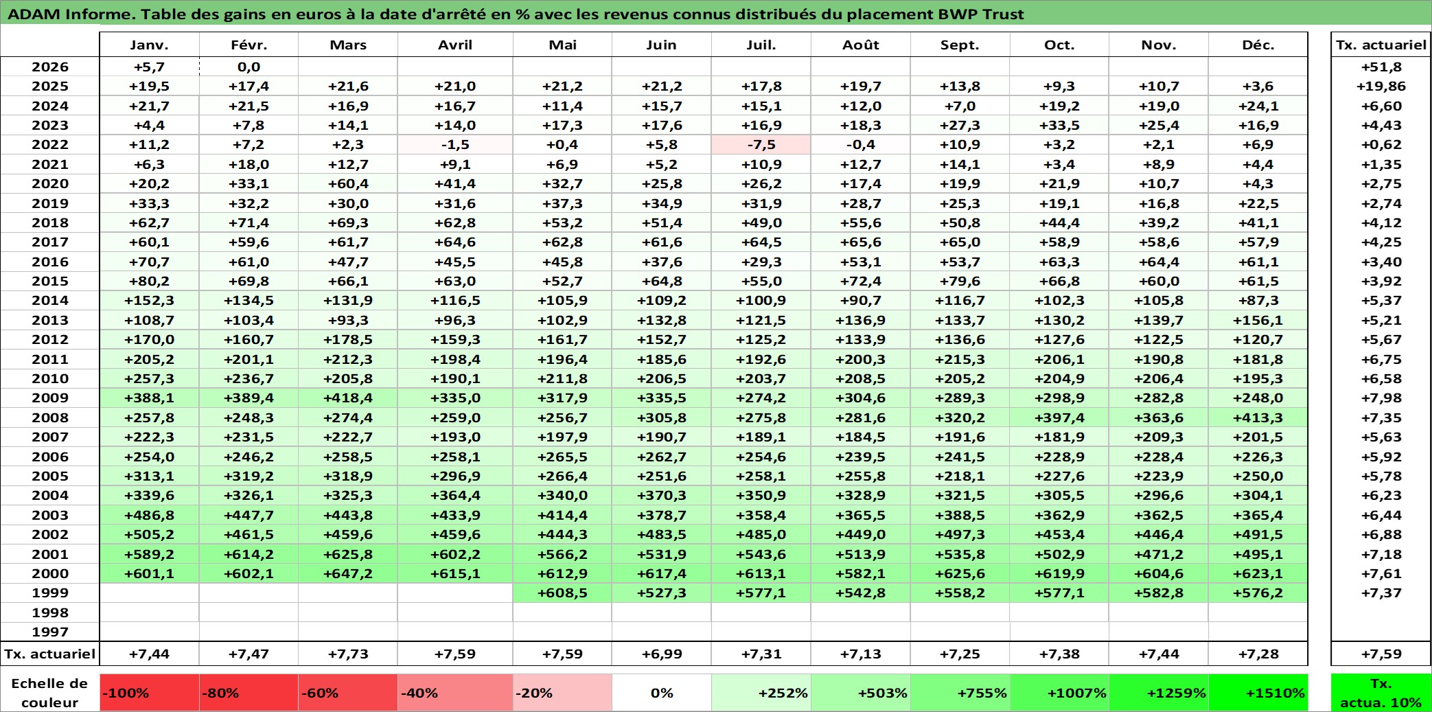Rendement LT %