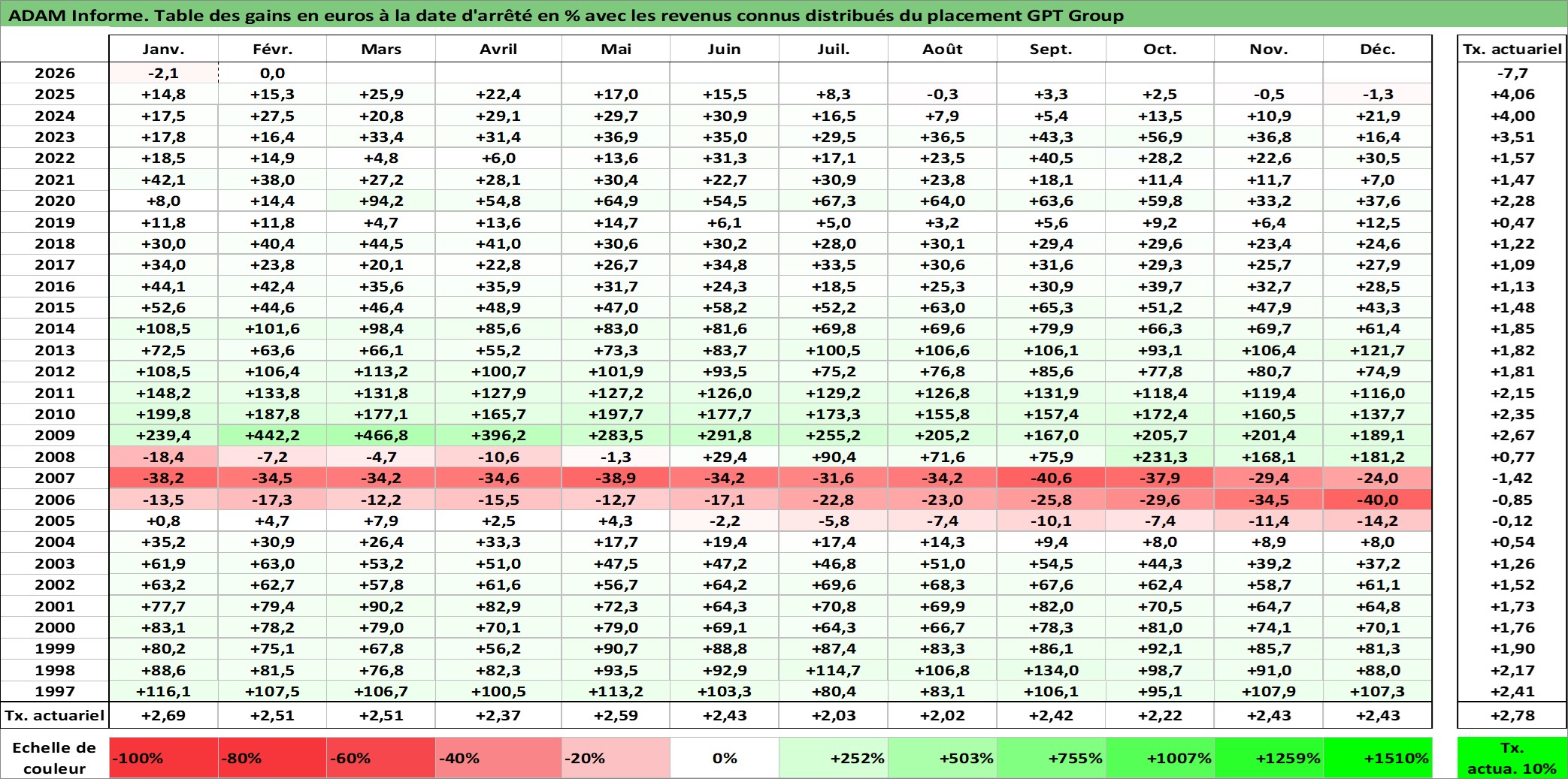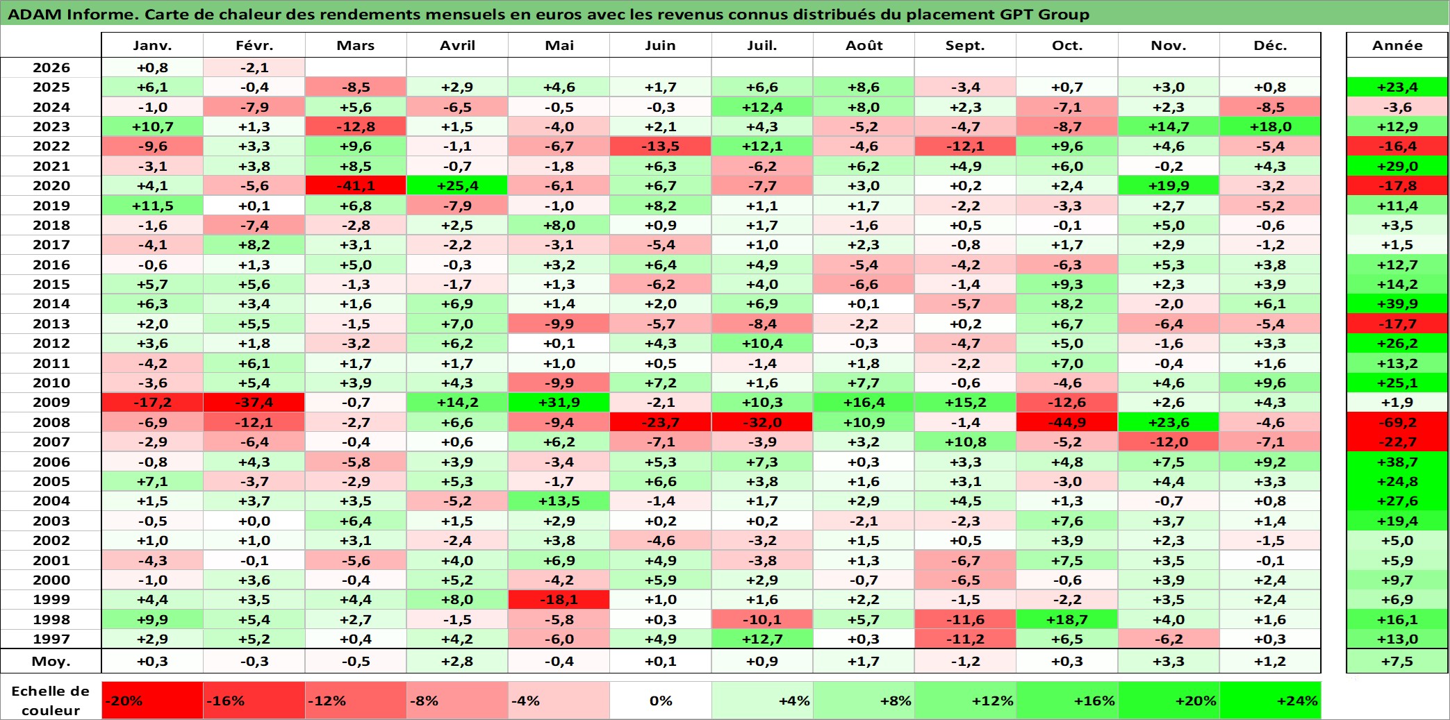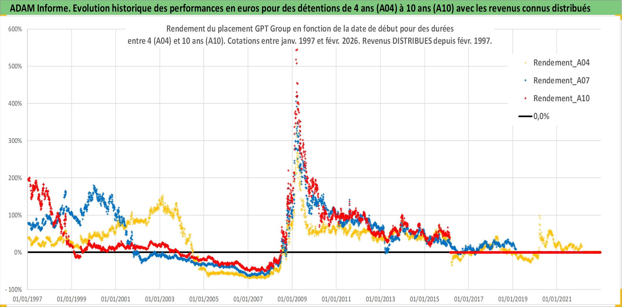 Site dédié aux investisseursPage dédiée sur site financeAnalyse des valorisations hebdomadaires de l'action GPT Group. Cet actif est cote en AUD. Les valorisations sont en contrevaleur EURO et couvrent les semaines 1997W01 a 2026W09. Les revenus de cet actif financier sont pris en compte depuis la semaine 1997W06. La note globale ESG de cet actif est estimee a 17.0 (apres rebasage entre 0 et 20).