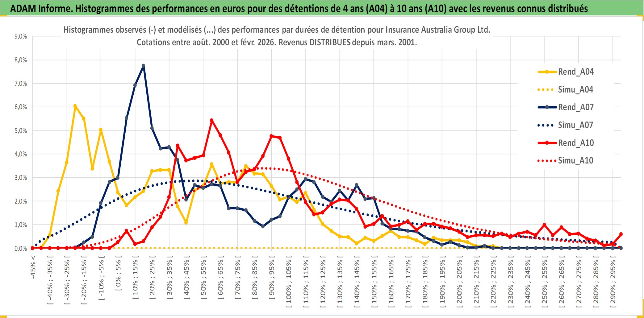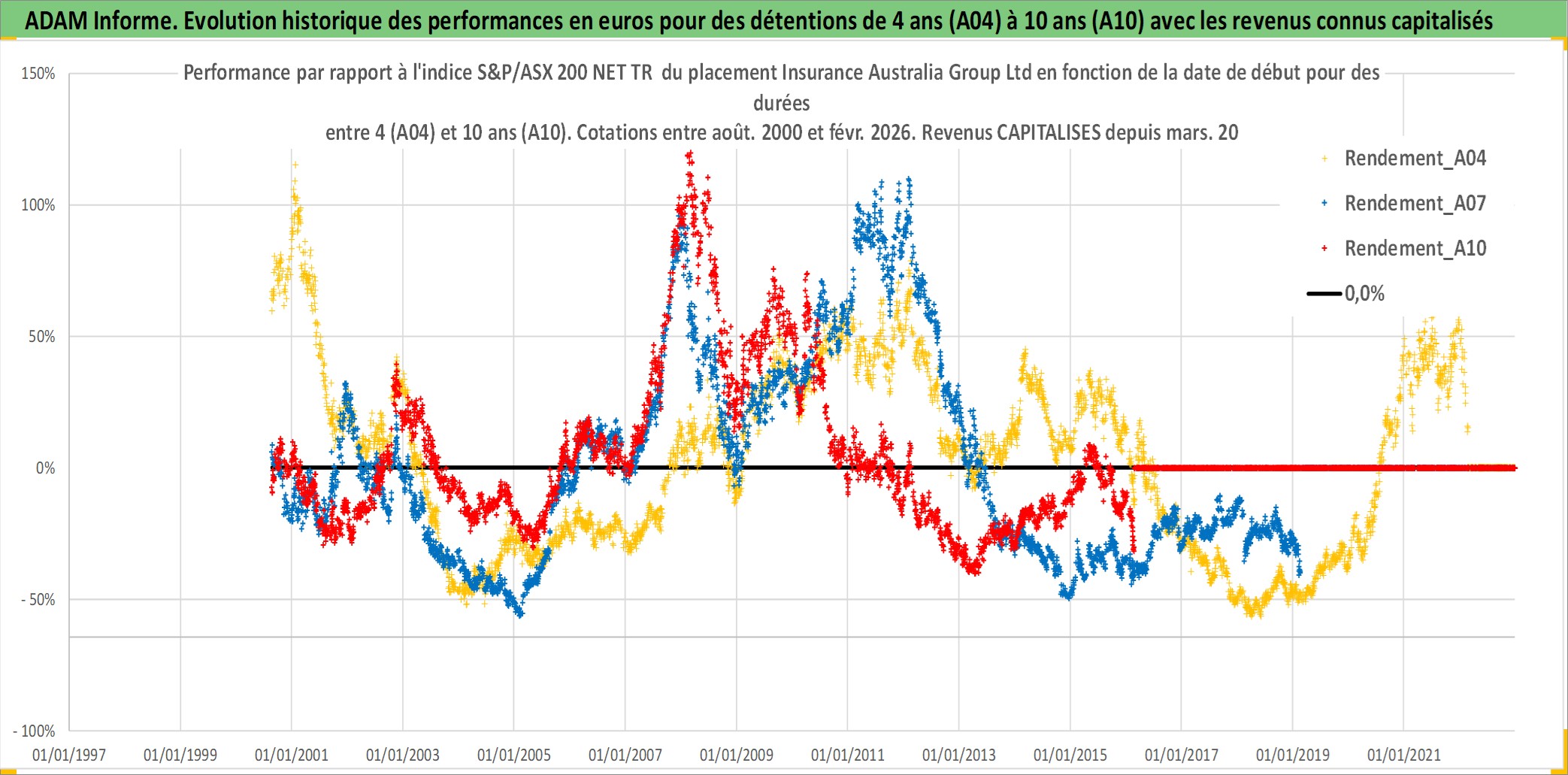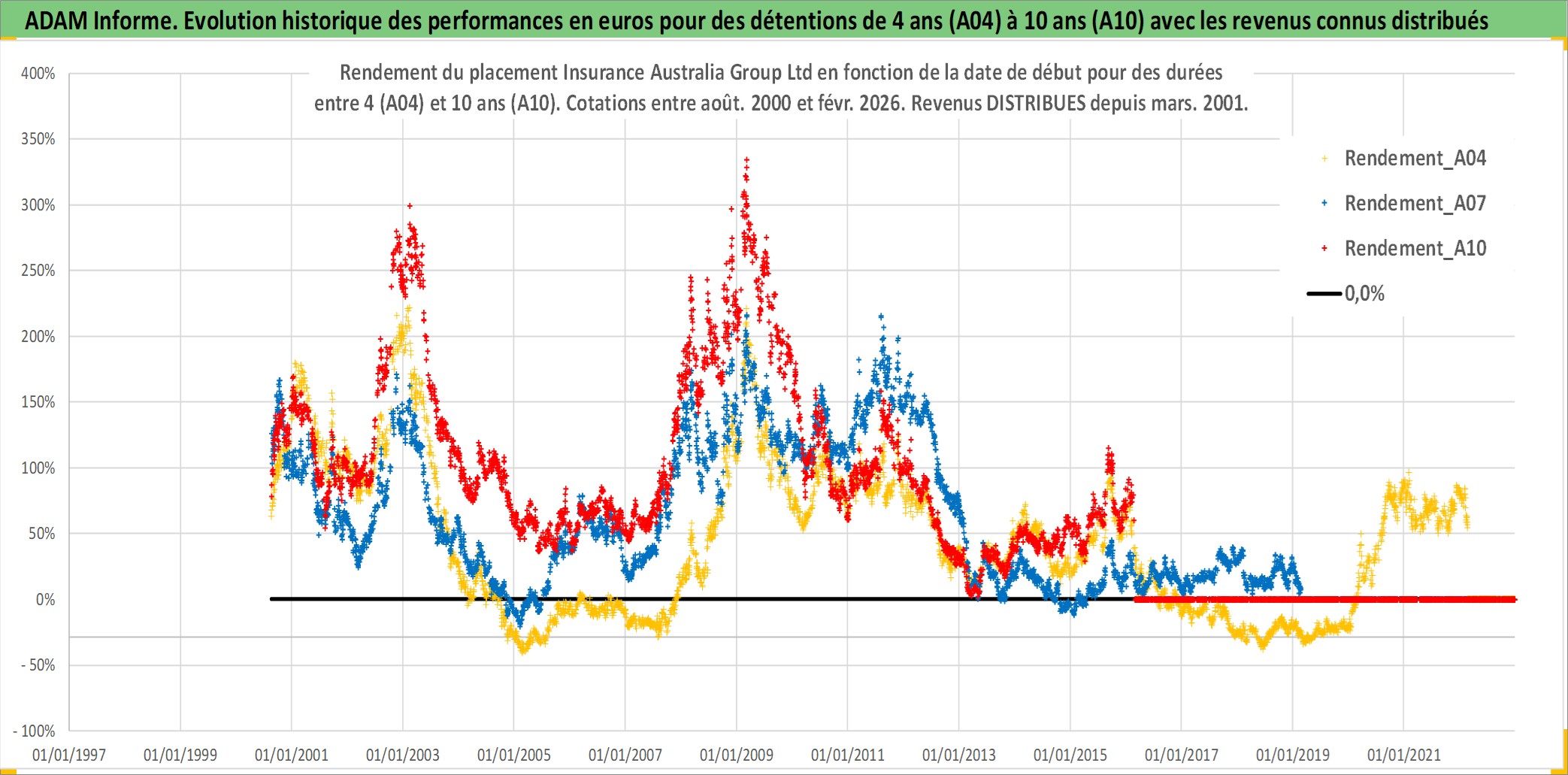 Site dédié aux investisseursPage dédiée sur site financeAnalyse des valorisations hebdomadaires de l'action Insurance Australia Group Ltd. Cet actif est cote en AUD. Les valorisations sont en contrevaleur EURO et couvrent les semaines 2000W32 a 2026W09. Les revenus de cet actif financier sont pris en compte depuis la semaine 2001W12. La note globale ESG de cet actif est estimee a 10.0 (apres rebasage entre 0 et 20).