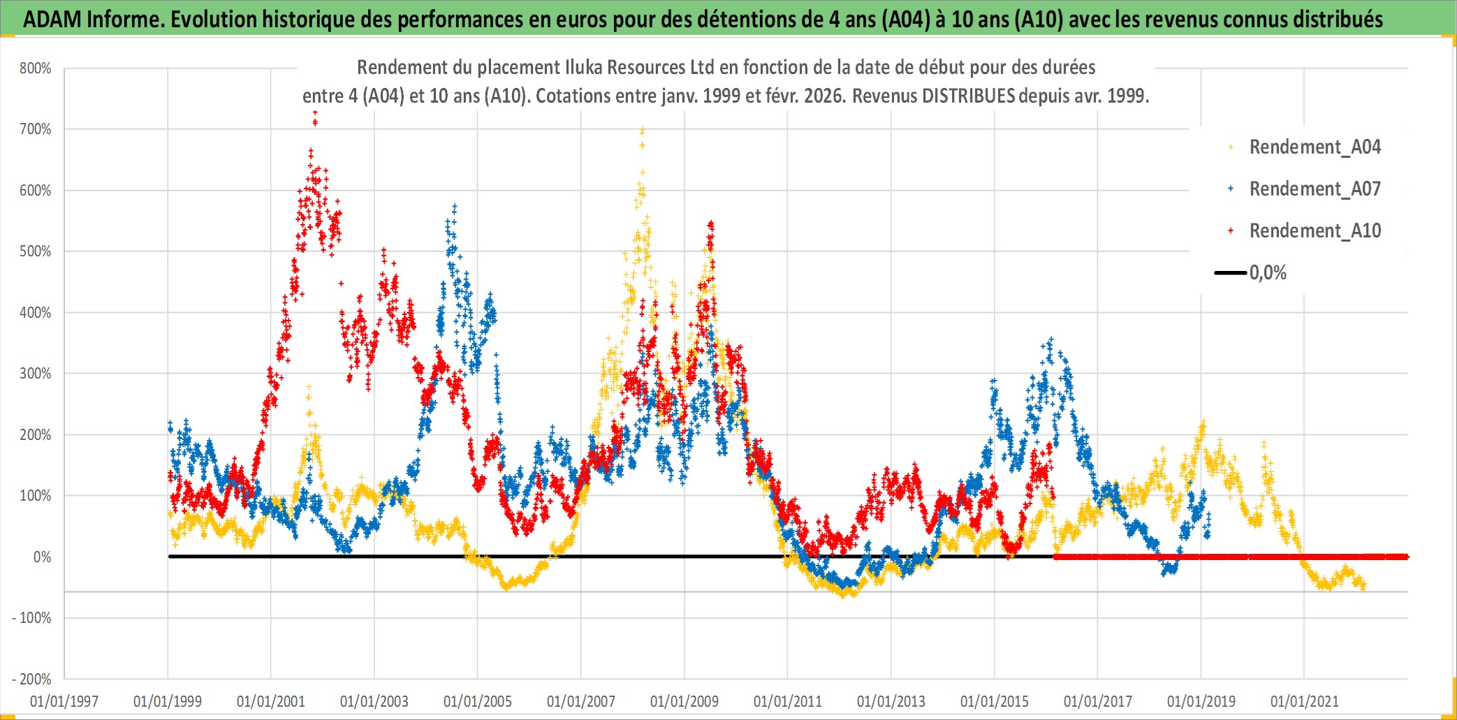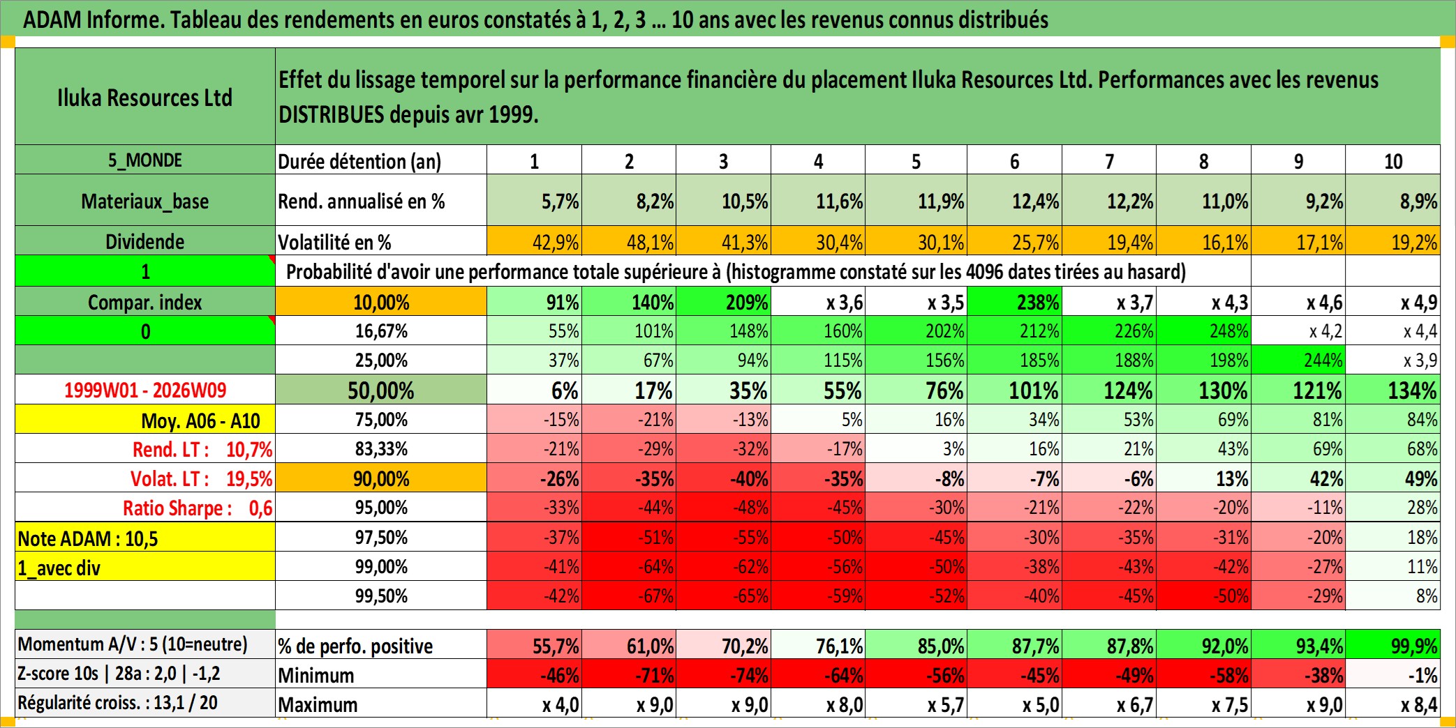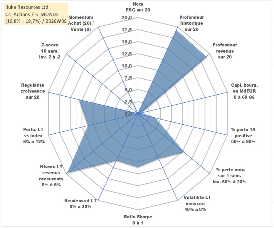 Site dédié aux investisseursPage dédiée sur site financeAnalyse des valorisations hebdomadaires de l'action Iluka Resources Ltd. Cet actif est cote en AUD. Les valorisations sont en contrevaleur EURO et couvrent les semaines 1999W01 a 2026W09. Les revenus de cet actif financier sont pris en compte depuis la semaine 1999W17. La note ESG de cet actif n'est pas connue.