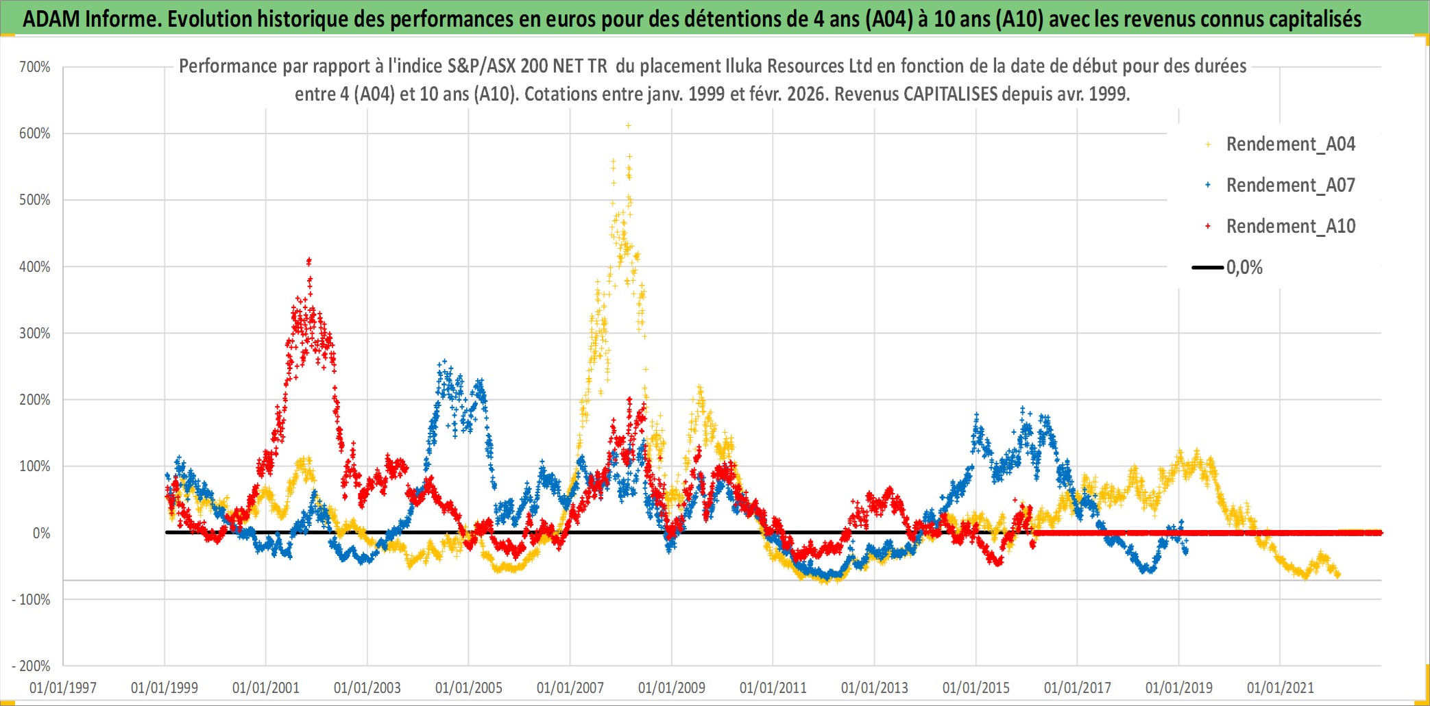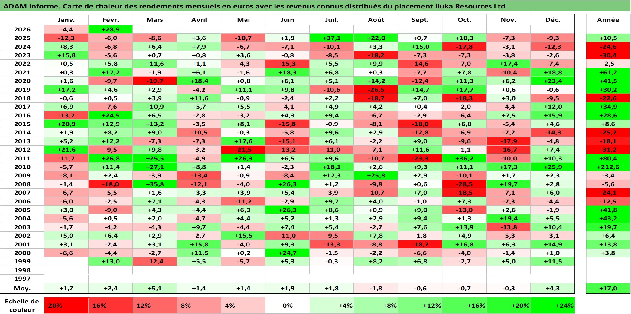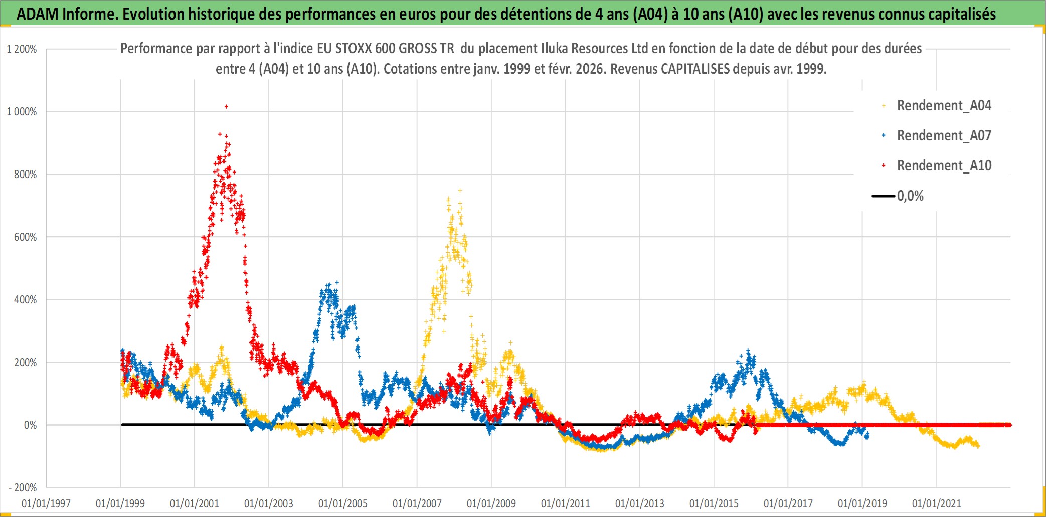Site dédié aux investisseursPage dédiée sur site financeAnalyse des valorisations hebdomadaires de l'action Iluka Resources Ltd. Cet actif est cote en AUD. Les valorisations sont en contrevaleur EURO et couvrent les semaines 1999W01 a 2026W09. Les revenus de cet actif financier sont pris en compte depuis la semaine 1999W17. La note ESG de cet actif n'est pas connue.