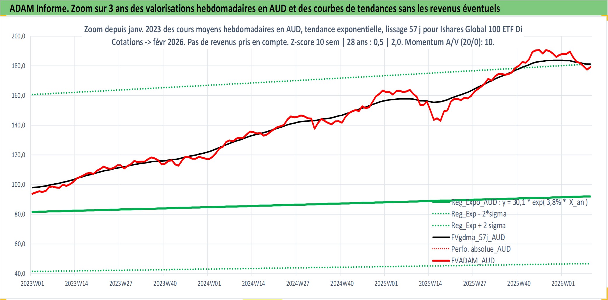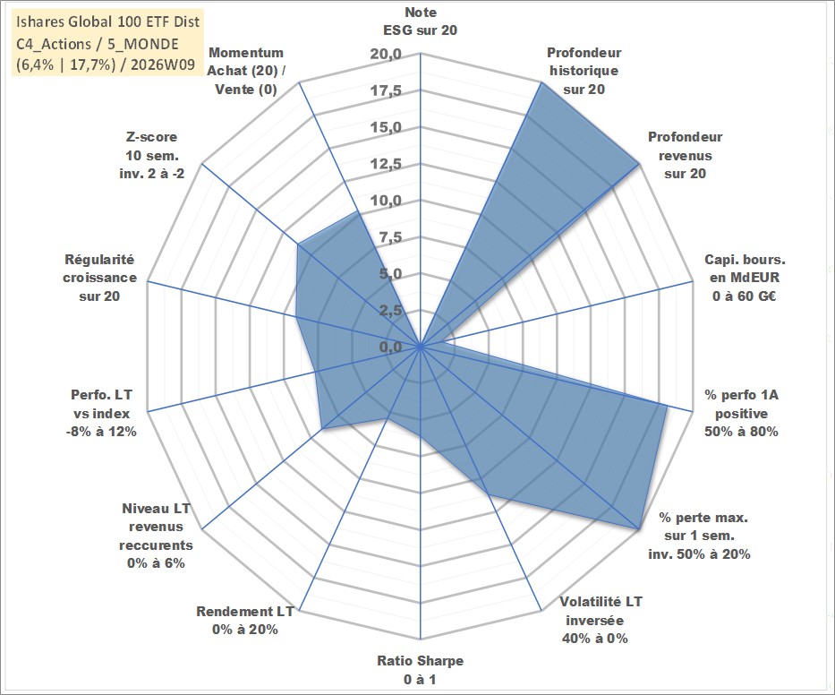 Site dédié aux investisseursPage dédiée sur site financeAnalyse des valorisations hebdomadaires du fonds Ishares Global 100 ETF Dist. Cet actif est cote en AUD. Les valorisations sont en contrevaleur EURO et couvrent les semaines 1997W01 a 2026W09. Les revenus de cet actif financier sont pris en compte depuis la semaine 1997W25. La note ESG de cet actif n'est pas connue.