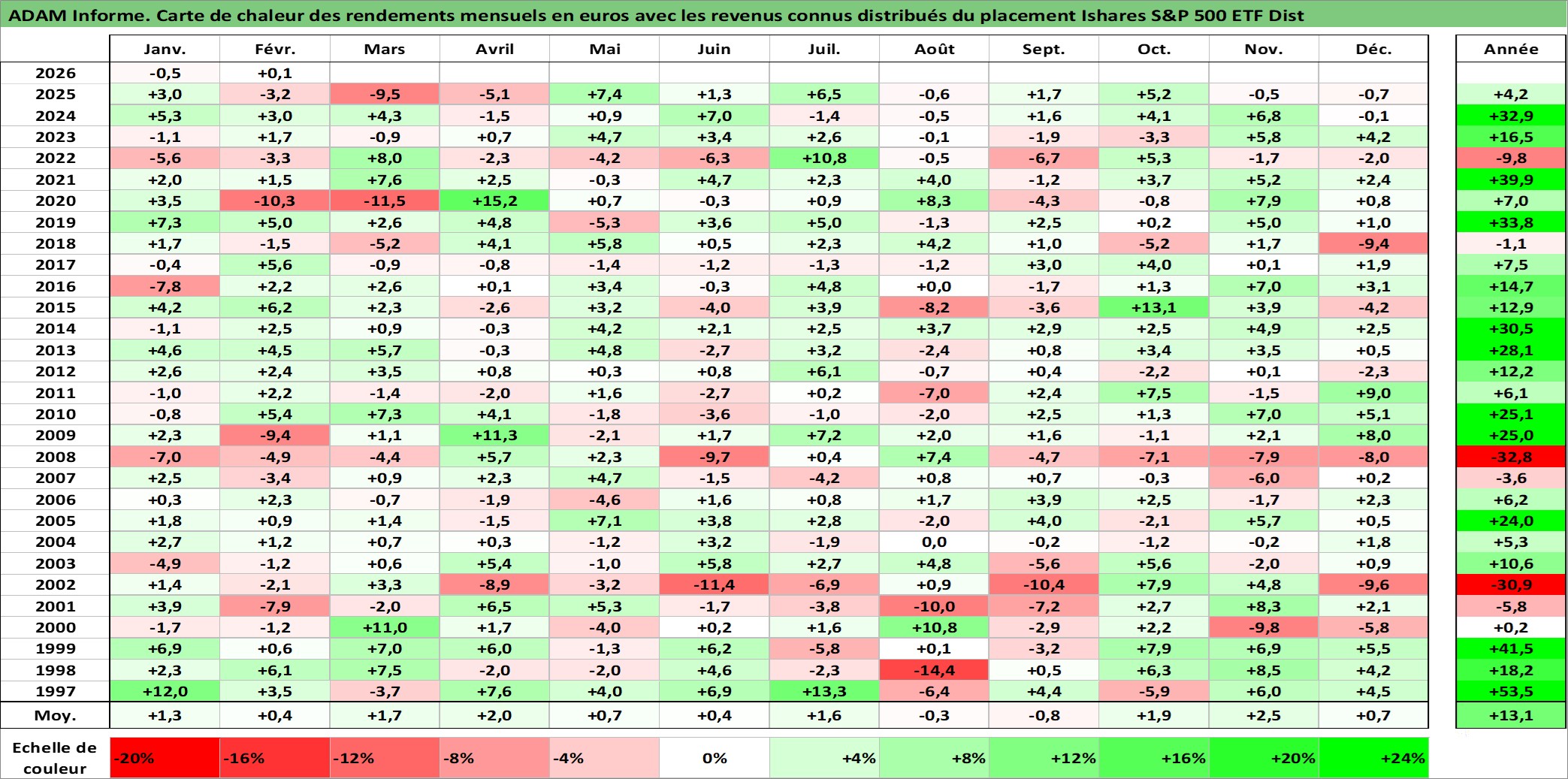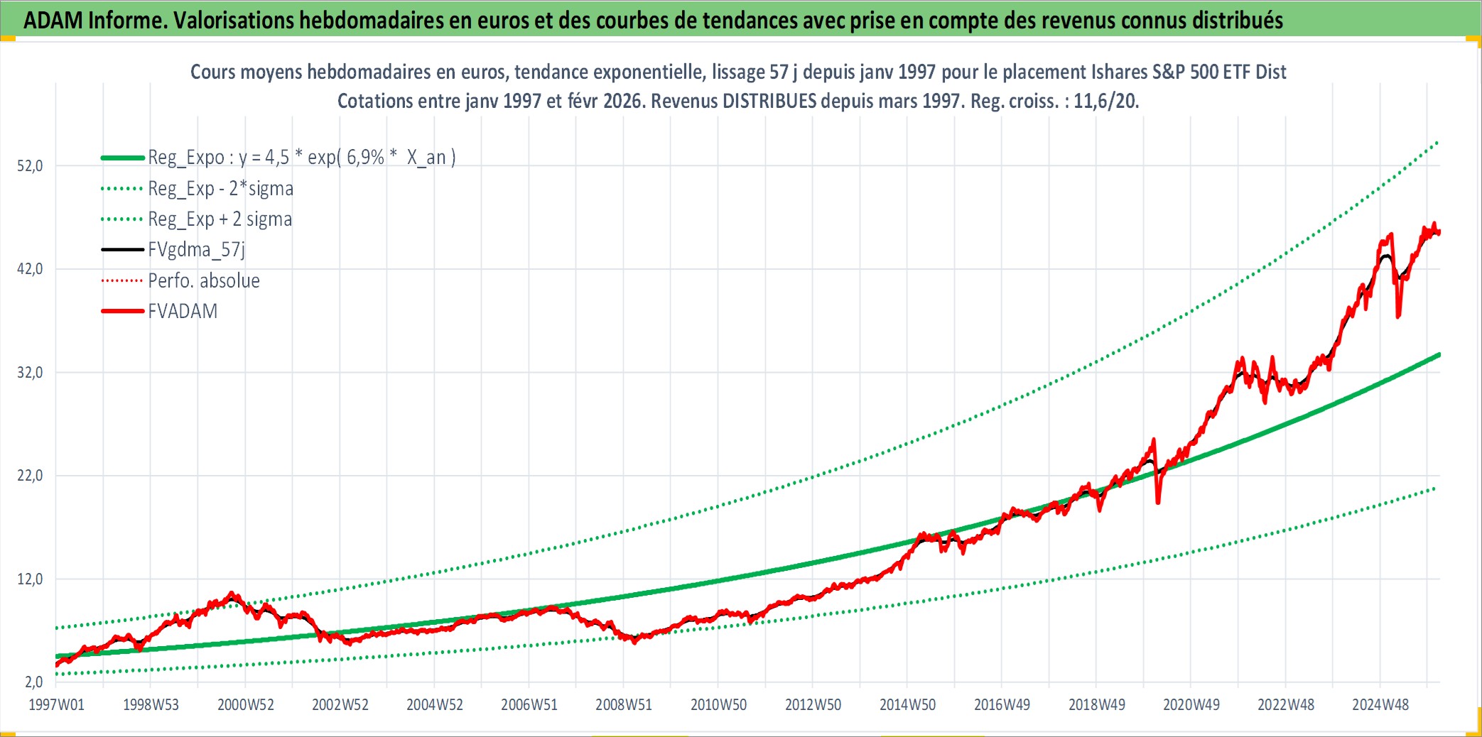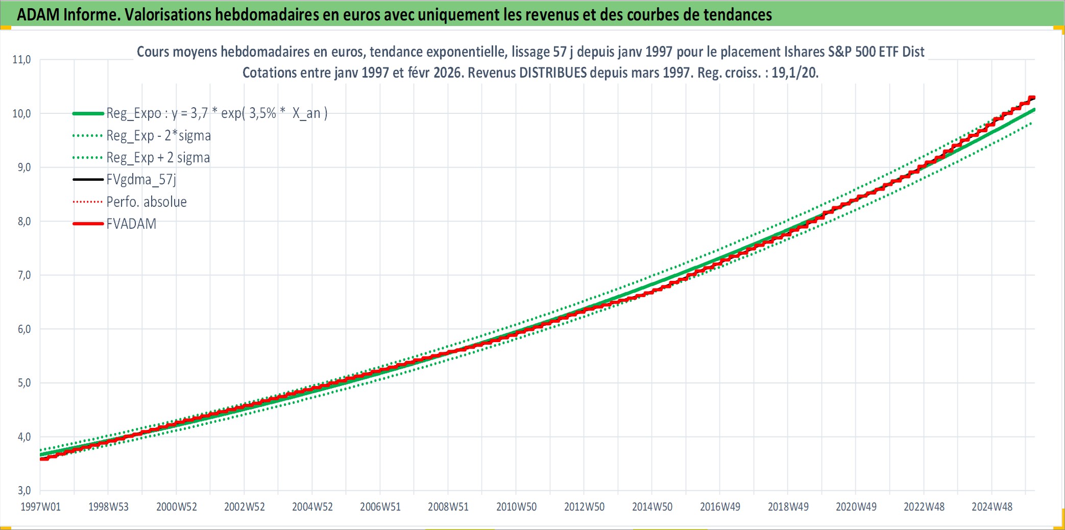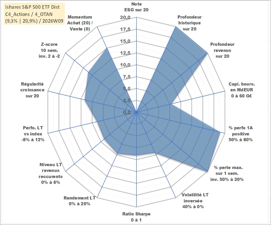 Site dédié aux investisseursPage dédiée sur site financeAnalyse des valorisations hebdomadaires du fonds Ishares S&P 500 ETF Dist. Cet actif est cote en AUD. Les valorisations sont en contrevaleur EURO et couvrent les semaines 1997W01 a 2026W09. Les revenus de cet actif financier sont pris en compte depuis la semaine 1997W13. La note ESG de cet actif n'est pas connue.