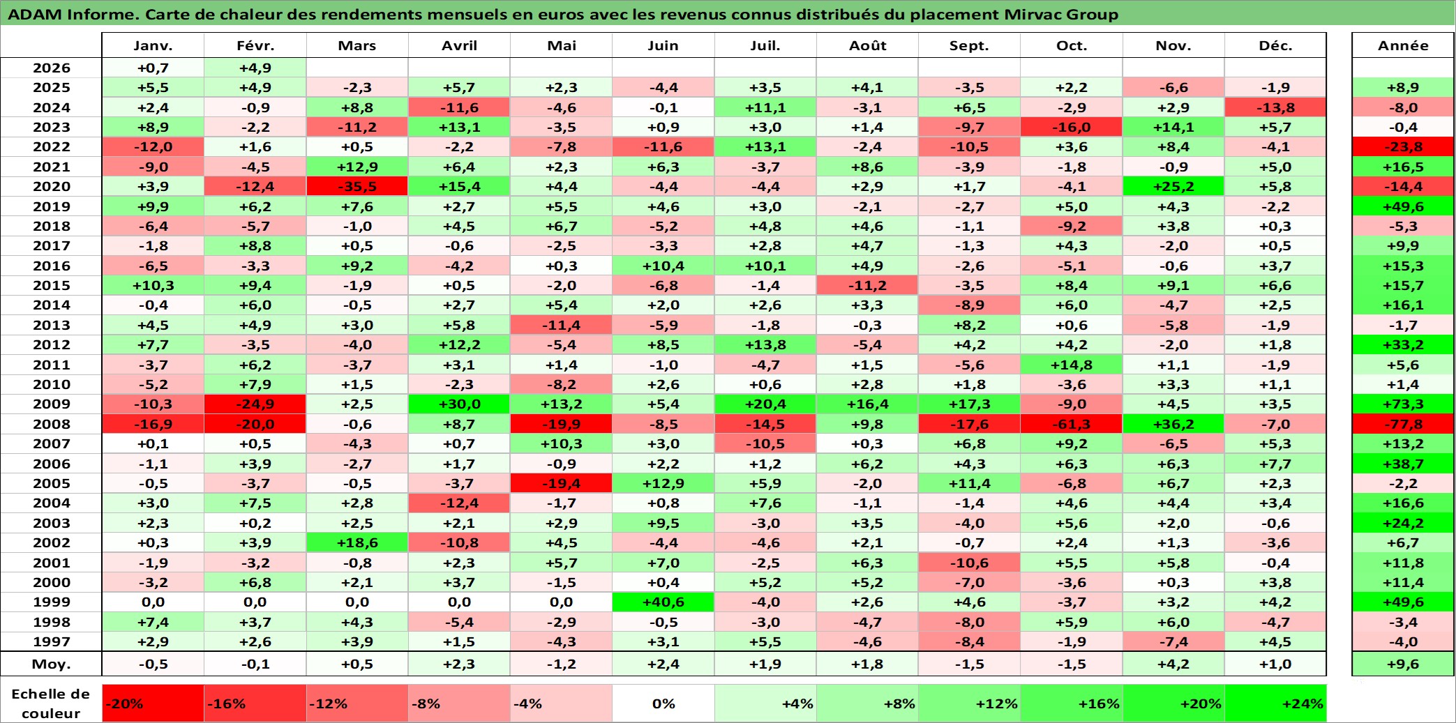 Dernière perfo 1 an en %