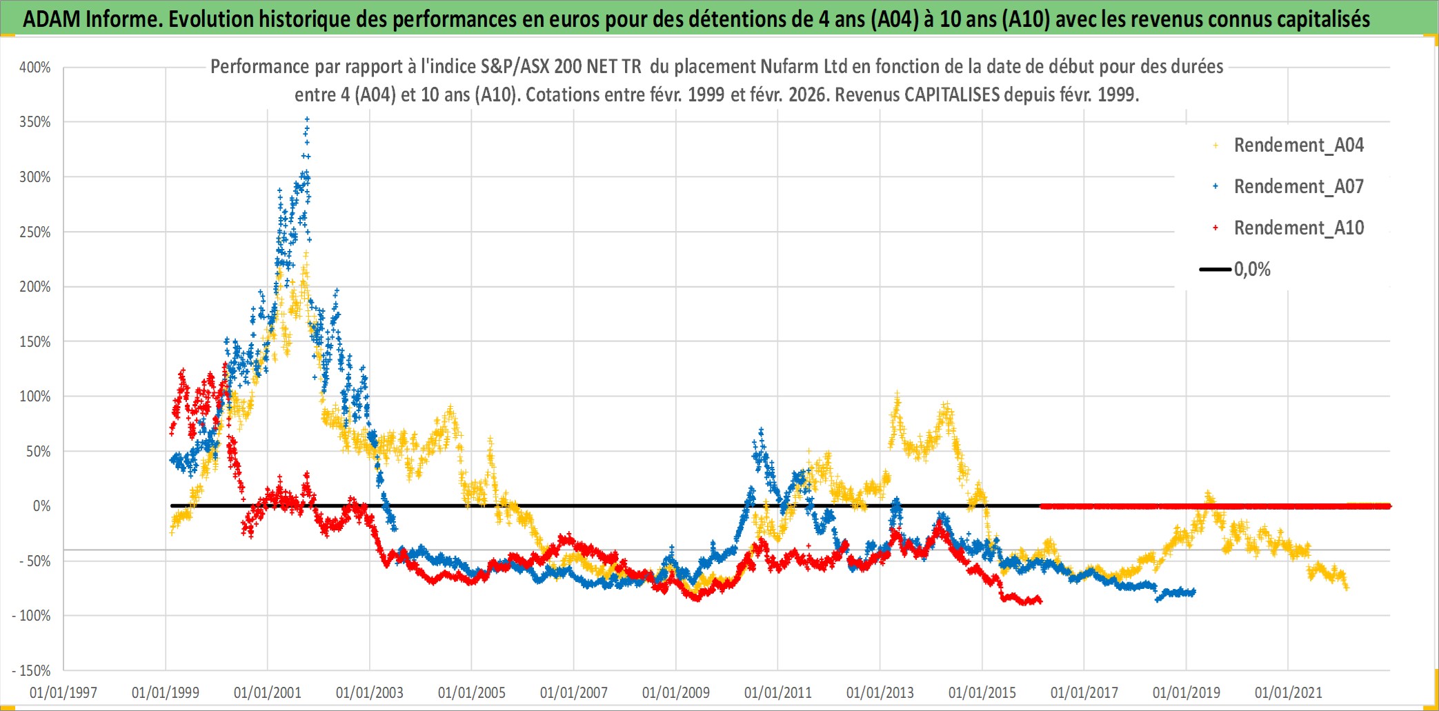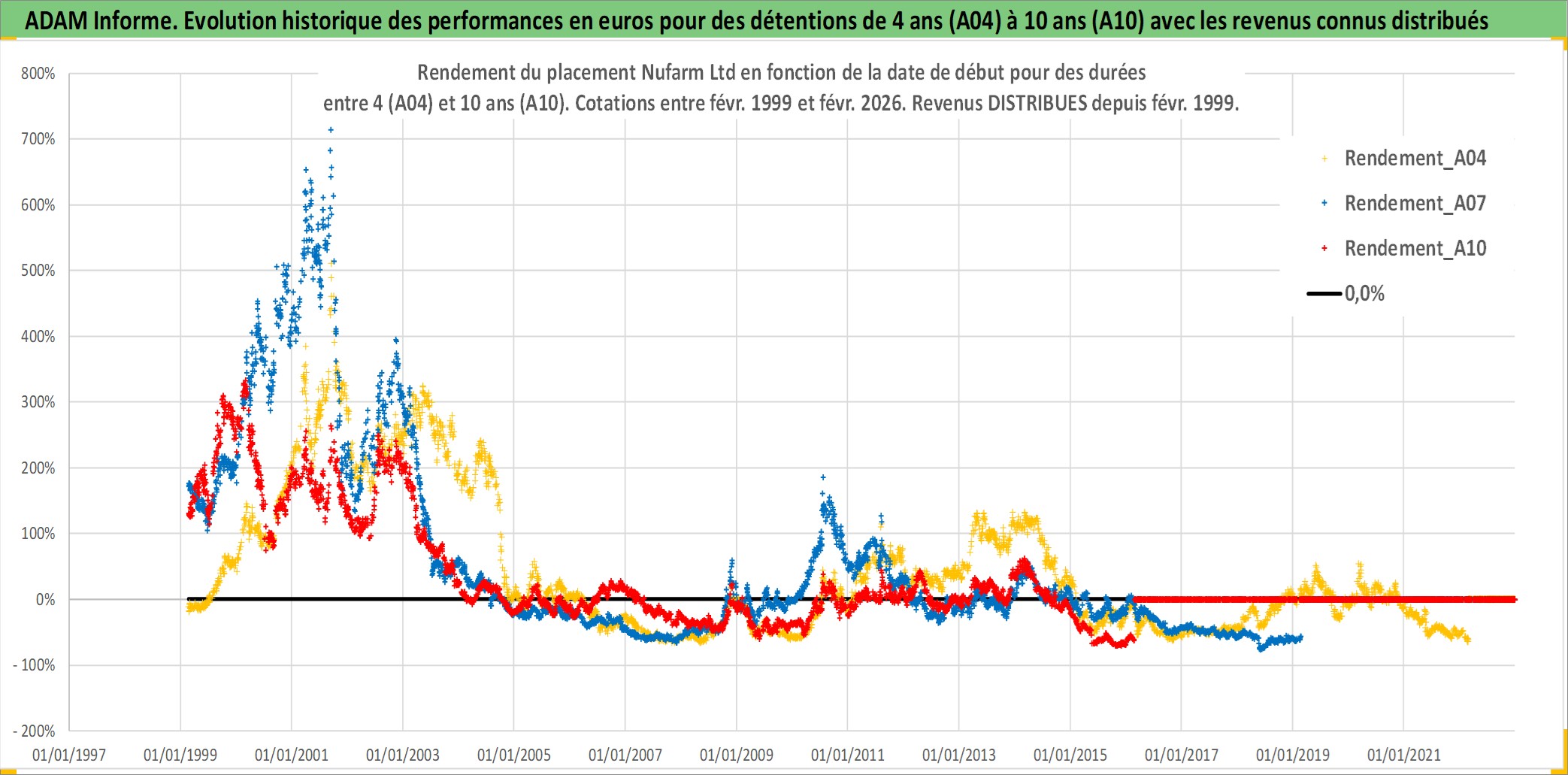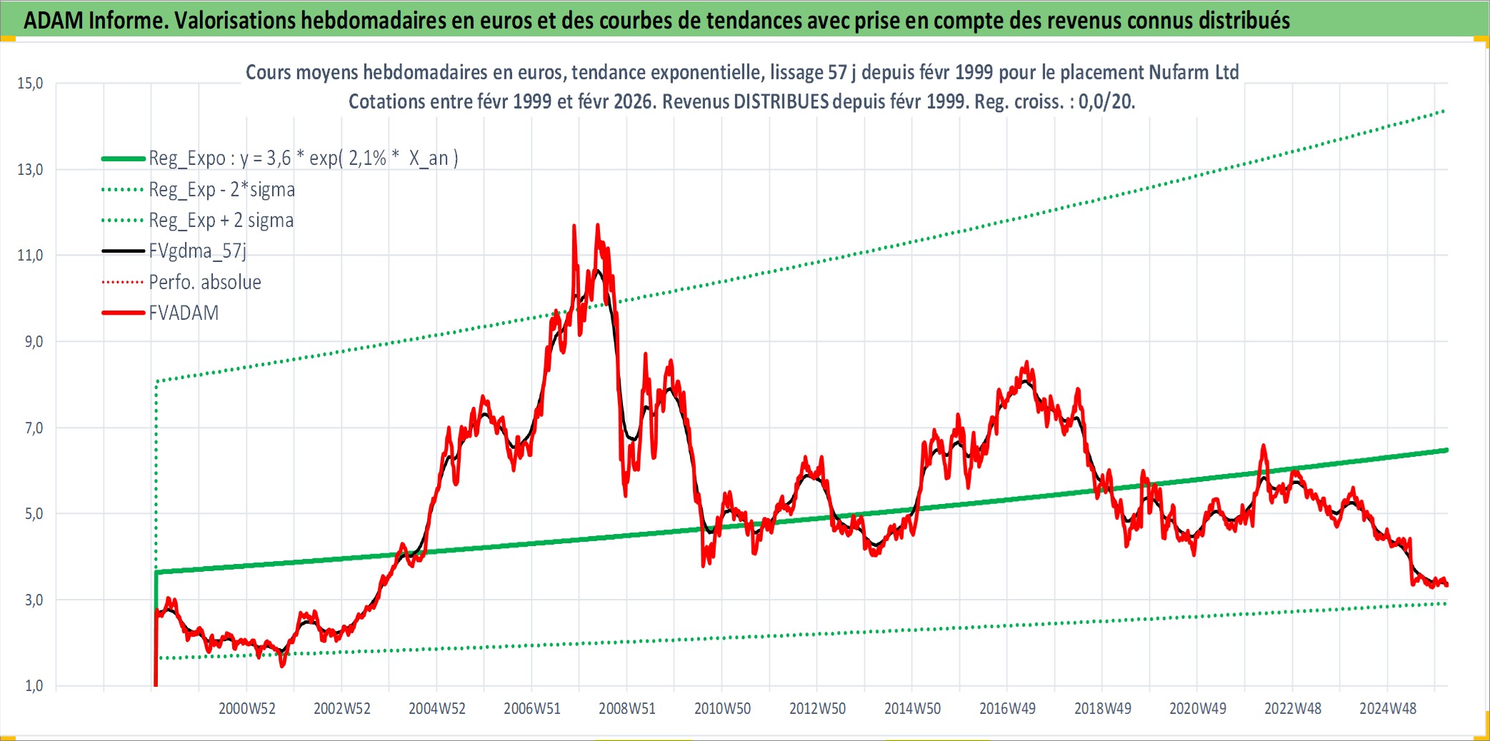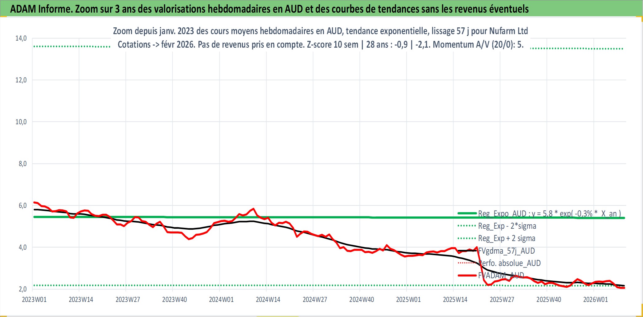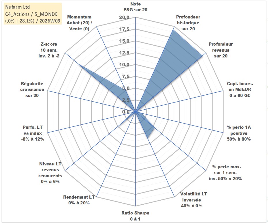 Site dédié aux investisseursPage dédiée sur site financeAnalyse des valorisations hebdomadaires de l'action Nufarm Ltd. Cet actif est cote en AUD. Les valorisations sont en contrevaleur EURO et couvrent les semaines 1999W05 a 2026W09. Les revenus de cet actif financier sont pris en compte depuis la semaine 1999W06. La note ESG de cet actif n'est pas connue.