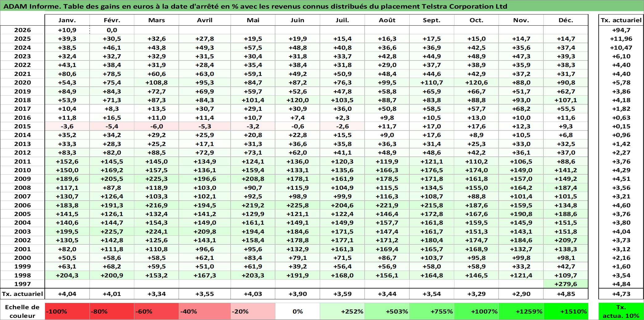 Dernière perfo 10 ans en %