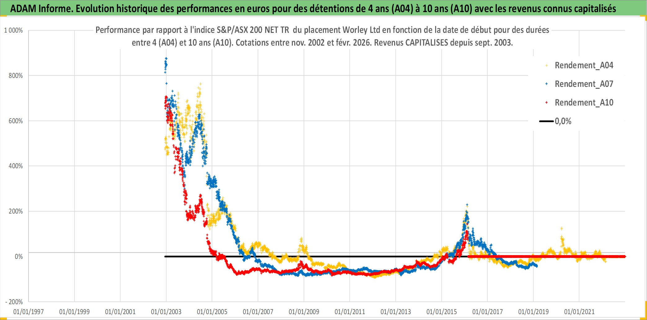 Site dédié aux investisseursPage dédiée sur site financeAnalyse des valorisations hebdomadaires de l'action Worley Ltd. Cet actif est cote en AUD. Les valorisations sont en contrevaleur EURO et couvrent les semaines 2002W48 a 2026W09. Les revenus de cet actif financier sont pris en compte depuis la semaine 2003W40. La note ESG de cet actif n'est pas connue.