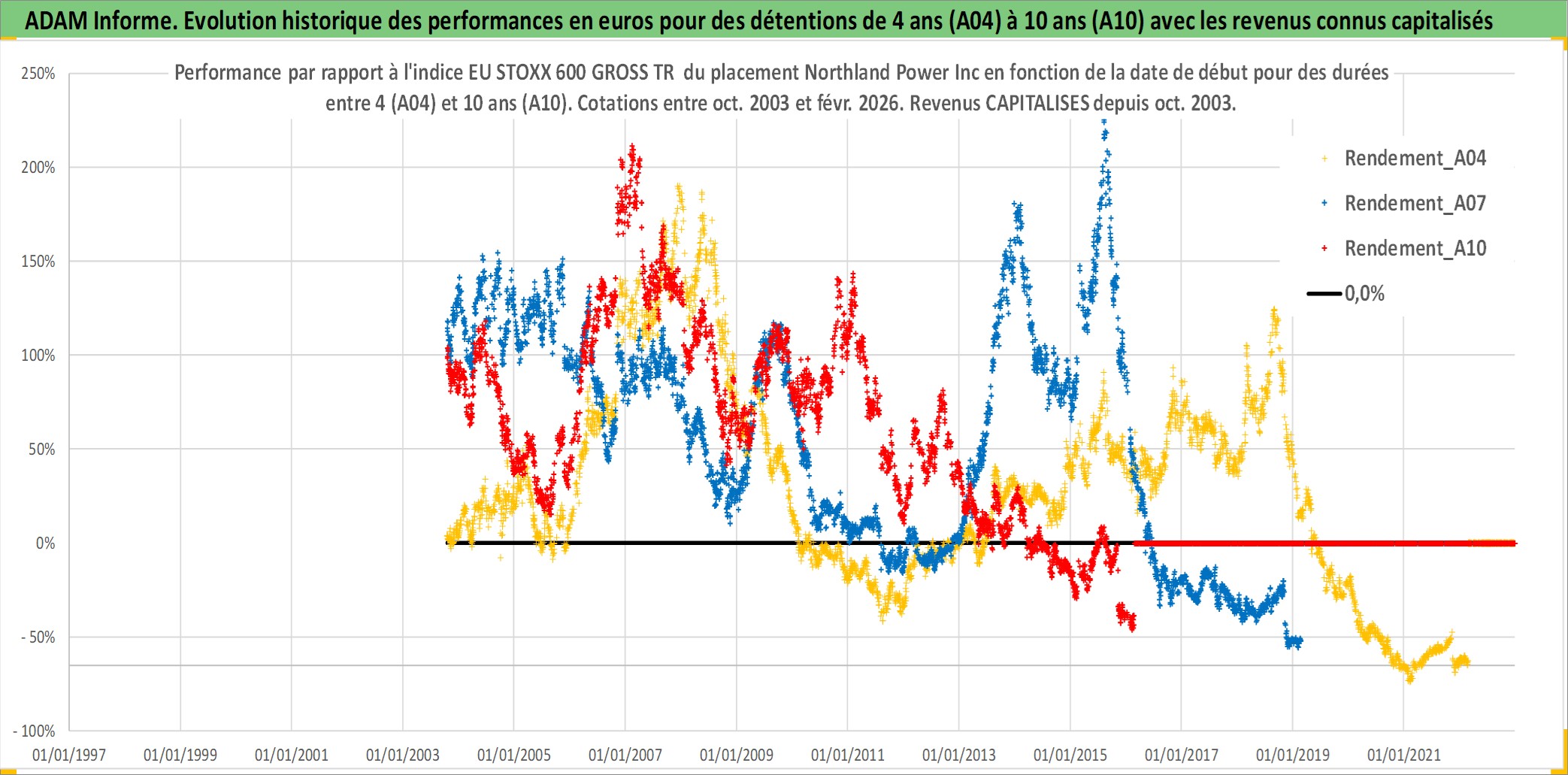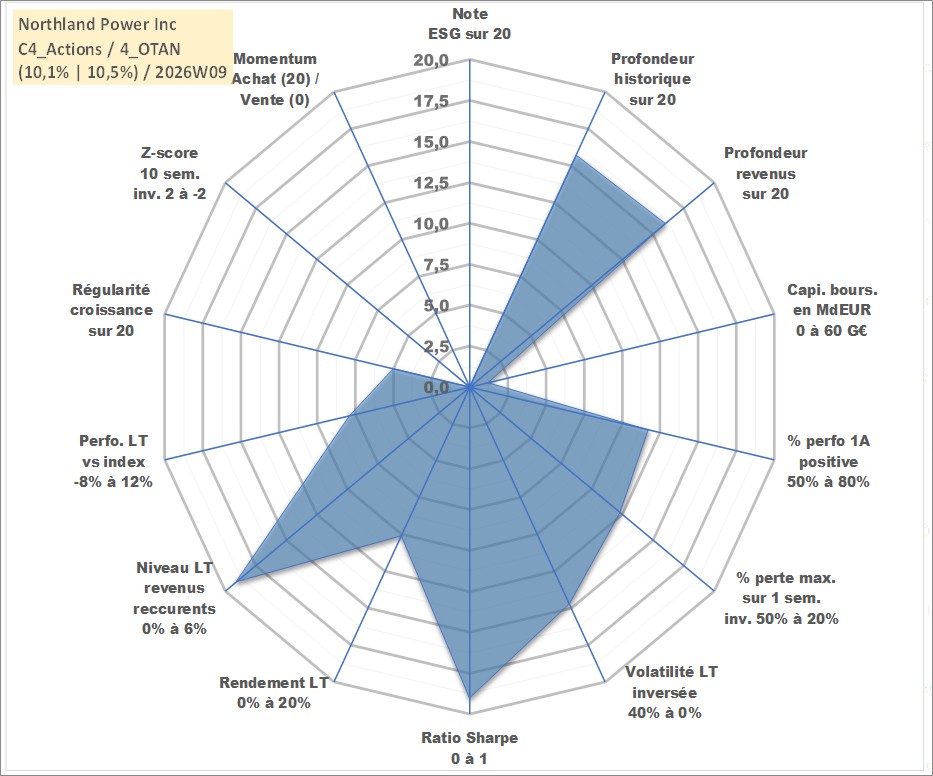 Site dédié aux investisseursPage dédiée sur site financeAnalyse des valorisations hebdomadaires de l'action Northland Power Inc. Cet actif est cote en CAD. Les valorisations sont en contrevaleur EURO et couvrent les semaines 2003W41 a 2026W09. Les revenus de cet actif financier sont pris en compte depuis la semaine 2003W44. La note ESG de cet actif n'est pas connue.