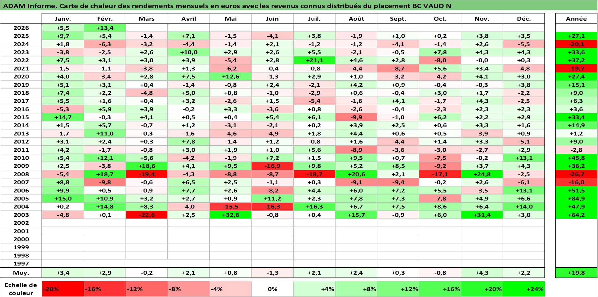 Site dédié aux investisseursPage dédiée sur site financeAnalyse des valorisations hebdomadaires de l'action BC VAUD N. Cet actif est cote en CHF. Les valorisations sont en contrevaleur EURO et couvrent les semaines 2002W49 a 2026W09. Les revenus de cet actif financier sont pris en compte depuis la semaine 2004W19. La note ESG de cet actif n'est pas connue.